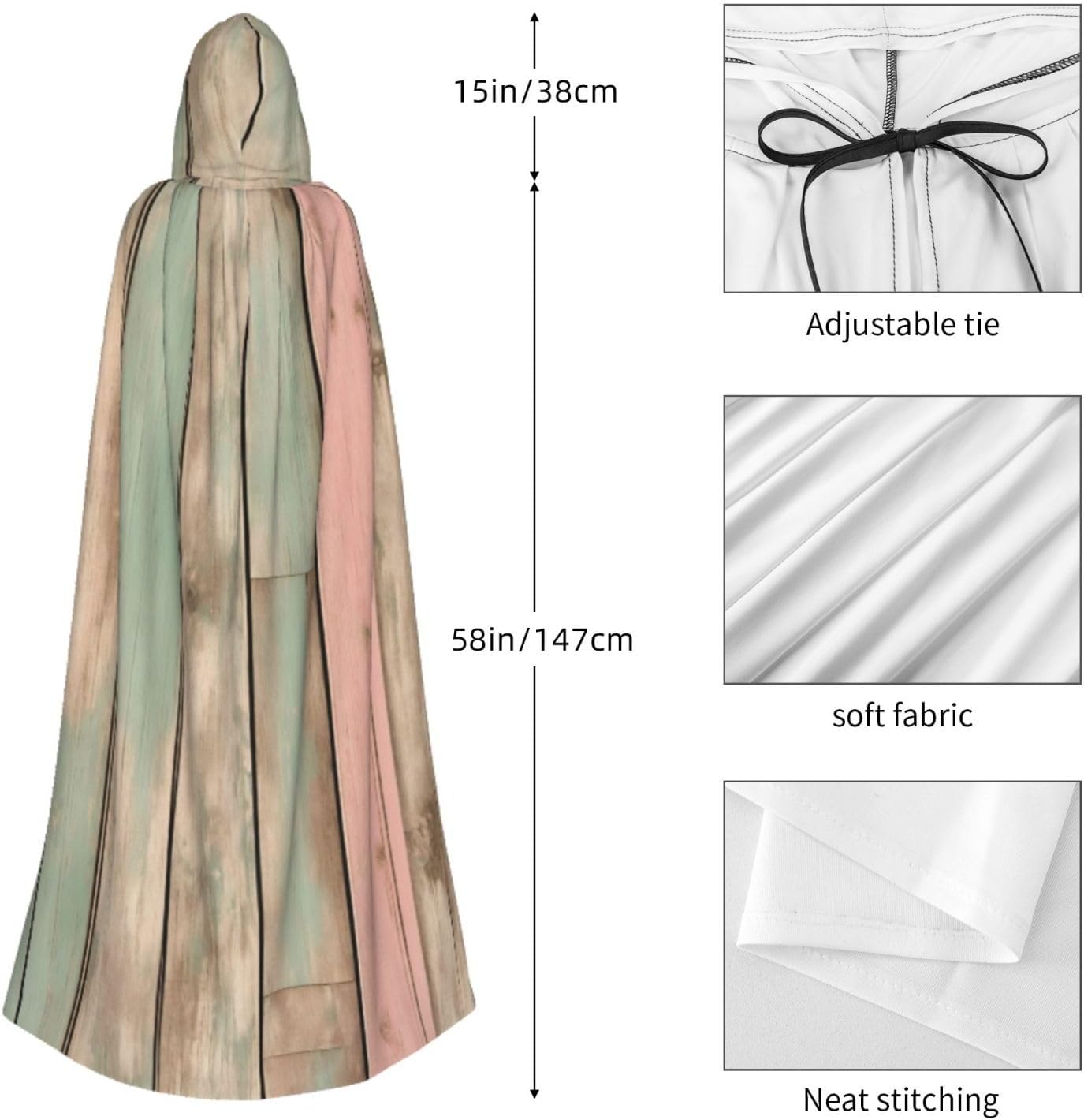 Il design senza cerniera, abbinato a un grande mantello con cappuccio e cravatta al collo, migliora il tuo mistero mantenendoti comodo con il suo tessuto non prurito. Con una lunghezza di 147 cm, larghezza di 154 cm e un'altezza del cappuccio di 38 cm, il nostro mantello con cappuccio a righe con stampa a quadri offre una copertura completa, assicurandoti di distinguerti in ogni occasione. Vari eventi come Halloween, cosplay, costumi da palcoscenico, feste a tema, balli, convegni di fumetti e molto altro ancora, il nostro mantello è versatile e conveniente. Facile da mantenere e di lunga durata, il nostro mantello con cappuccio con stampa a quadri a righe è lavabile in lavatrice e lavabile a mano. Con un design neutro, il nostro mantello è perfetto per uomini e donne.