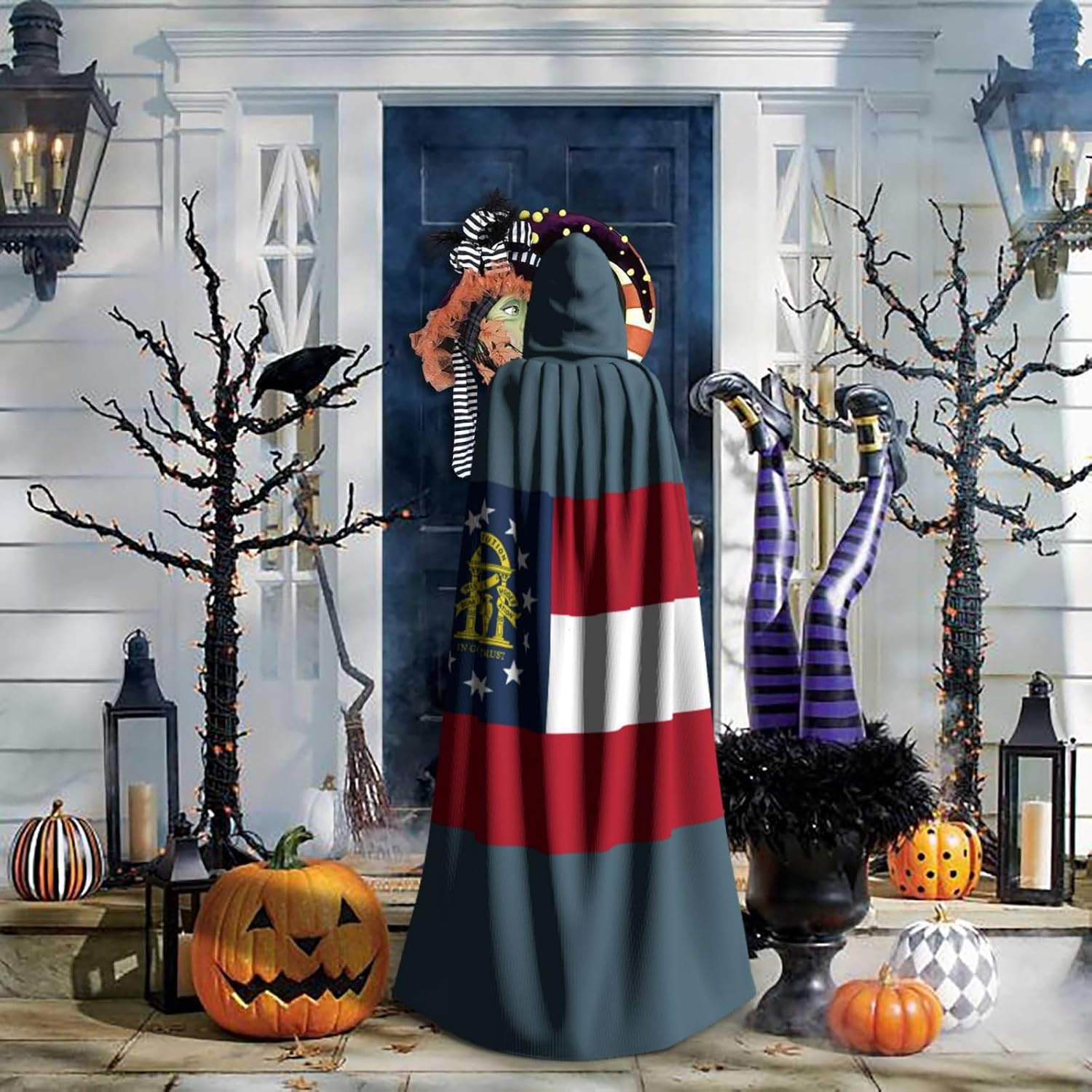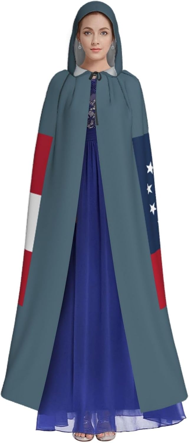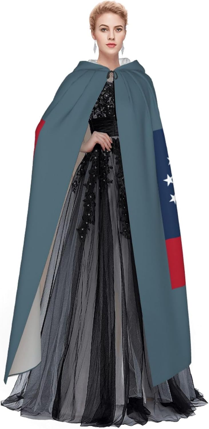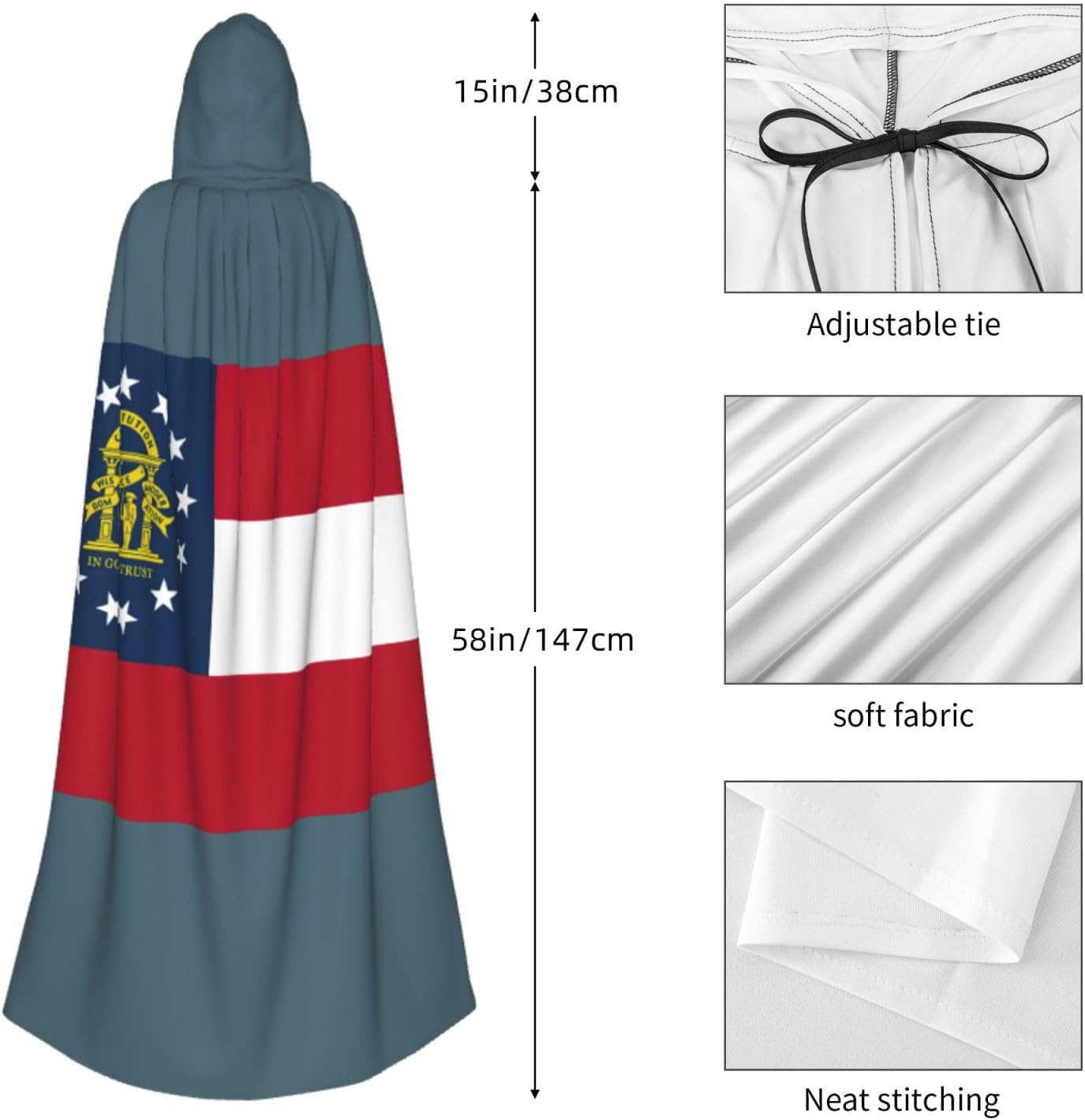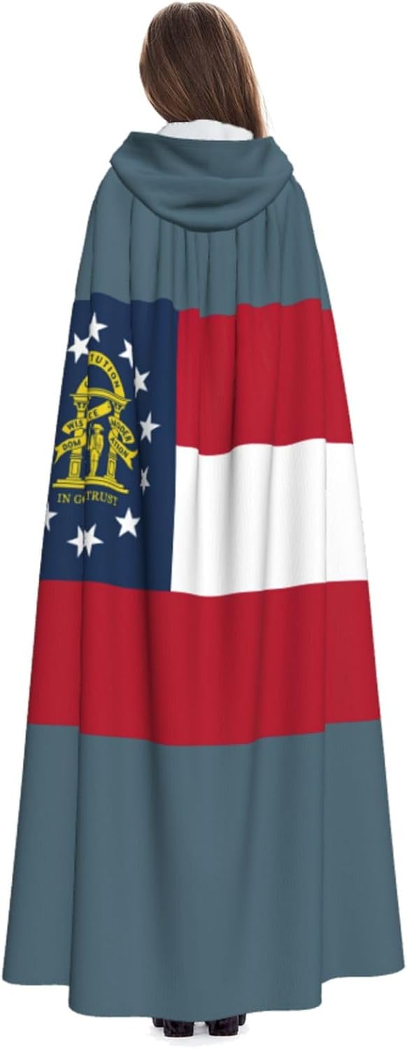 Il design senza cerniera, abbinato a un grande mantello con cappuccio e cravatta al collo, migliora il tuo mistero mantenendoti comodo con il suo tessuto non prurito. Con una lunghezza di 147 cm, larghezza di 154 cm e un'altezza del cappuccio di 38 cm, il nostro mantello con cappuccio con stampa bandiera della Georgia offre una copertura completa, assicurandoti di distinguerti in ogni occasione. Vari eventi come Halloween, cosplay, costumi da palcoscenico, feste a tema, balli, convegni di fumetti e molto altro ancora, il nostro mantello è versatile e conveniente. Facile da mantenere e di lunga durata, il nostro mantello con cappuccio con stampa bandiera della Georgia è lavabile in lavatrice e lavabile a mano. Con un design neutro, il nostro mantello è perfetto per uomini e donne.