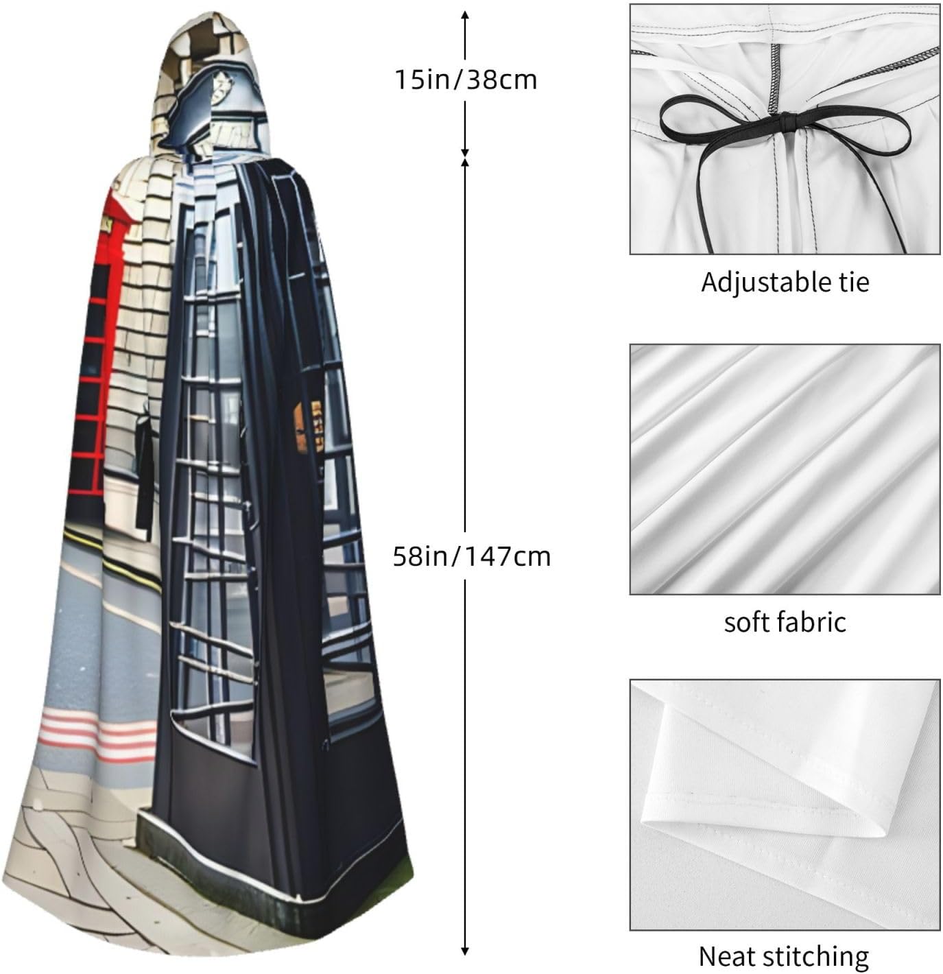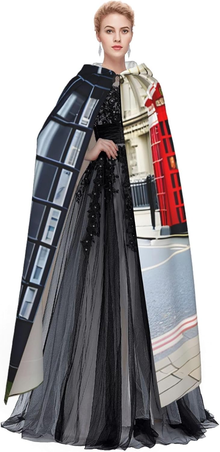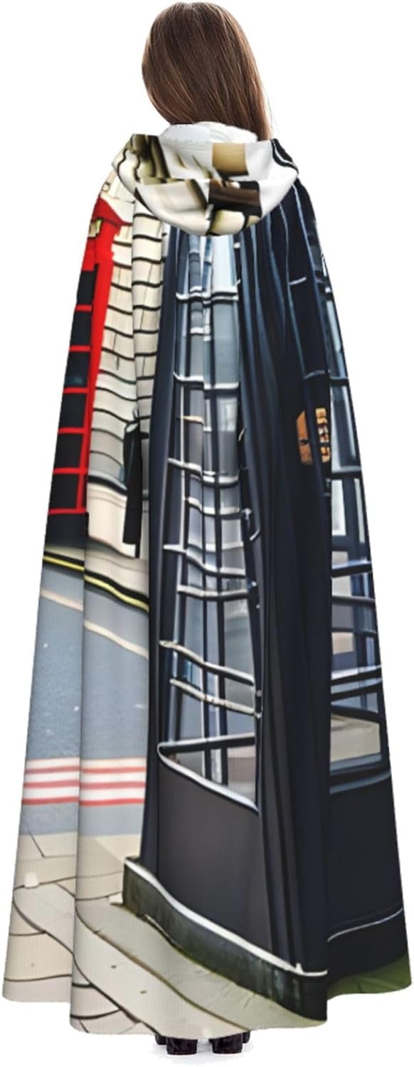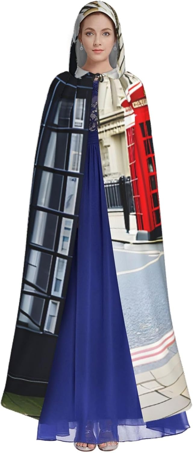 Il design senza cerniera, abbinato a un grande mantello con cappuccio e cravatta al collo, migliora il tuo mistero mantenendoti comodo con il suo tessuto non prurito. Con una lunghezza di 147 cm, larghezza di 154 cm e un'altezza del cappuccio di 38 cm, il nostro mantello con cappuccio con stampa cabina telefonica offre una copertura completa, assicurandoti di distinguerti in ogni occasione. Vari eventi come Halloween, cosplay, costumi da palcoscenico, feste a tema, balli, convegni di fumetti e molto altro ancora, il nostro mantello è versatile e conveniente. Facile da mantenere e di lunga durata, il nostro mantello con cappuccio con stampa cabina telefonica è lavabile in lavatrice e lavabile a mano. Con un design neutro, il nostro mantello è perfetto per uomini e donne.