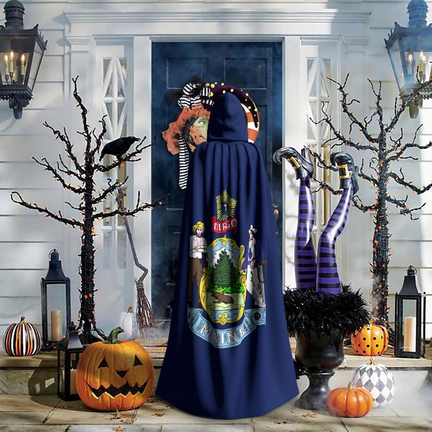 Il design senza cerniera, abbinato a un grande mantello con cappuccio e cravatta al collo, migliora il tuo mistero mantenendoti comodo con il suo tessuto non prurito. Con una lunghezza di 147 cm, larghezza di 154 cm e un'altezza del cappuccio di 38 cm, il nostro mantello con cappuccio con stampa della bandiera del Maine offre una copertura completa, assicurandoti di distinguerti in ogni occasione. Vari eventi come Halloween, cosplay, costumi da palcoscenico, feste a tema, balli, convegni di fumetti e molto altro ancora, il nostro mantello è versatile e conveniente. Facile da mantenere e di lunga durata, il nostro mantello con cappuccio con stampa bandiera del Maine è lavabile in lavatrice e lavabile a mano. Con un design neutro, il nostro mantello è perfetto per uomini e donne.