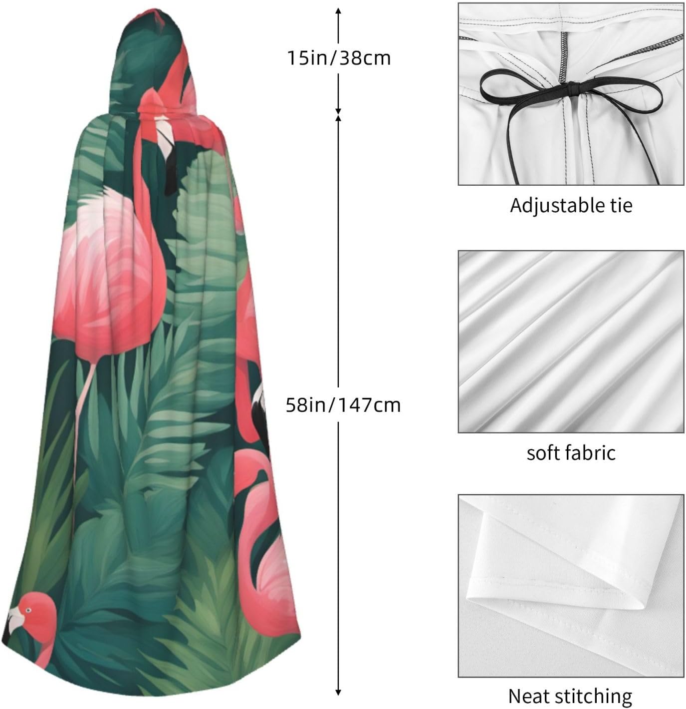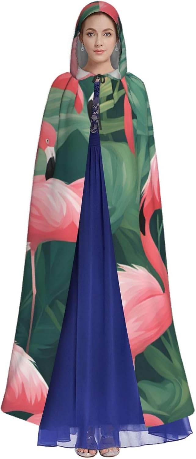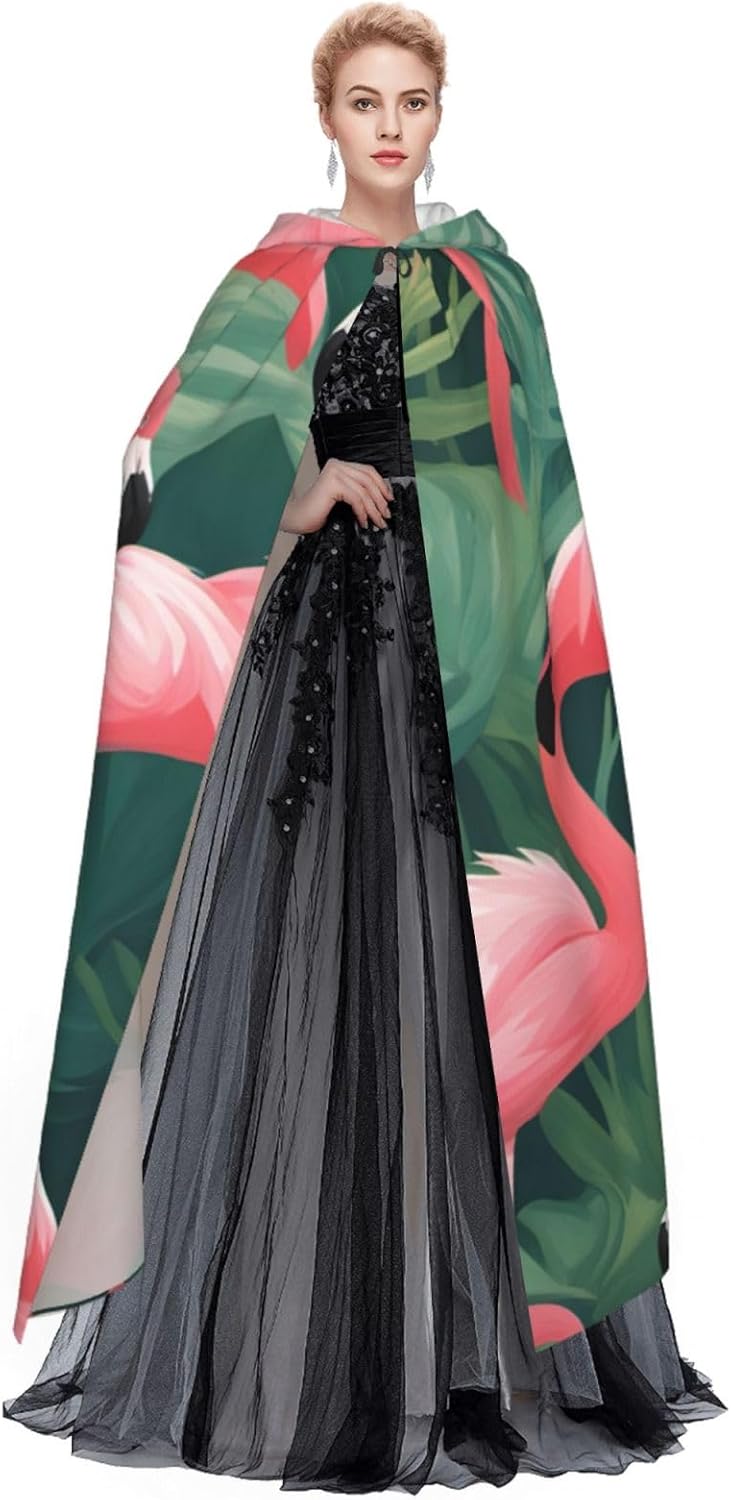 Il design senza cerniera, abbinato a un grande mantello con cappuccio e cravatta al collo, migliora il tuo mistero mantenendoti comodo con il suo tessuto non prurito. Con una lunghezza di 147 cm, una larghezza di 154 cm e un'altezza del cappuccio di 38 cm, il nostro mantello con cappuccio con stampa di fenicotteri rossi offre una copertura completa, assicurandoti di distinguerti in ogni occasione. Vari eventi come Halloween, cosplay, costumi da palcoscenico, feste a tema, balli, convegni di fumetti e molto altro ancora, il nostro mantello è versatile e conveniente. Facile da mantenere e di lunga durata, il nostro mantello con cappuccio con stampa di fenicotteri rossi con piante grasse è lavabile in lavatrice e lavabile a mano. Con un design neutro, il nostro mantello è perfetto per uomini e donne.