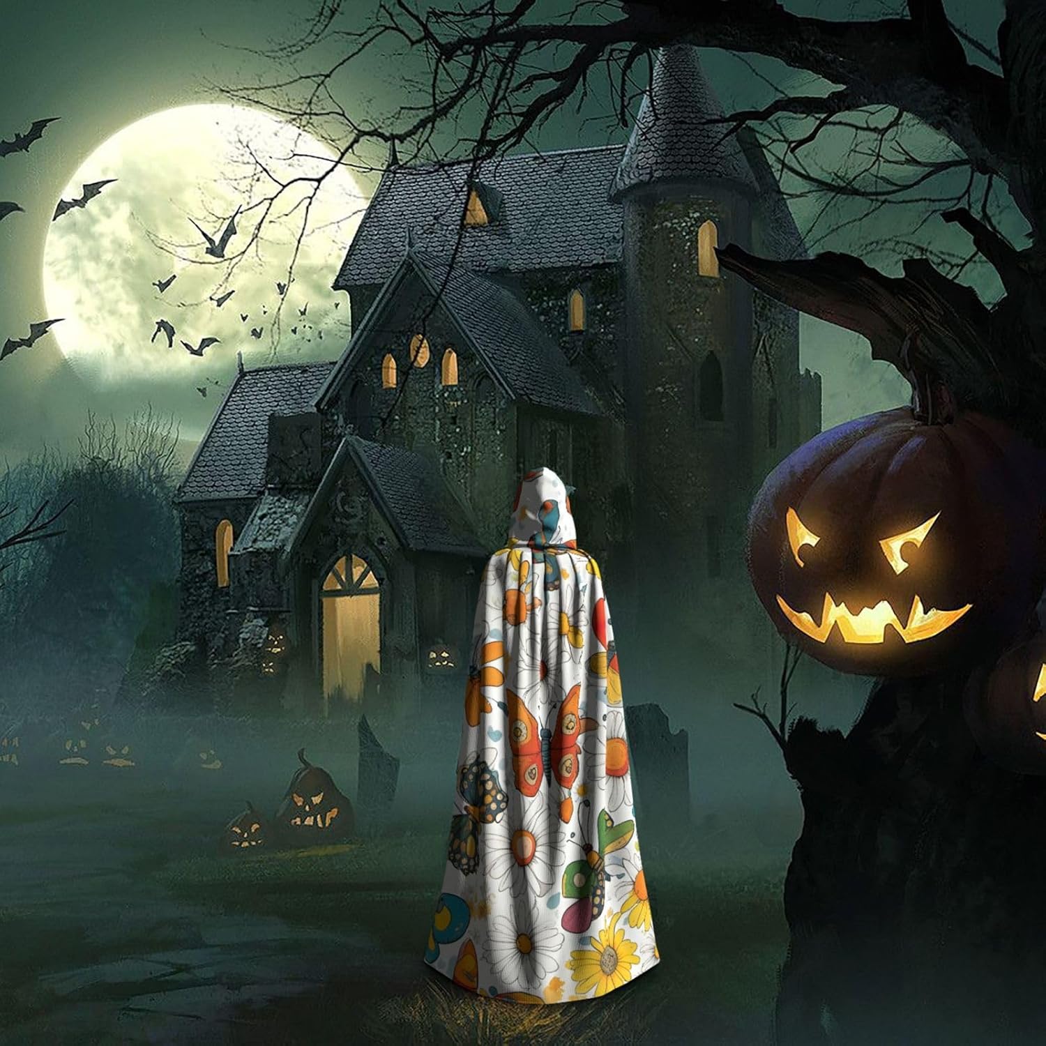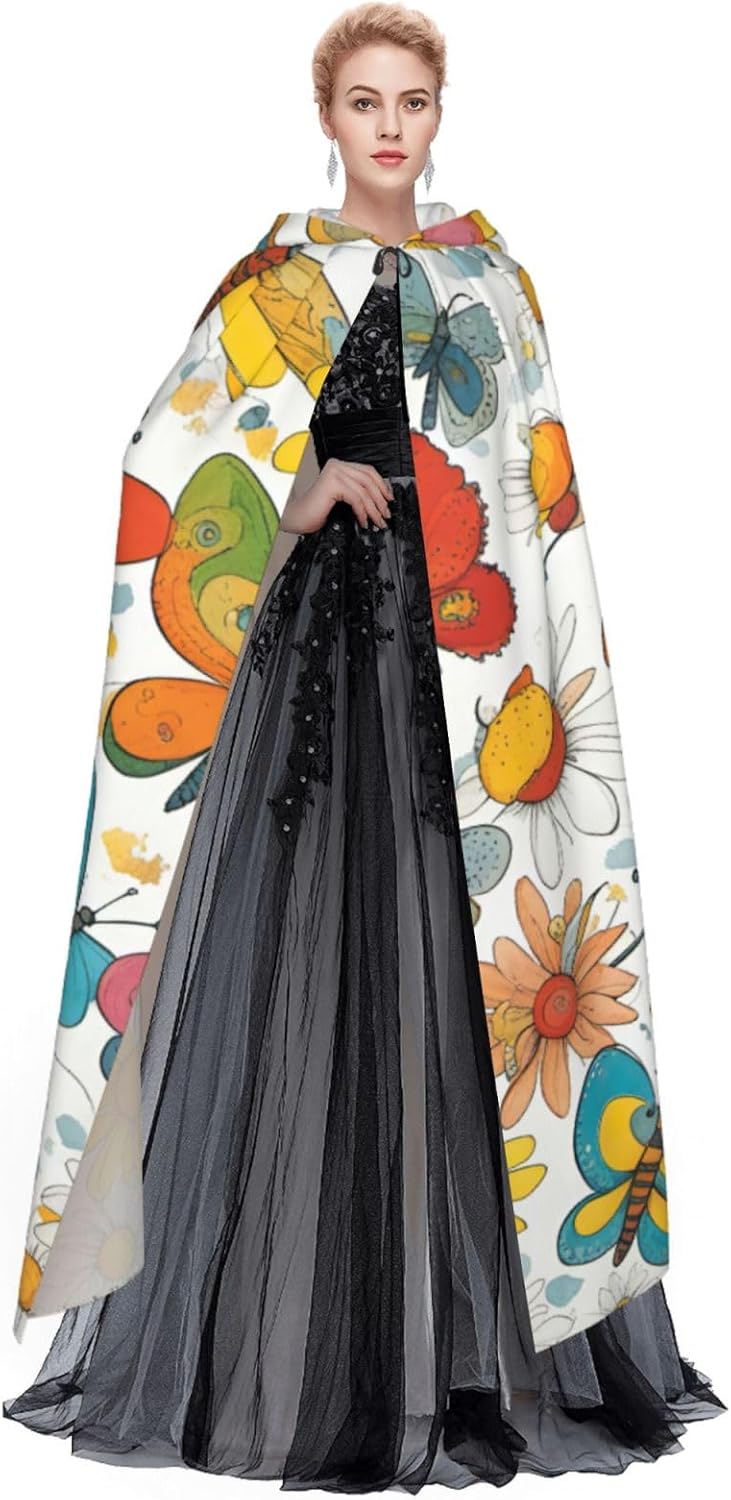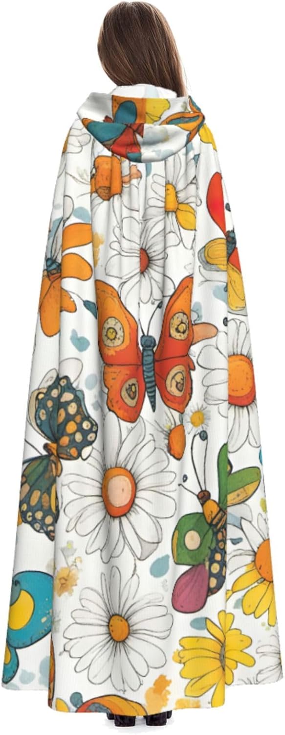 Il design senza cerniera, abbinato a un grande mantello con cappuccio e cravatta al collo, migliora il tuo mistero mantenendoti comodo con il suo tessuto non prurito. Con una lunghezza di 147 cm, una larghezza di 154 cm e un'altezza del cappuccio di 38 cm, il nostro mantello con cappuccio con stampa a farfalla e margherite offre una copertura completa, assicurandoti di distinguerti in ogni occasione. Vari eventi come Halloween, cosplay, costumi da palcoscenico, feste a tema, balli, convegni di fumetti e molto altro ancora, il nostro mantello è versatile e conveniente. Facile da mantenere e di lunga durata, il nostro mantello con cappuccio con stampa margherita farfalla è lavabile in lavatrice e lavabile a mano. Con un design neutro, il nostro mantello è perfetto per uomini e donne.