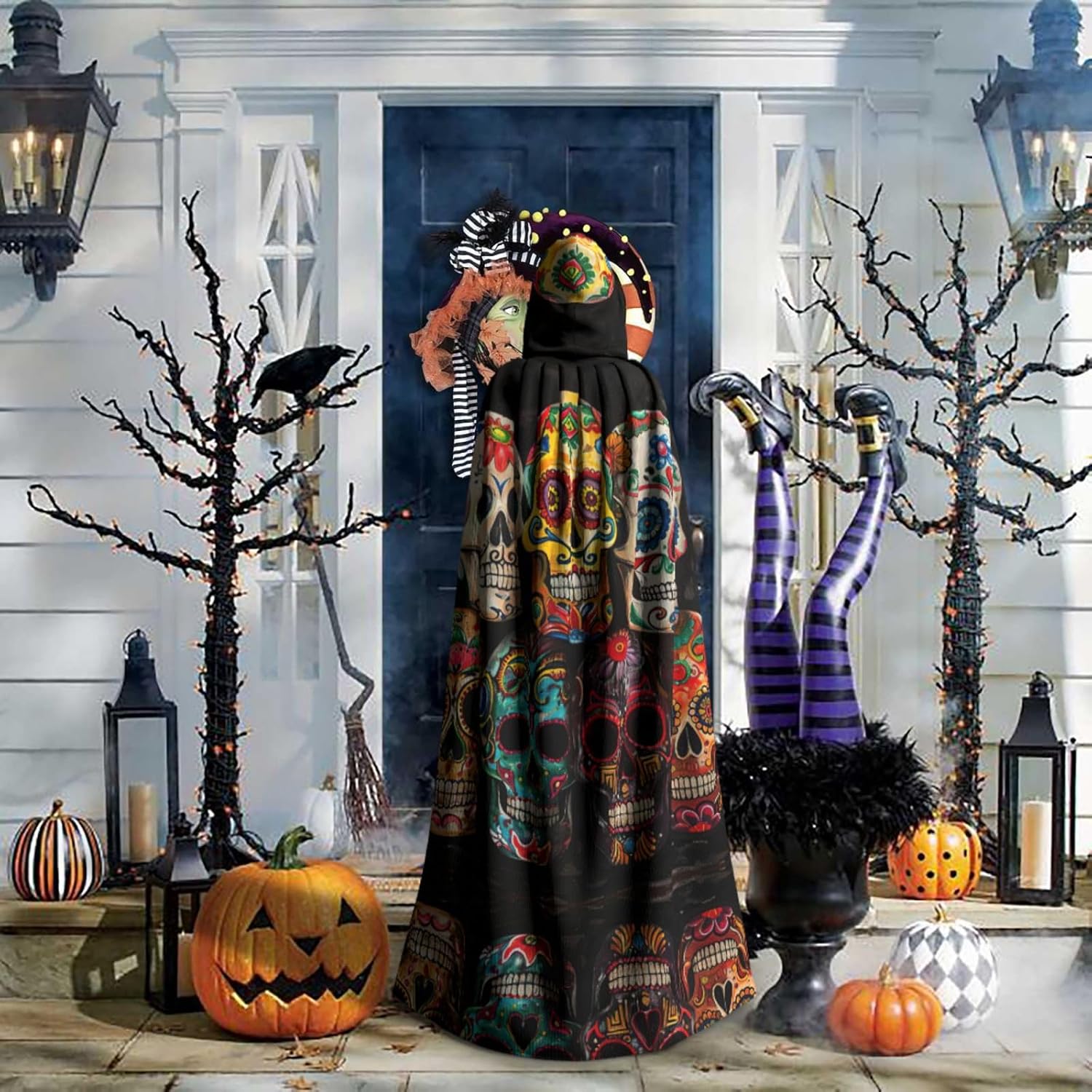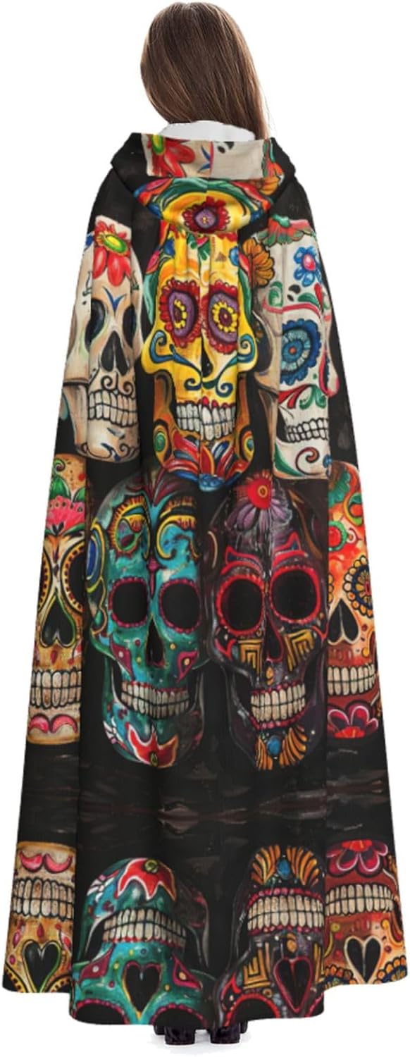 Il design senza cerniera, abbinato a un grande mantello con cappuccio e cravatta al collo, migliora il tuo mistero mantenendoti comodo con il suo tessuto non prurito. Con una lunghezza di 147 cm, larghezza di 154 cm e un'altezza del cappuccio di 38 cm, il nostro mantello con cappuccio con stampa di teschi di zucchero offre una copertura completa, assicurandoti di distinguerti in ogni occasione. Vari eventi come Halloween, cosplay, costumi da palcoscenico, feste a tema, balli, convegni di fumetti e molto altro ancora, il nostro mantello è versatile e conveniente. Facile da mantenere e di lunga durata, il nostro mantello con cappuccio con stampa di teschi di zucchero è lavabile in lavatrice e lavabile a mano. Con un design neutro, il nostro mantello è perfetto per uomini e donne.