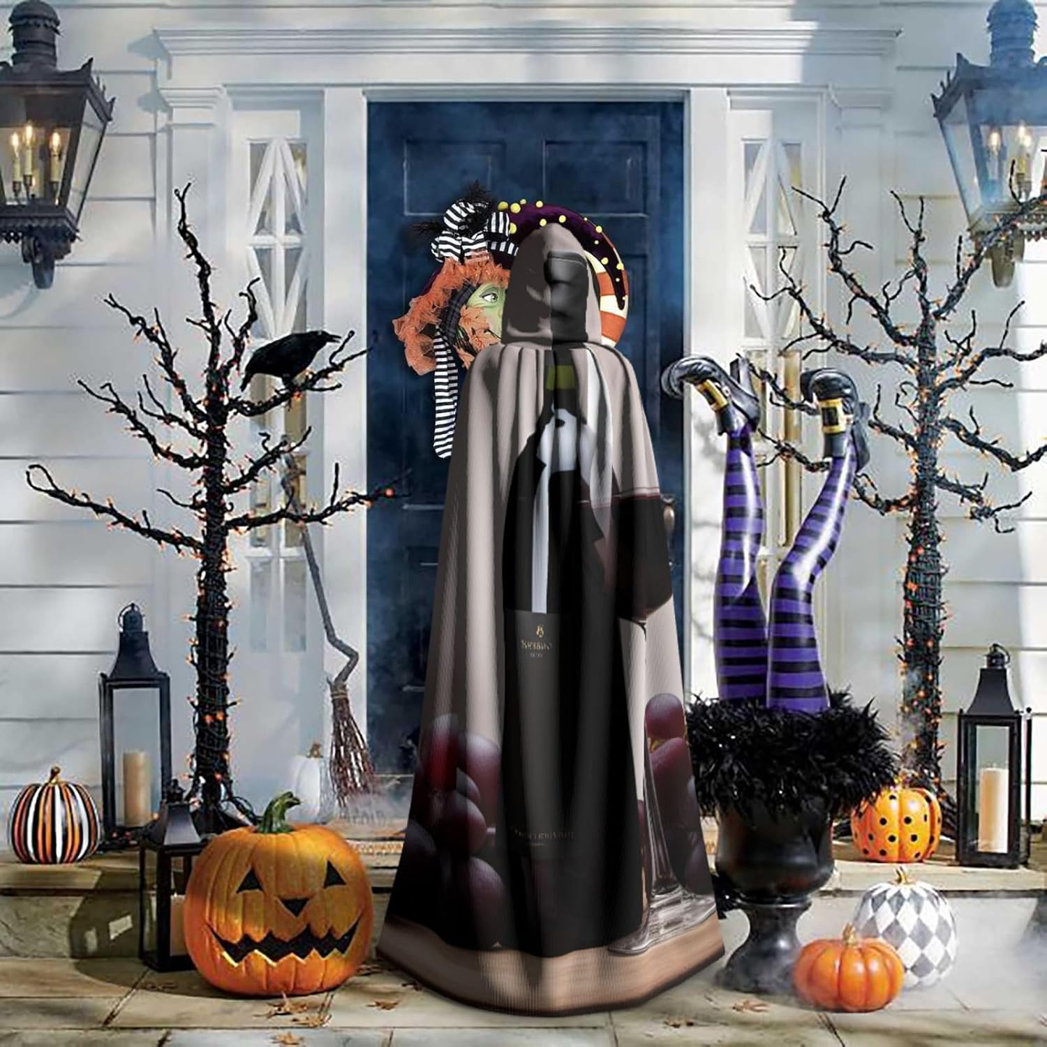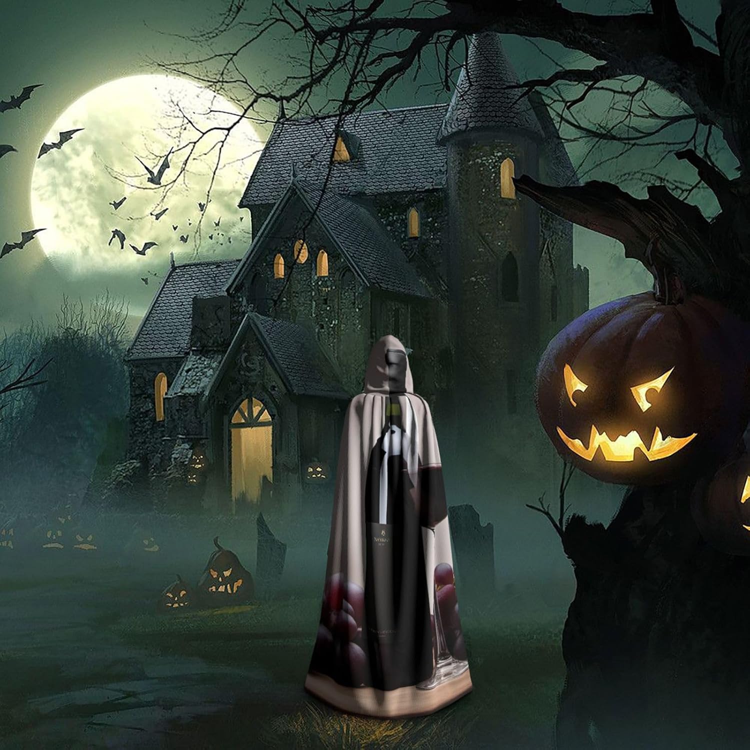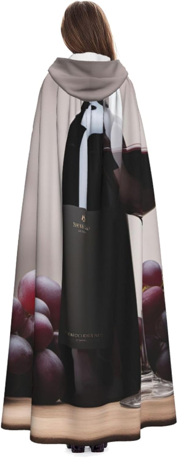 Mantello con cappuccio per Halloween e cosplay, con stampa di vino rosso, per Halloween, comodo mantello con cappuccio per adulti