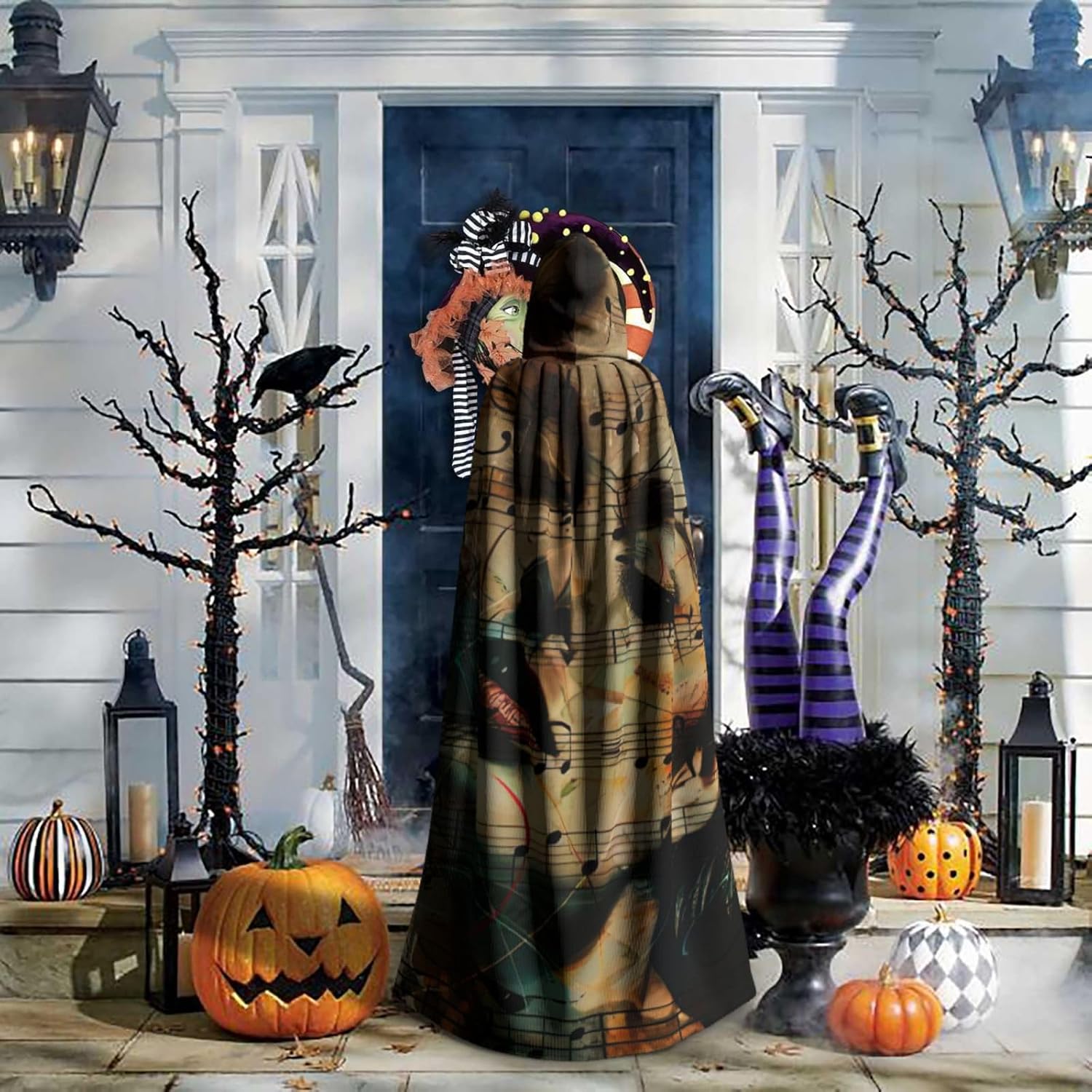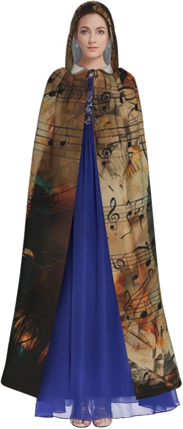 Mantello con cappuccio per Halloween e cosplay, con stampa musicale, comodo mantello con cappuccio per adulti