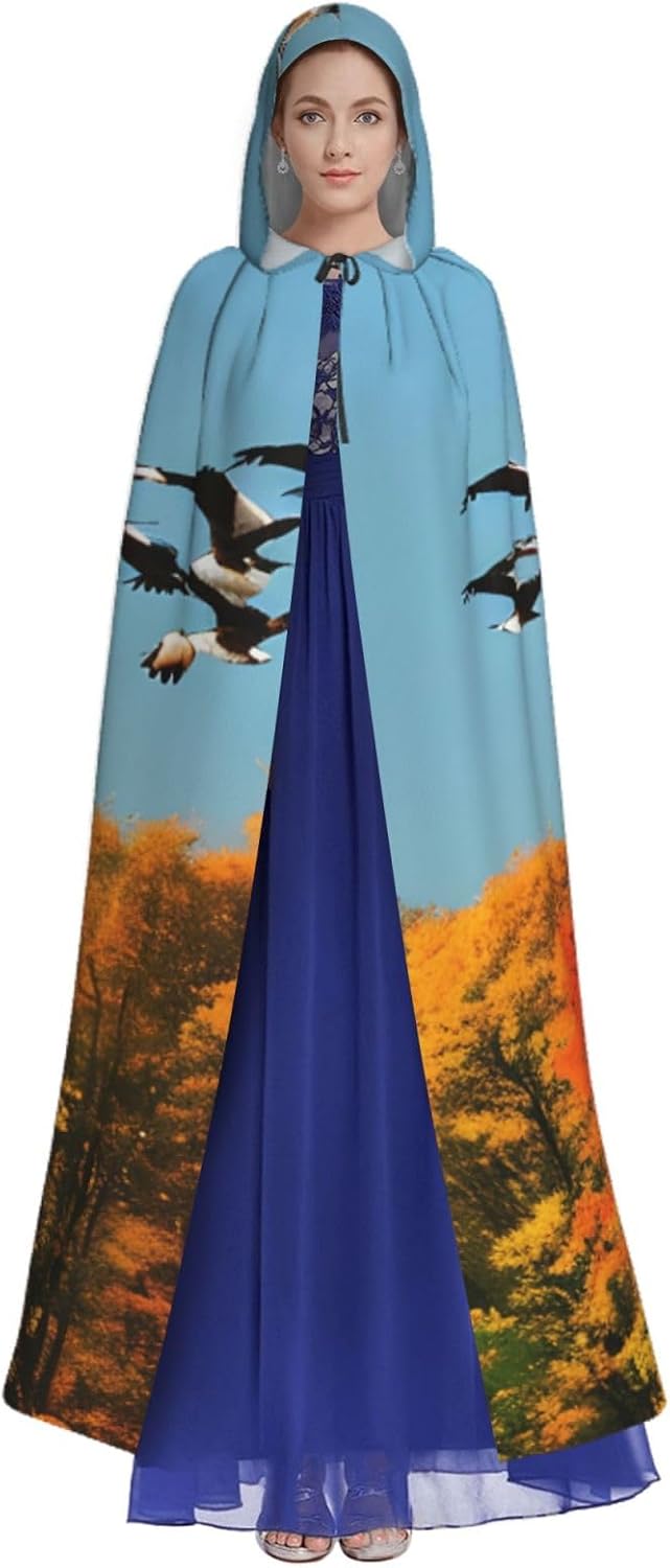 Il mantello con cappuccio per Halloween è realizzato con tessuto in poliestere morbido anche sulla pelle, prevenendo qualsiasi irritazione. Il mantello presenta un ampio cappuccio e uno stile annodato senza cerniere per un design sofisticato ed elegante. Con la sua dimensione universale, offre una copertura completa, adatta a tutti, assicurandoti di distinguerti tra la folla. Questo mantello da caccia con anatre selvatiche e alberi non è solo per Halloween; è abbastanza versatile per cosplay, spettacoli teatrali, balli in maschera, feste a tema e molto altro ancora.