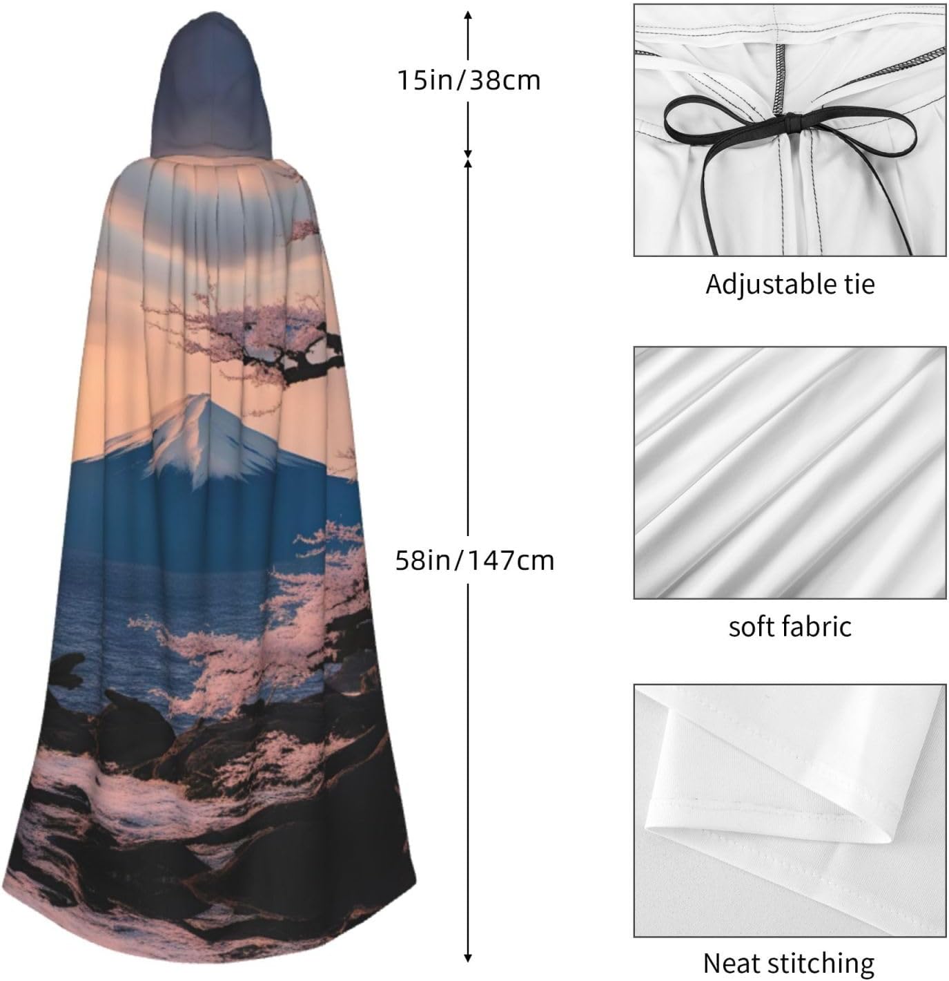 Entra nel mondo della fantasia e dell'avventura con il nostro elegante mantello da donna. Realizzato in fibra di poliestere di alta qualità, questo mantello offre una vestibilità leggera e confortevole, permettendoti di abbracciare i tuoi personaggi preferiti o personaggi per feste in costume, Halloween, fumetti e molto altro ancora. Dotato di un cappuccio oversize e una chiusura con cravatta, questo mantello non solo aggiunge un elemento di mistero, ma completa anche una vasta gamma di scelte di outfit La costruzione garantisce una lunga durata. Uso duraturo senza alcun fastidio o prurito. Che tu stia partecipando a una festa a tema, una danza o un evento cosplay, questo versatile mantello è sicuro di fare una dichiarazione. È perfetto per feste di Halloween, convegni di fumetti, spettacoli teatrali, feste in maschera e altre occasioni festive. Lascia che la tua creatività risplenda e immergiti nel mondo della fantasia. Pulire questo mantello è un gioco da ragazzi, Lavabile in lavatrice. Facile da pulire. Il suo design ti consente di godertelo per gli anni a venire, rendendolo una scelta affidabile ed elegante per tutte le tue esigenze di abbigliamento. Sperimenta l'incanto e il fascino del nostro elegante mantello da donna e diventa al centro dell'attenzione in ogni evento. Migliora il tuo gioco di costumi e crea ricordi indimenticabili con questo accessorio indispensabile. Abbraccia la tua immaginazione e intraprendi un viaggio straordinario oggi!