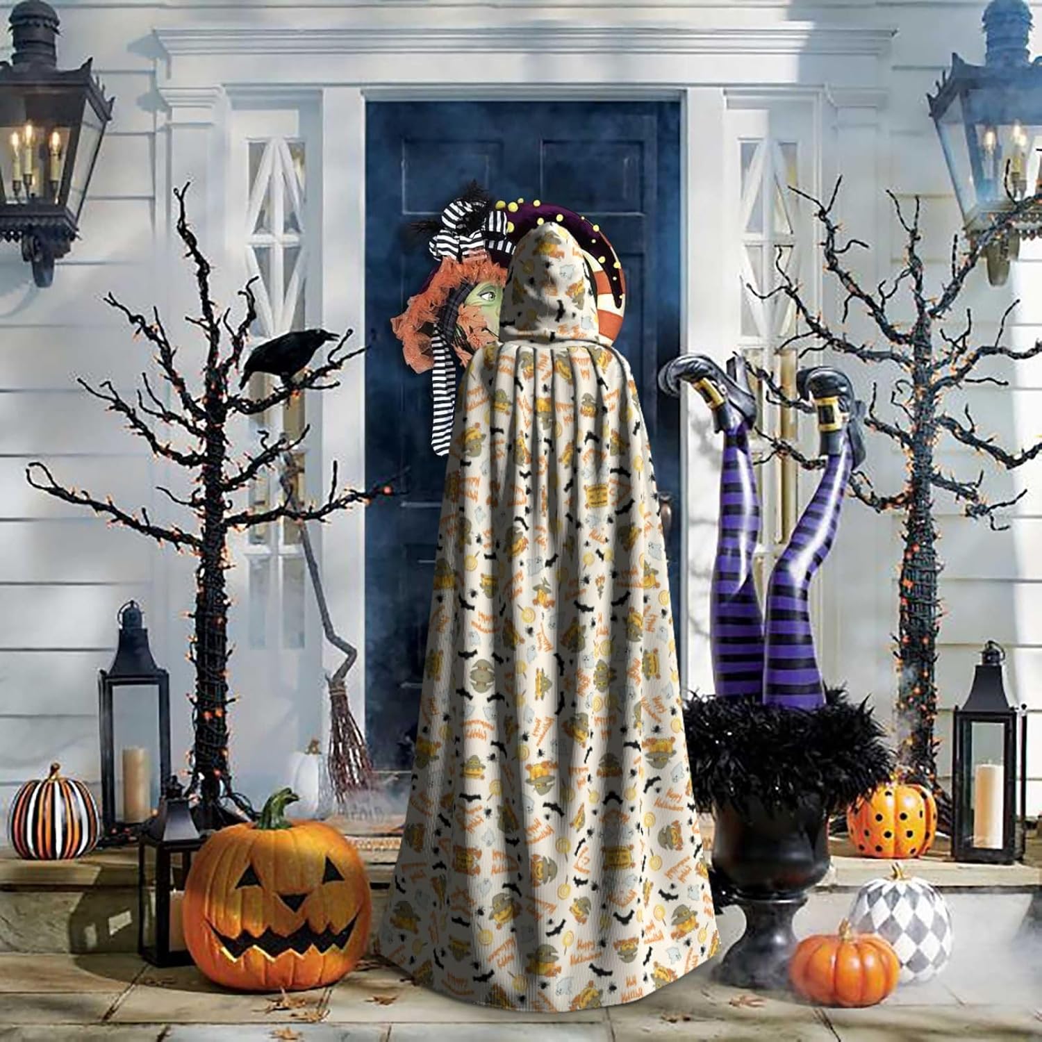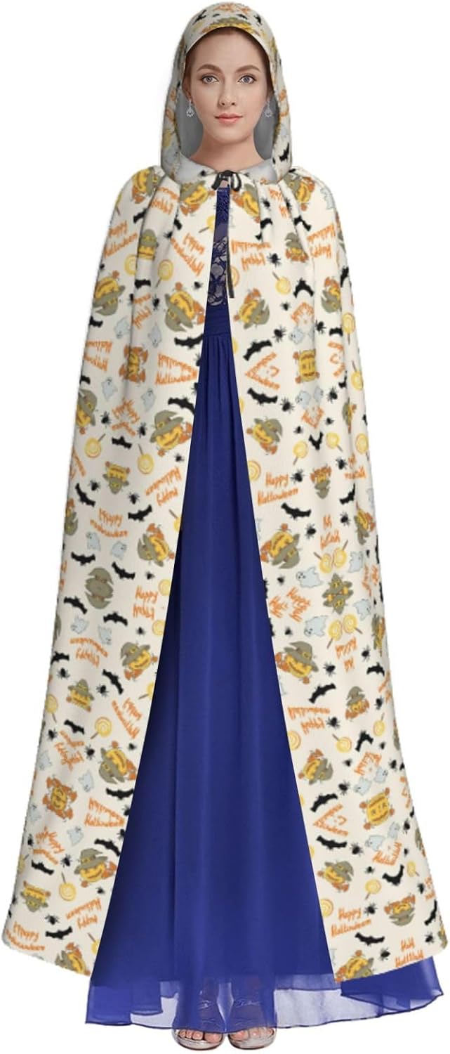Mantello con cappuccio per Halloween, zucca e gufo, unisex, per Halloween, Natale, vampiro, stregone, costume cosplay
