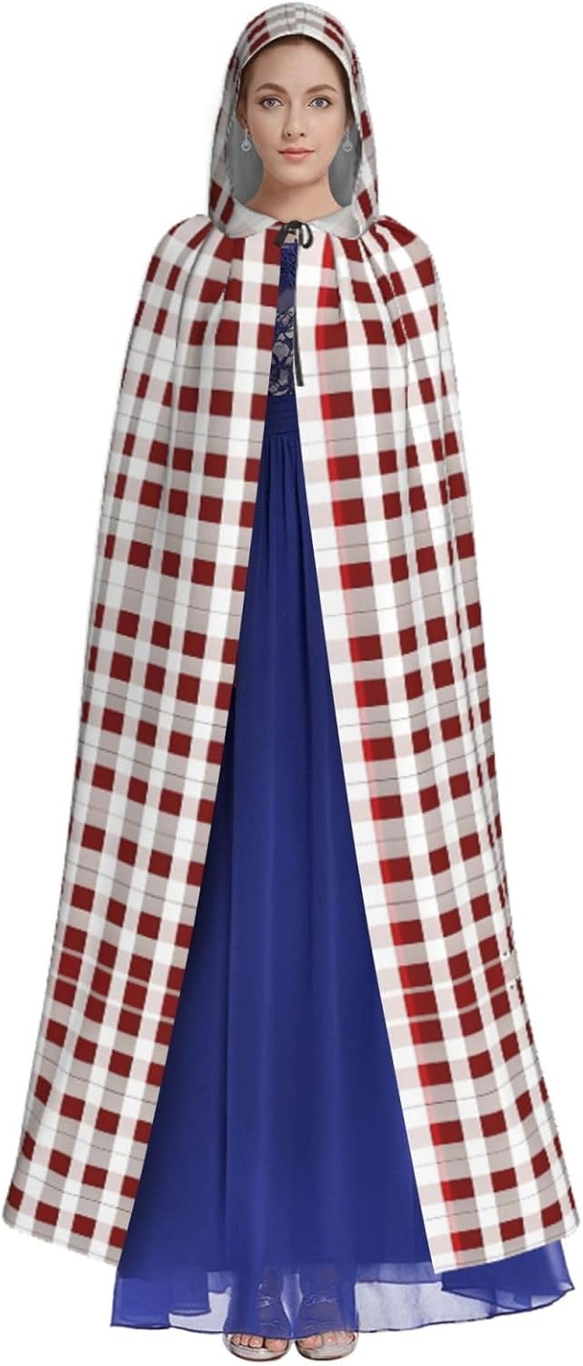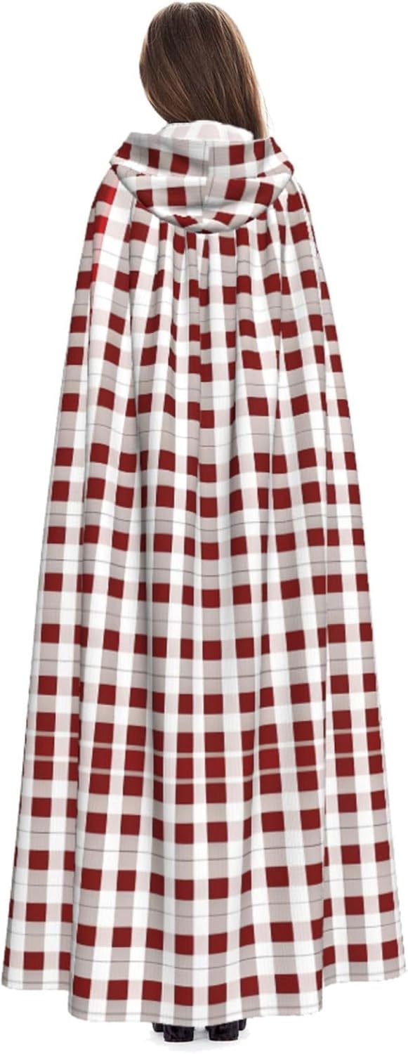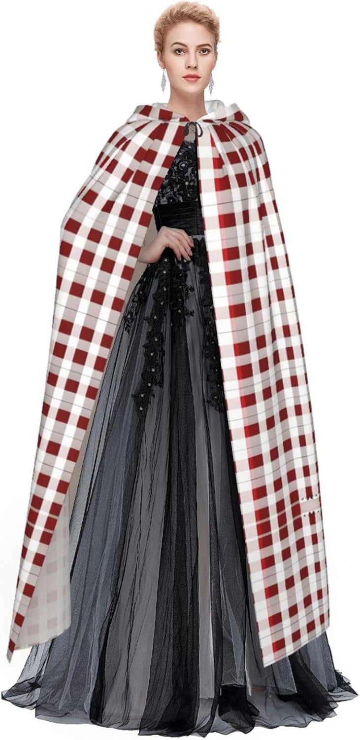 Mantello con cappuccio rosso bianco a scacchi mantello medievale mantello da mago mantello nero per adulti costume da strega