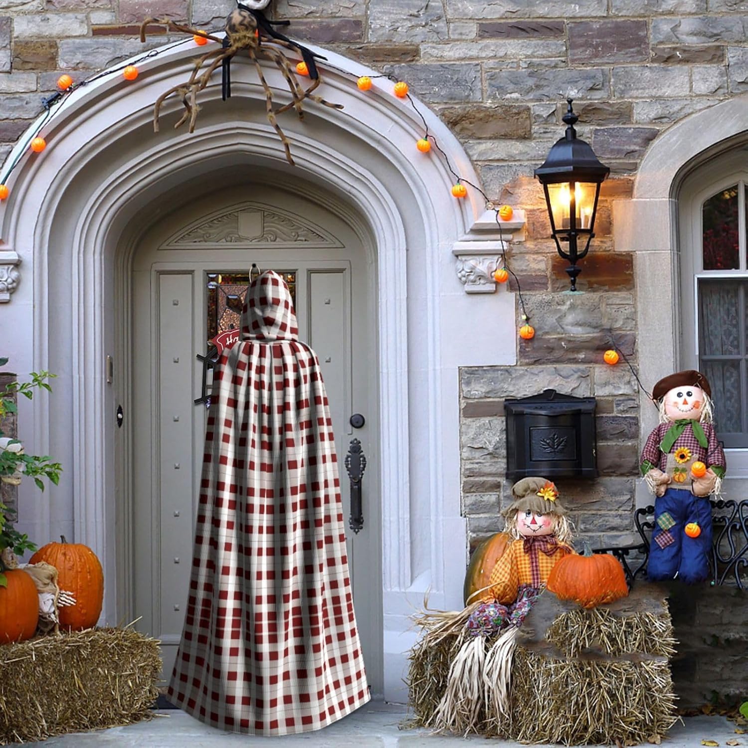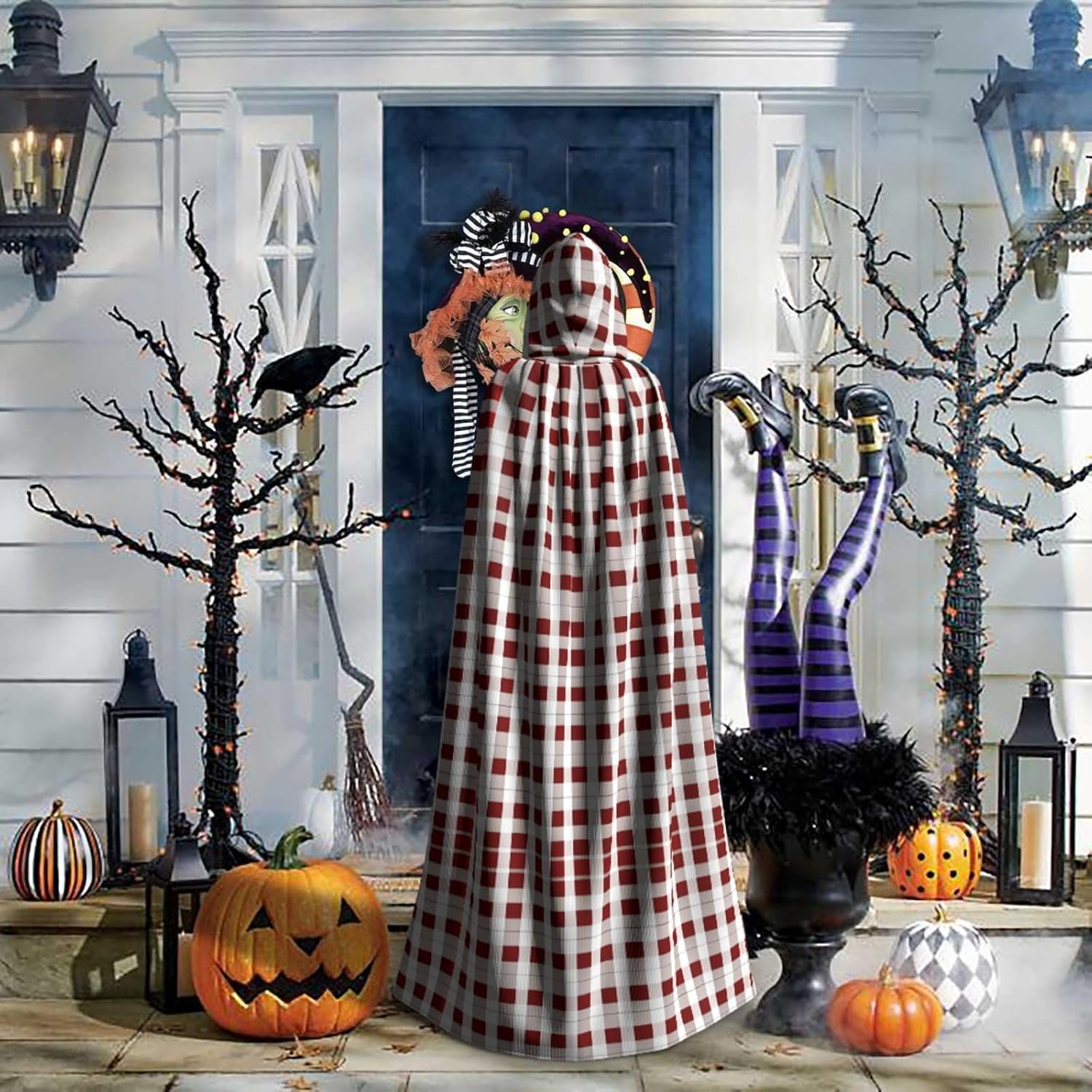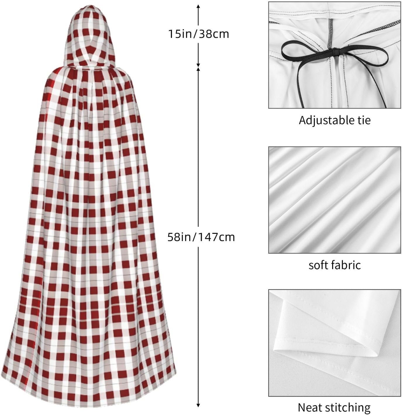 Mantello con cappuccio rosso bianco a scacchi mantello medievale mantello da mago mantello nero per adulti costume da strega