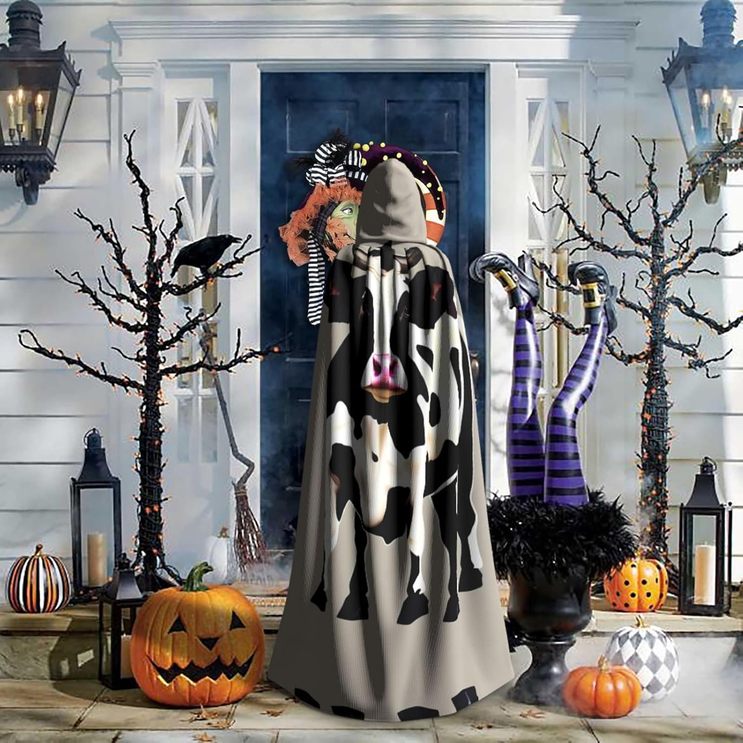 Mantello con cappuccio unisex a pois neri per Halloween, Natale, vampiro, stregone, costume cosplay