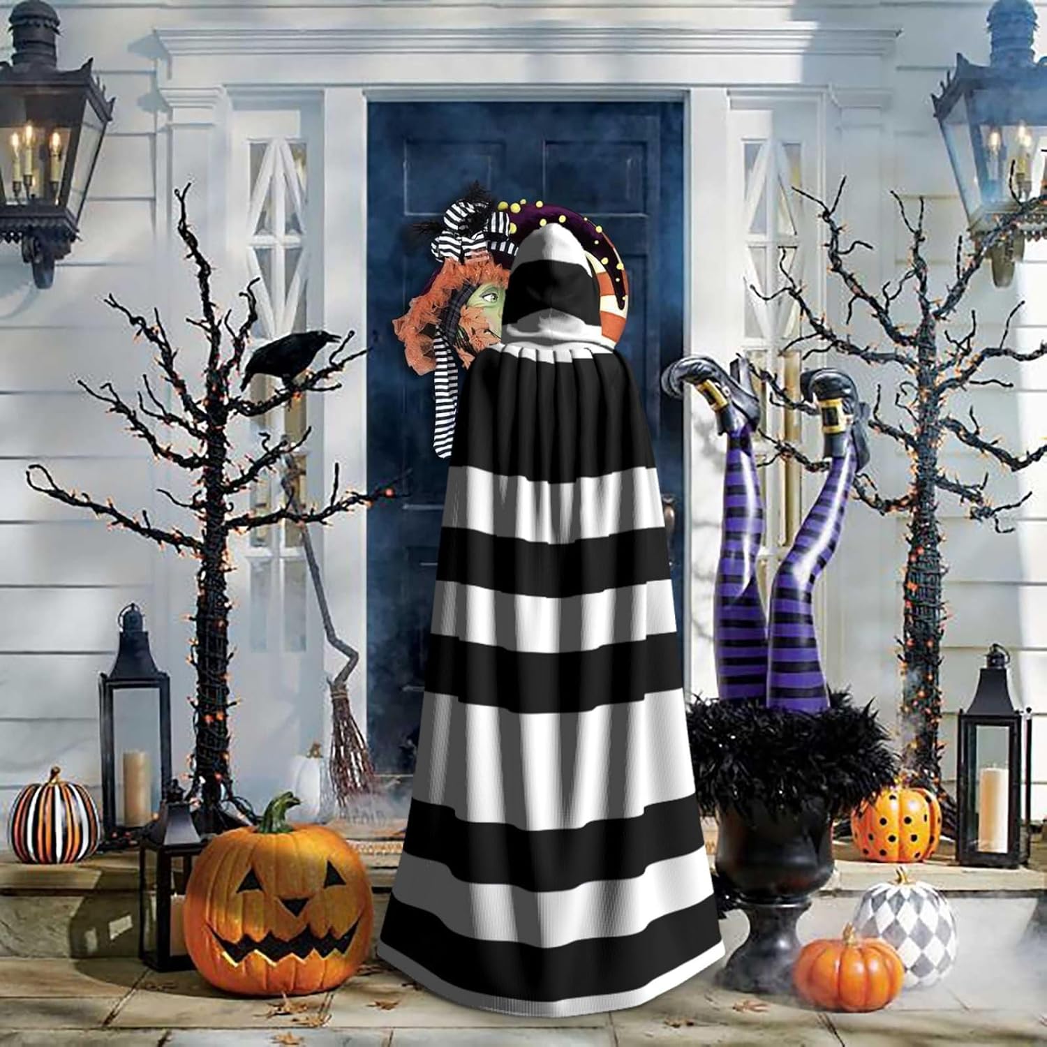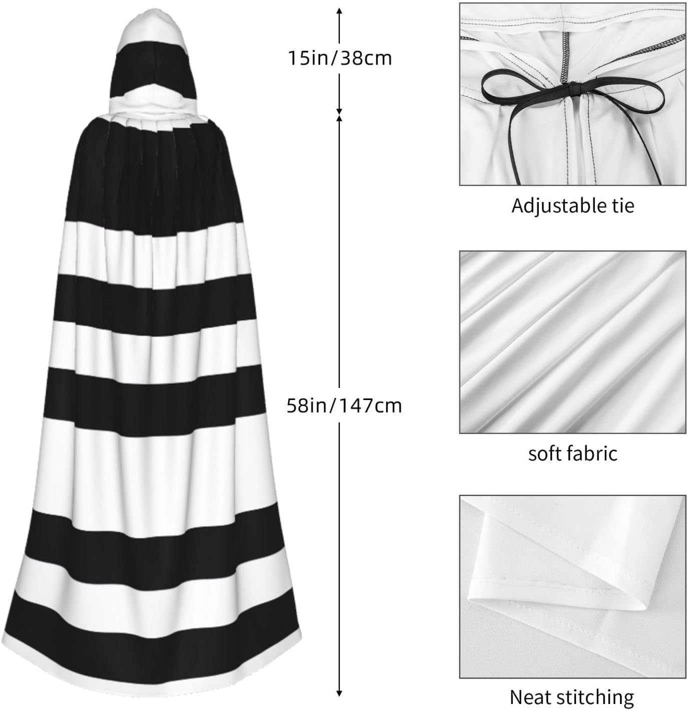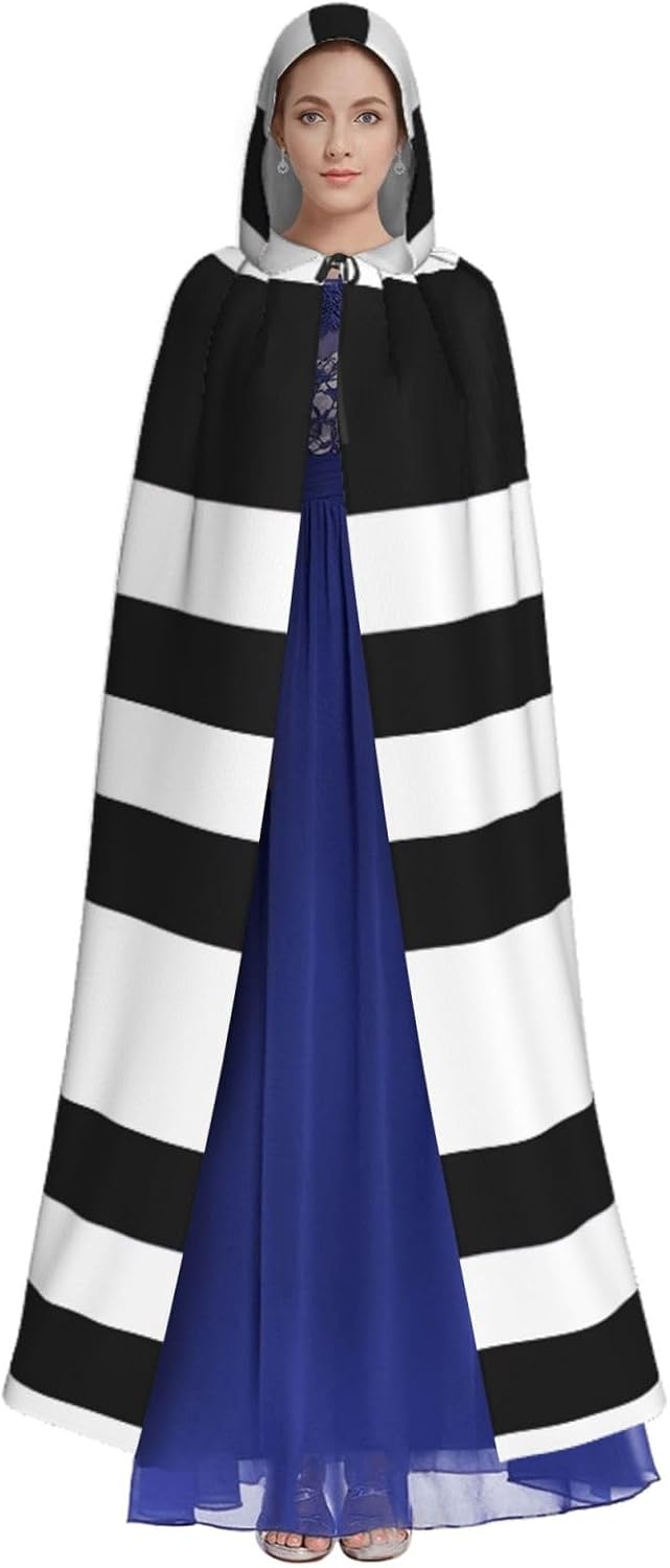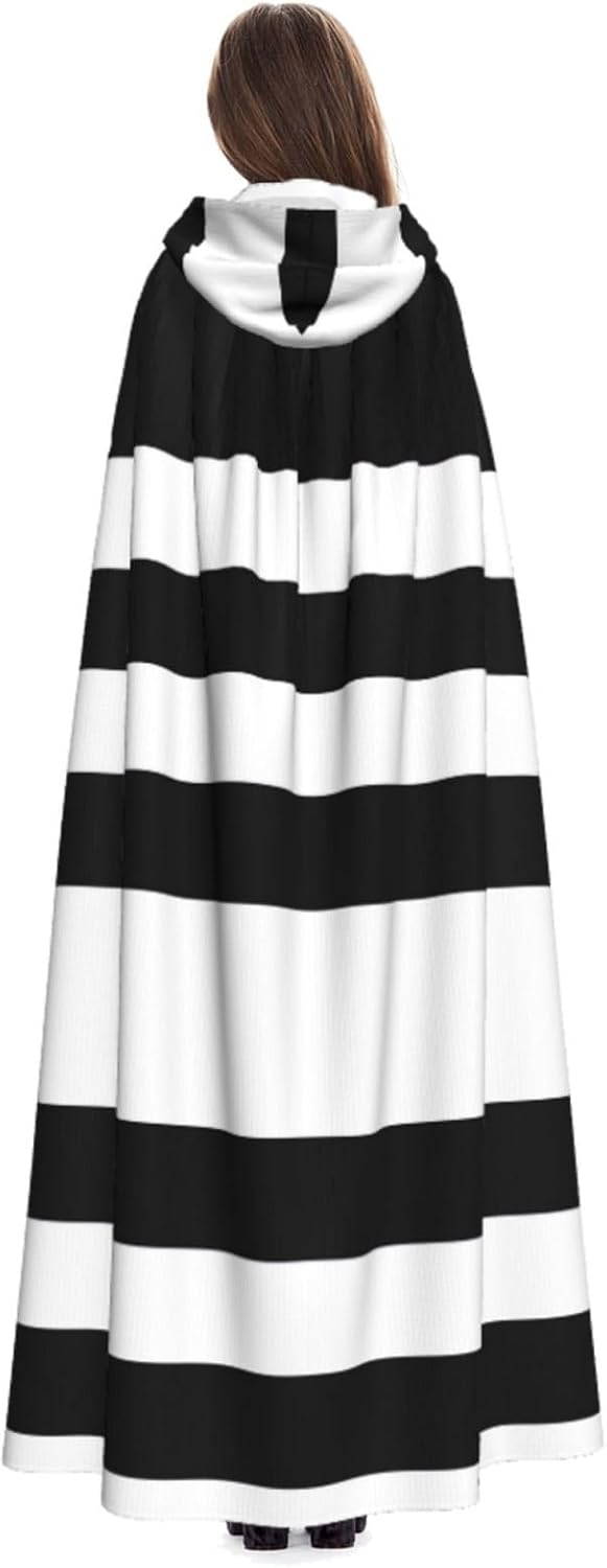 Mantello con cappuccio unisex a righe nere bianche e nere mantello di Natale mantello vampiro stregone costume cosplay