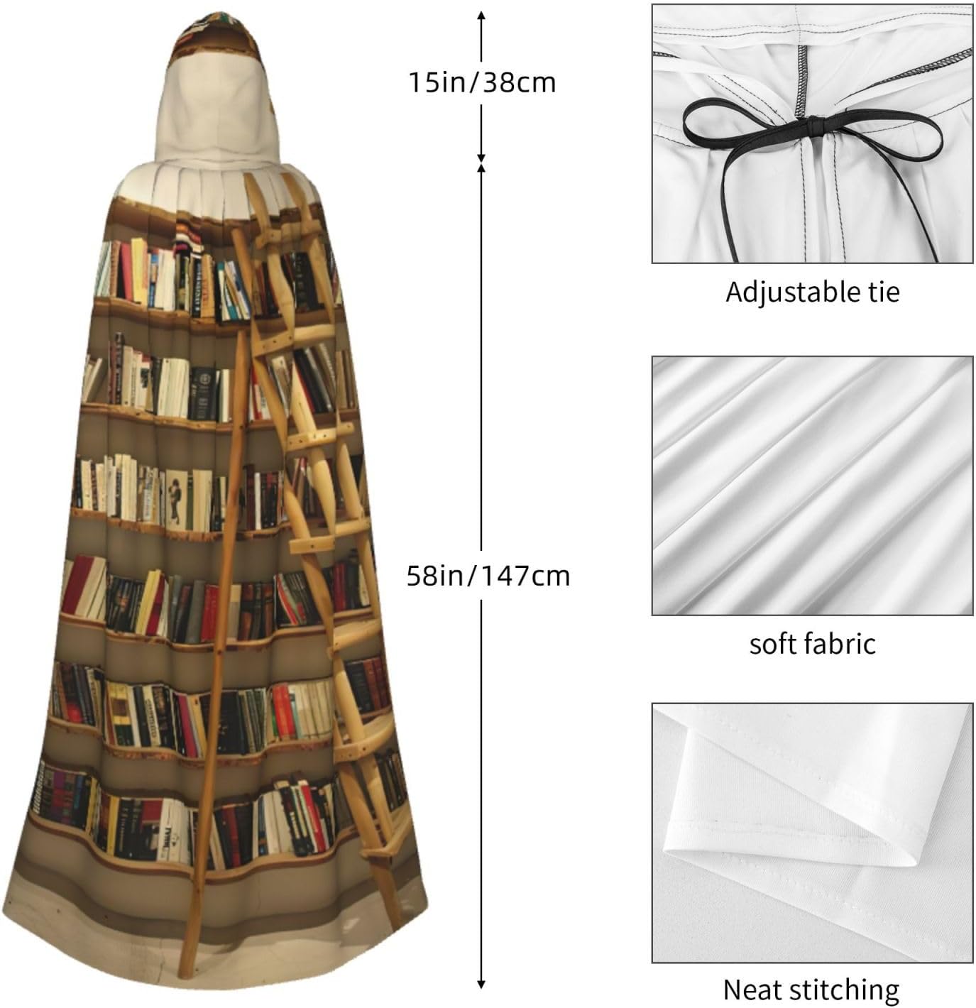 La nostra divertente collezione di scaffali per libri e mantello con stampa a scala viene fornita con un cappuccio comodo e drammatico, insieme a una cravatta per un facile utilizzo, privo di cerniere che potrebbero rovinare l'estetica. Questa divertente collezione di scaffali per libri e mantello con cappuccio con stampa a scala promette un comfort eccezionale grazie al suo tessuto anti-prurito e offre una copertura completa adatta a tutte le età. Non importa dove ti trovi, distinguiti tra la folla con questo pezzo eccezionale. Versatile e facile da mantenere, questo mantello è per una serie di eventi, che si tratti di Halloween, balli in maschera, feste in costume o fumetti. Basta metterlo in lavatrice o lavarlo a mano e sei pronto ad andare. Vestiti nello spirito di Halloween e Cosplay con la nostra divertente collezione di scaffali per libri e mantello con cappuccio con stampa a scala, offrendo la combinazione di comodità, comfort e stile.
