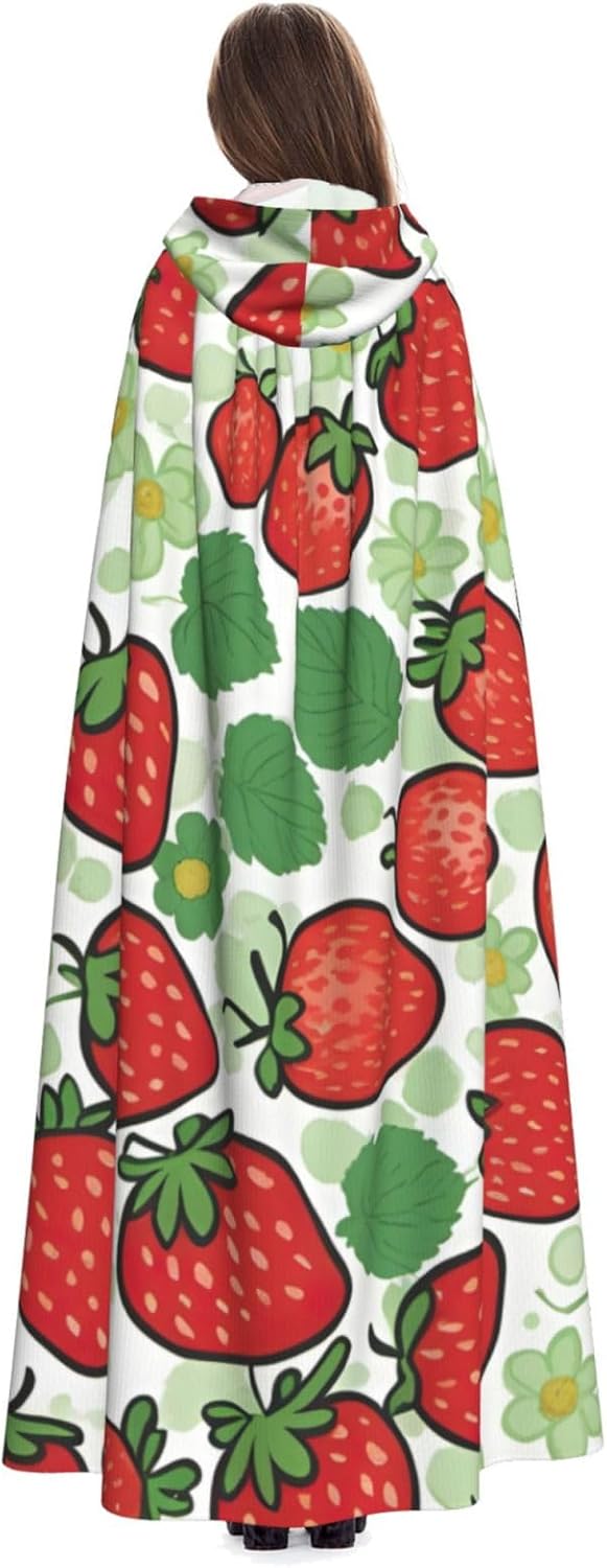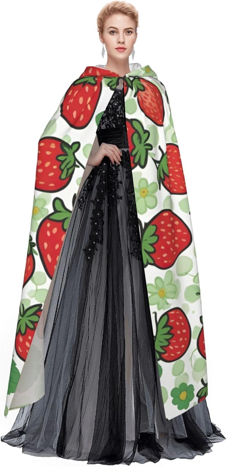 Mantello con cappuccio unisex con stampa a fragola per adulti Halloween a lunghezza intera mantello da uomo con cappuccio costume