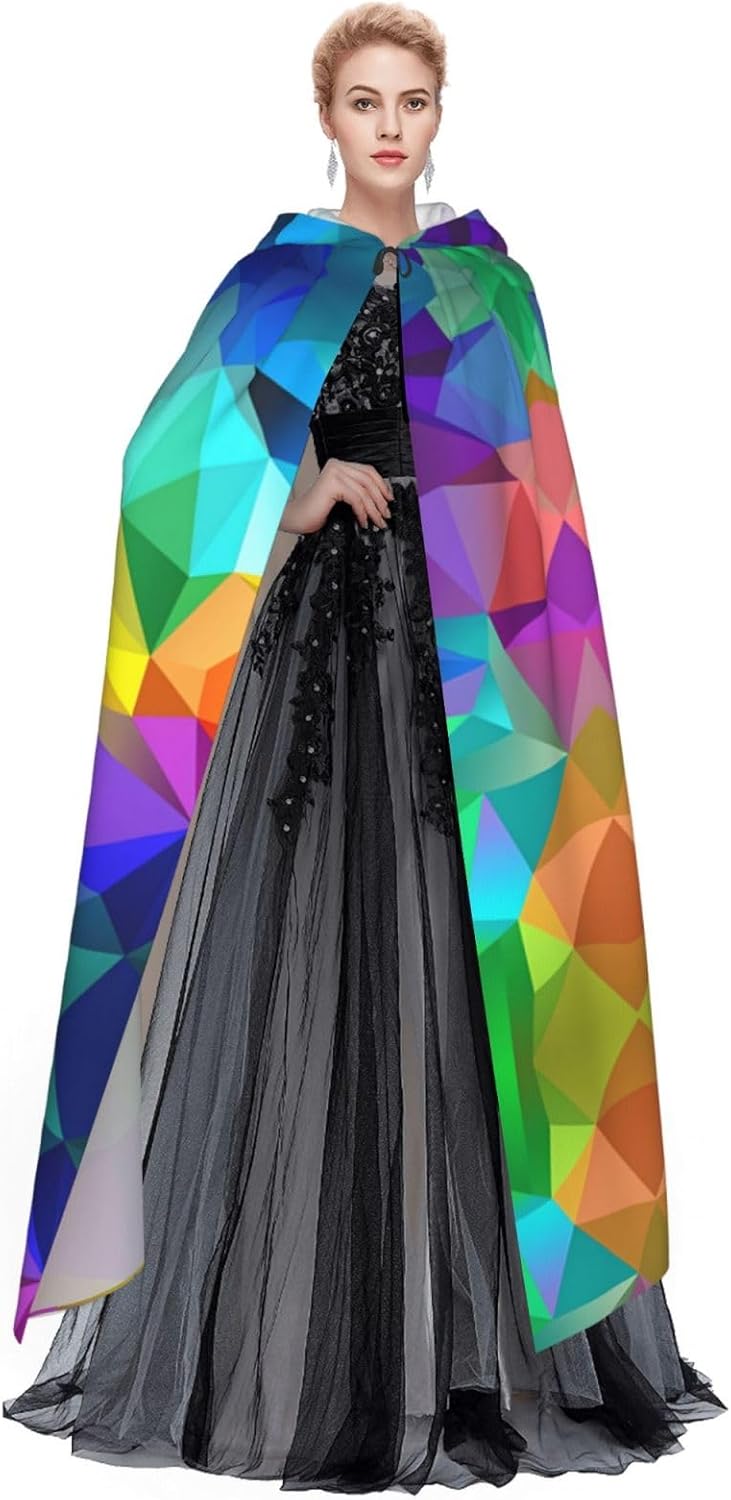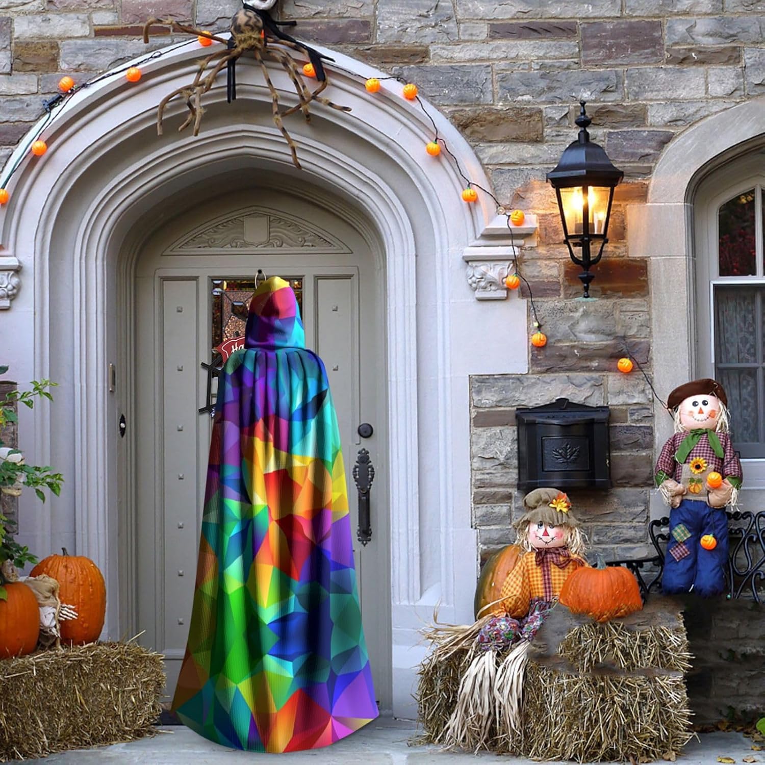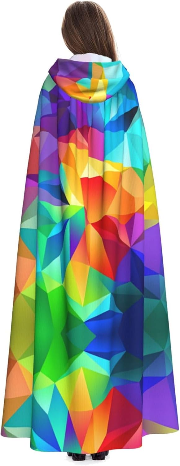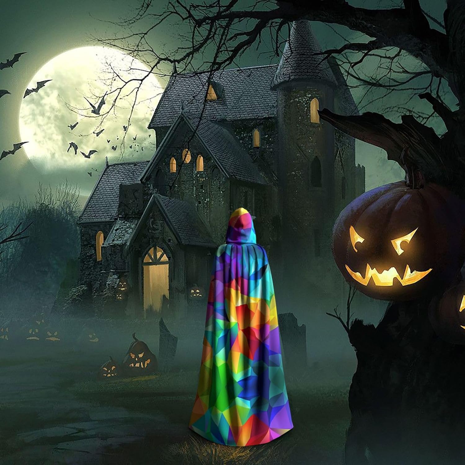 Mantello con cappuccio unisex con stampa geometrica arcobaleno HD, mantello di Halloween, mantello con cappuccio, costume cosplay unisex