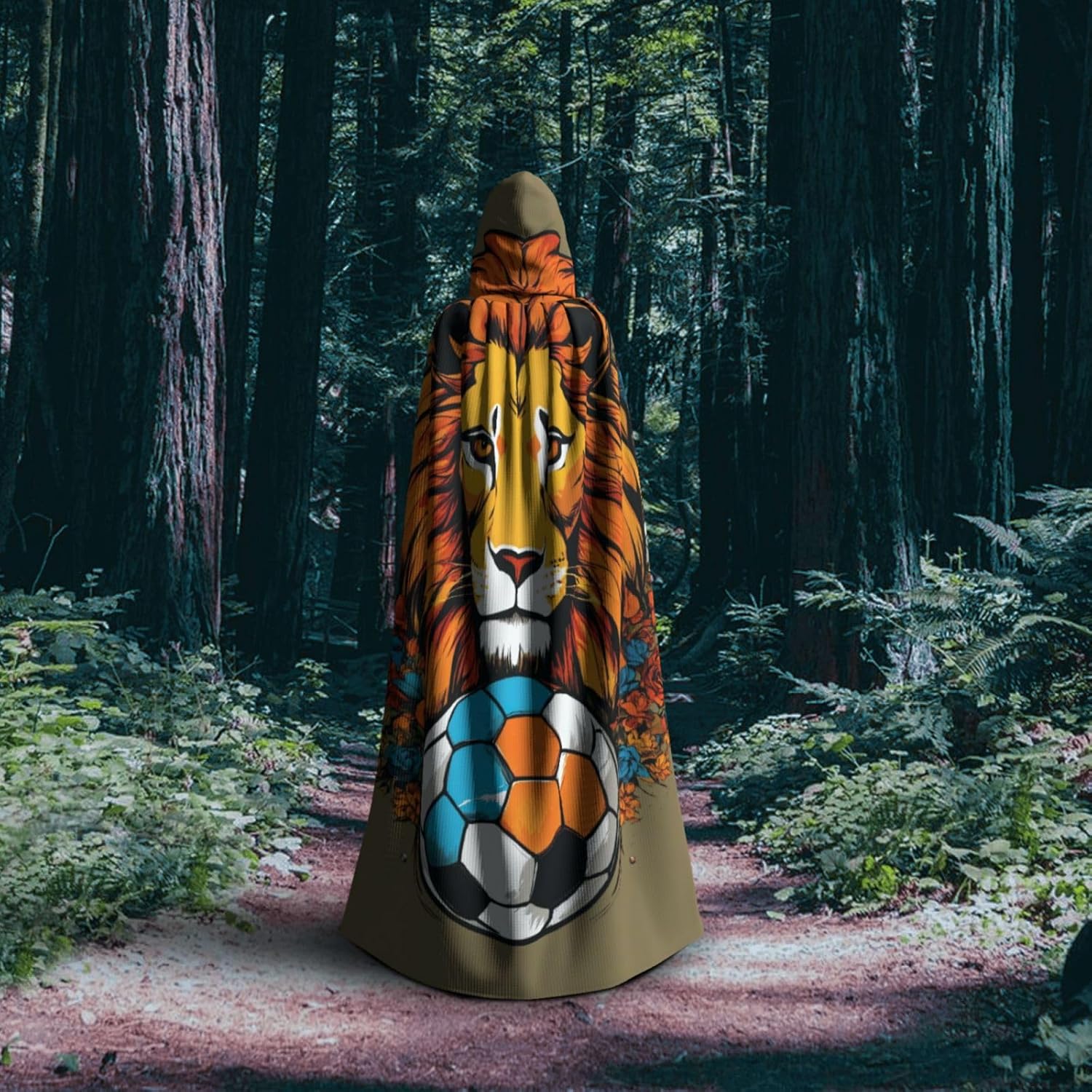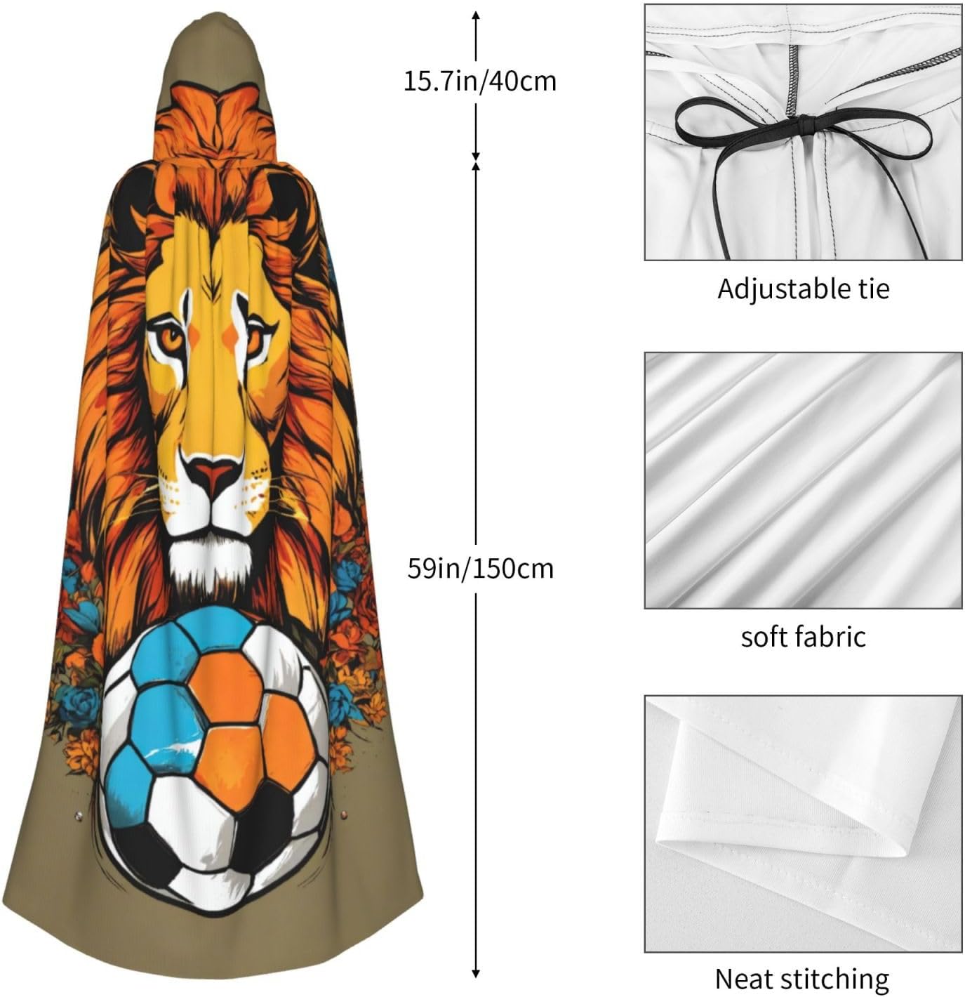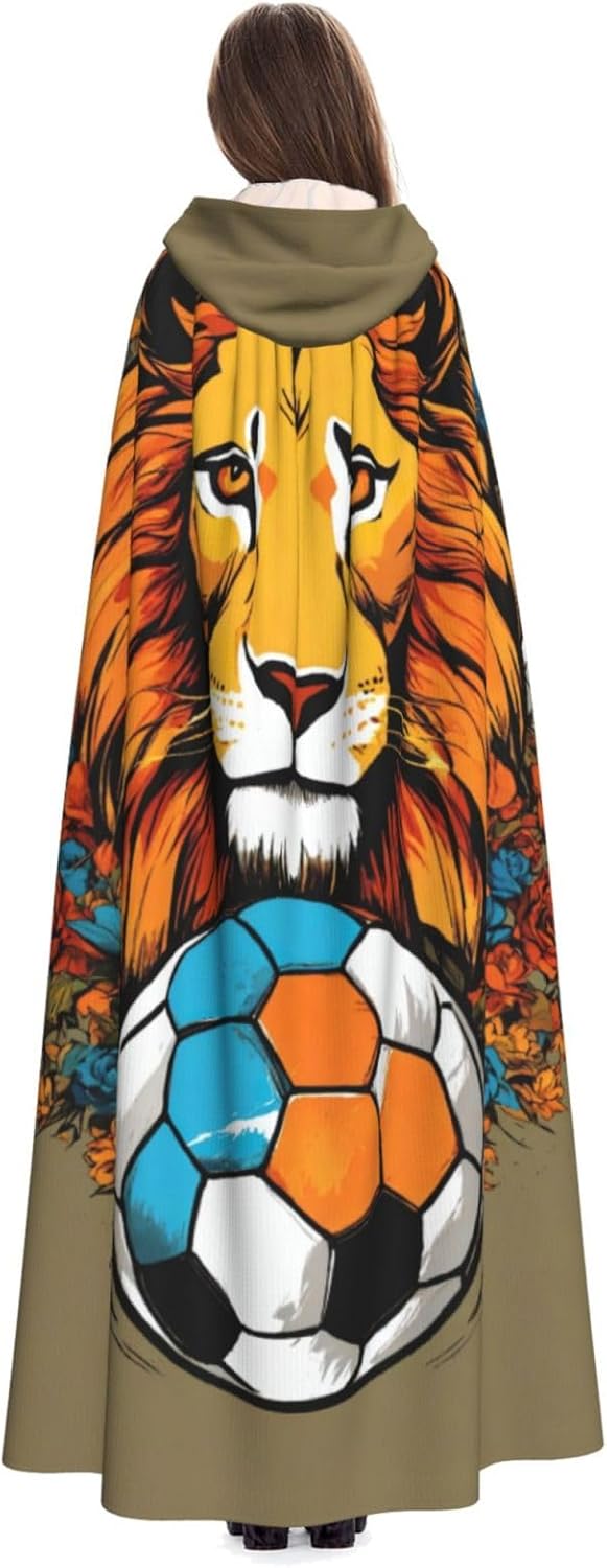 Mantello con cappuccio unisex con stampa leone per adulti Halloween a lunghezza intera mantello da uomo con cappuccio costume