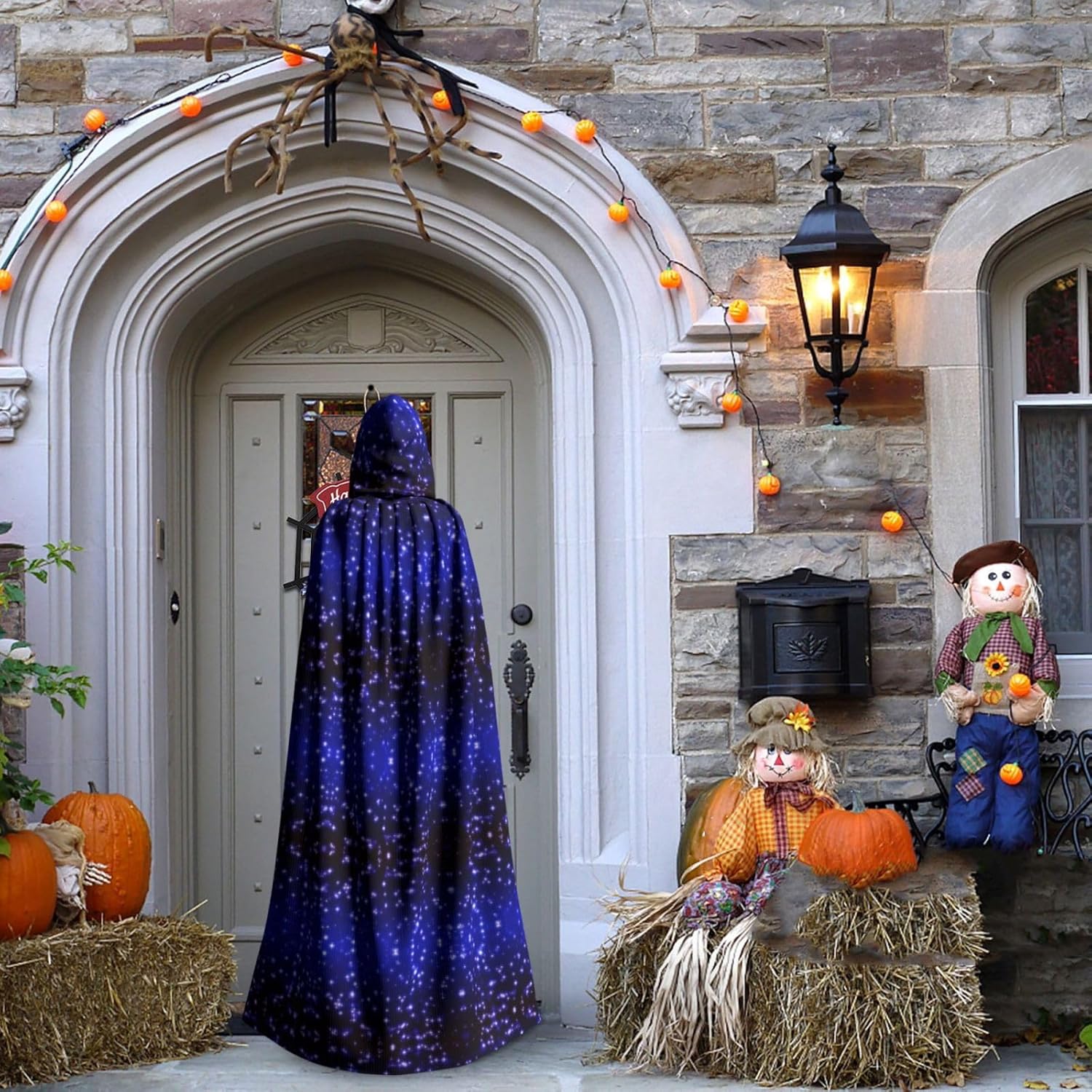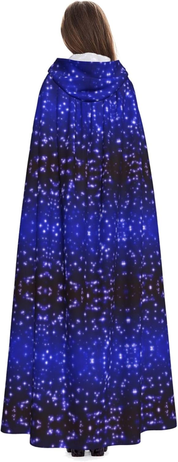 Il nostro mantello con cappuccio a stelle luminose presenta chiusura a cravatta e cappuccio. Mantello di Halloween, mantello di Halloween, abito di Halloween, il mantello con cappello oversize ha un papillon e senza cerniera. Costumi di Halloween di Natale