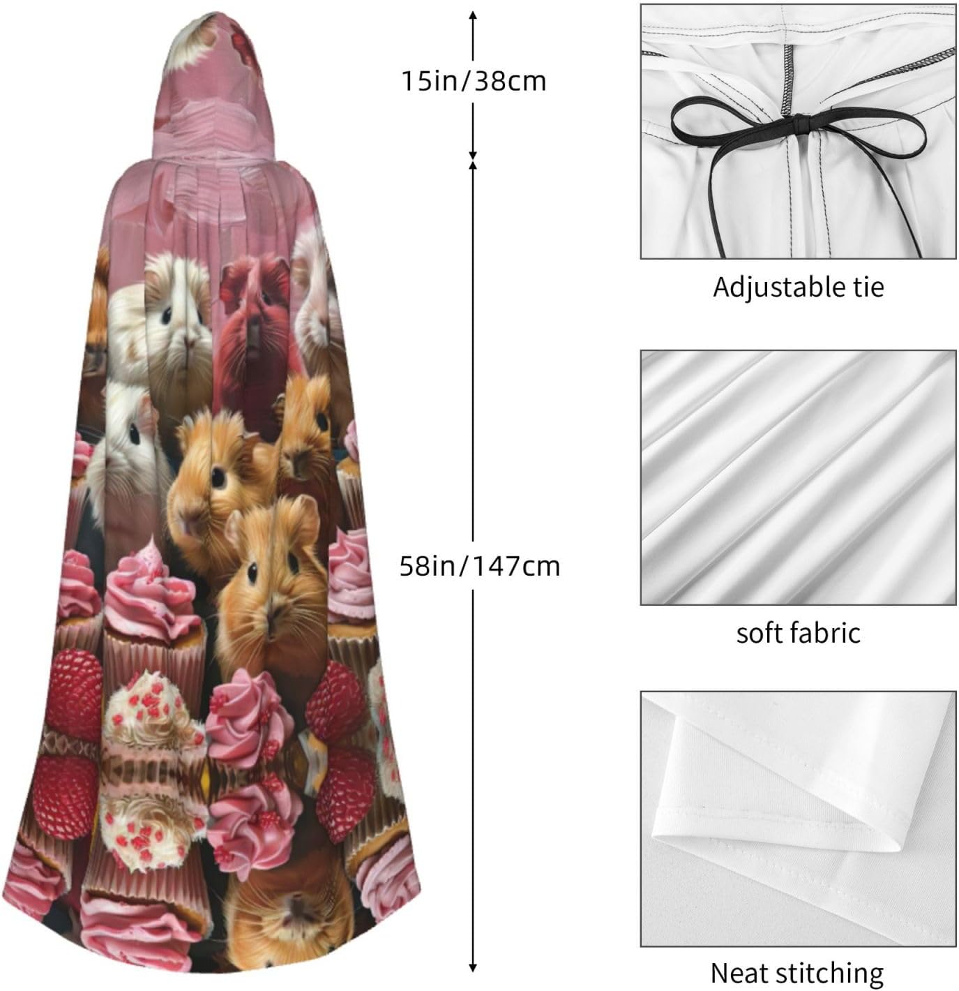 Mantello con cappuccio unisex per Halloween, Natale, vampiro, stregone, costume cosplay