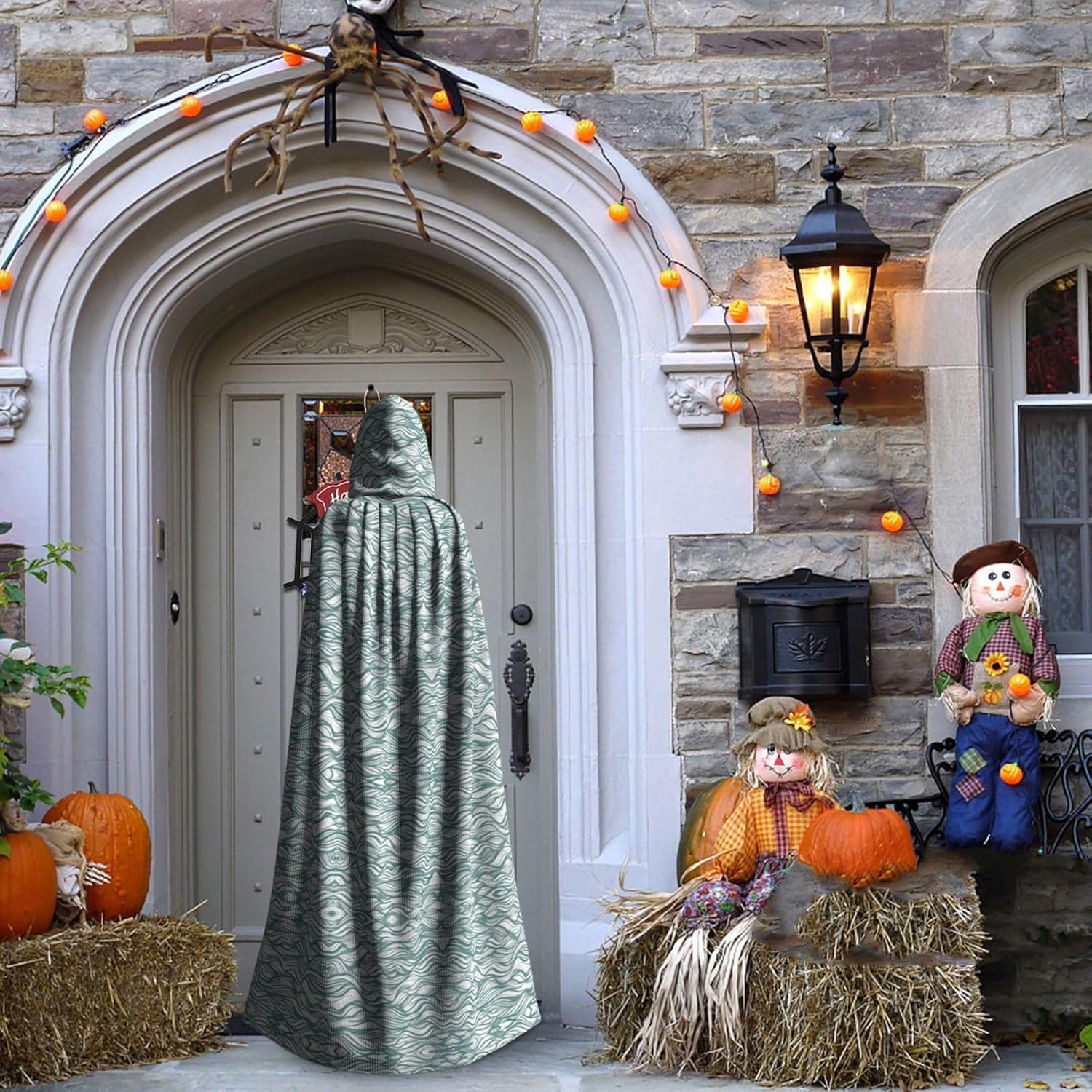 Materiale e design a righe ondulate verdi: il tessuto è realizzato in 100% fibra di poliestere (poliestere) tessuto di alta qualità, morbido e confortevole. Il design con cappuccio non è solo elegante e bello, ma fornisce anche calore extra alla testa e al collo. \r Caratteristiche del prodotto: il poncho oversize con cappuccio è un poncho con cappuccio senza lacci, senza cerniera, comodo realizzato in tessuto lungo, resistente e non prurito. \r Dimensioni del prodotto: il cappello misura 38,1 cm di altezza, 147,3 cm di lunghezza, 154 cm di larghezza. \r Adatto per occasioni: feste di Natale, feste di Halloween, feste in costume, celebrazioni pagane. Ideale per travestimenti, cosplay, costumi da scena, streghe, vampiri, royalty, scelta regalo perfetta per amici o familiari. \r Persone applicabili: adulti, unisex.