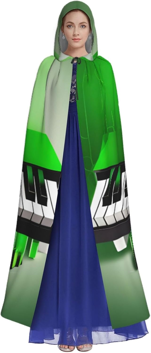Il design senza cerniera, abbinato a un grande mantello con cappuccio e cravatta al collo, migliora il tuo mistero mantenendoti comodo con il suo tessuto non prurito. Con una lunghezza di 147 cm, larghezza di 154 cm e un'altezza del cappuccio di 38 cm, il nostro mantello con cappuccio con stampa di tasti di pianoforte verde e bianco offre una copertura completa, assicurandoti di distinguerti in ogni occasione. Vari eventi come Halloween, cosplay, costumi da palcoscenico, feste a tema, balli, convegni di fumetti e molto altro ancora, il nostro mantello è versatile e conveniente. Facile da mantenere e di lunga durata, il nostro mantello con cappuccio con stampa di tasti di pianoforte verdi e bianchi è lavabile in lavatrice e lavabile a mano. Con un design neutro, il nostro mantello è perfetto per uomini e donne.