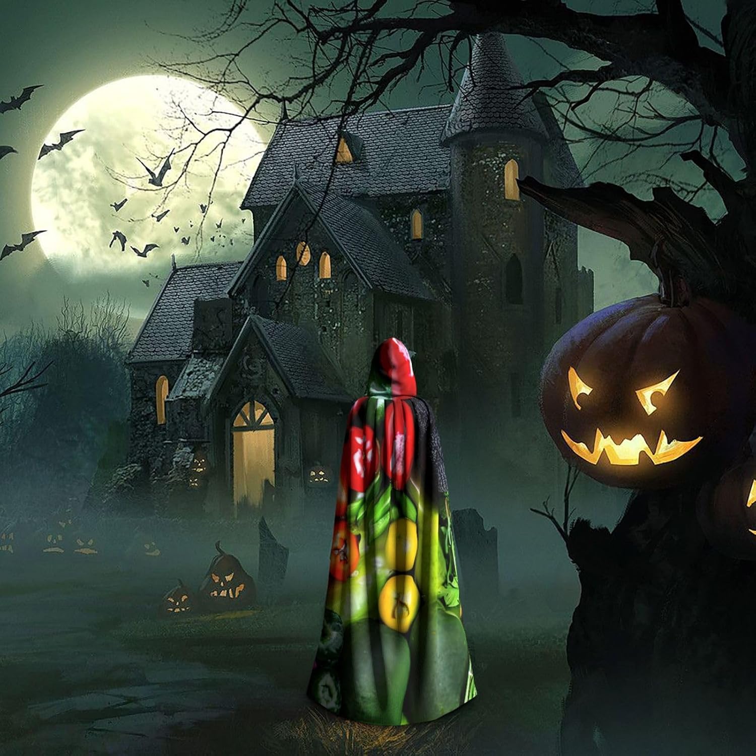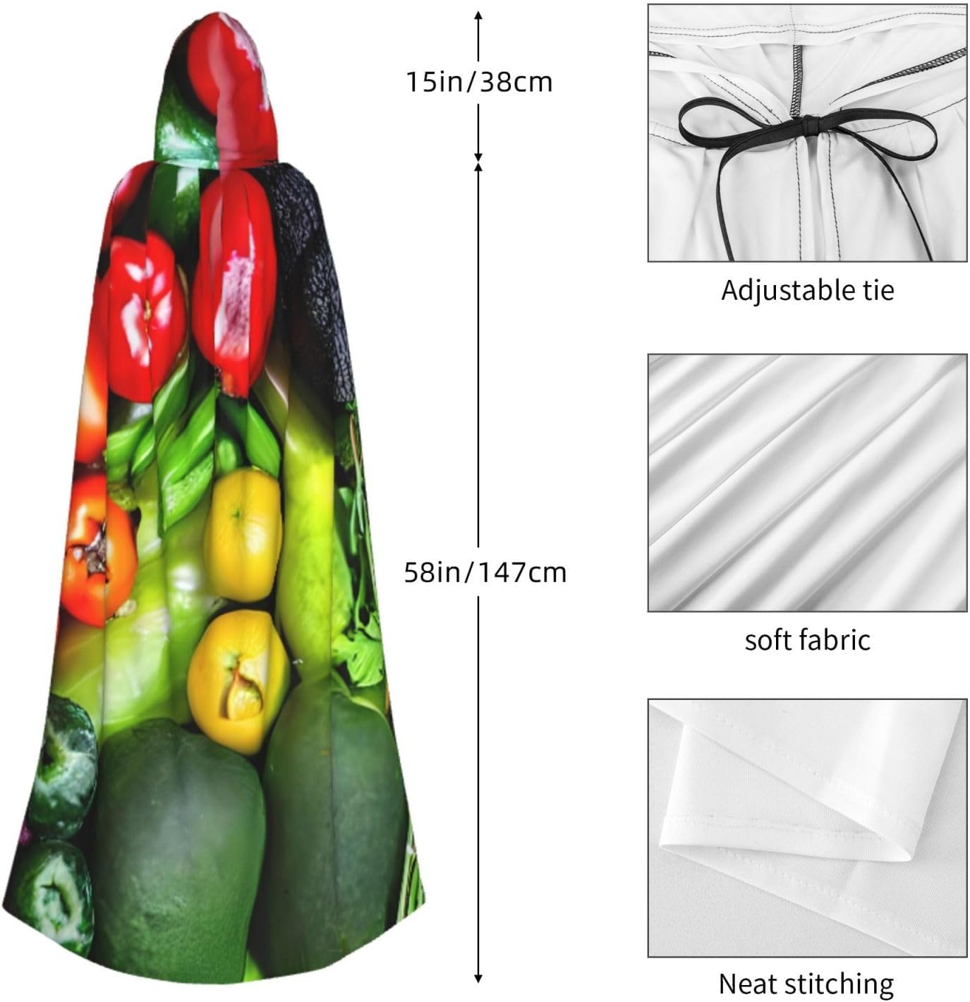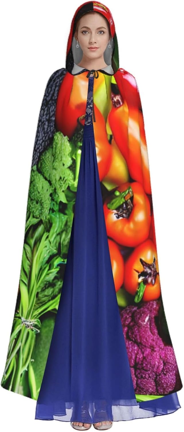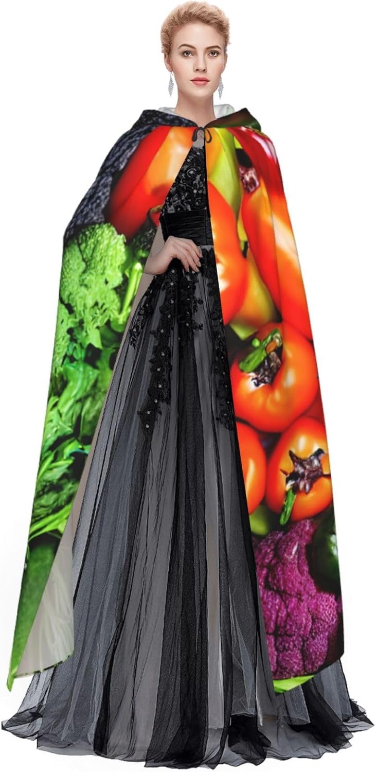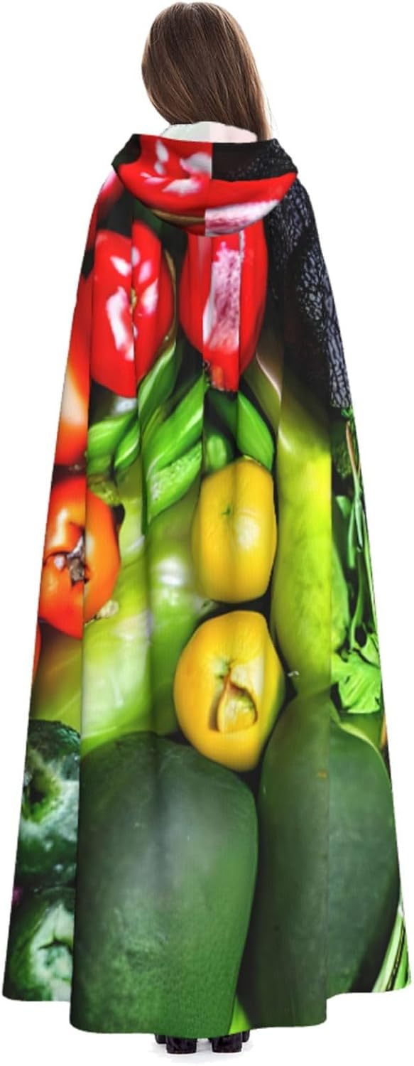 Realizzato in poliestere, questo mantello con stampa di frutta e verdura fresca con cappuccio garantisce longevità e comfort. Le sue dimensioni ottimali assicurano una copertura completa per tutte le età, facendoti risaltare in qualsiasi evento. Che tu sia diretto per Halloween, un evento cosplay, un costume da palcoscenico, una festa in maschera, una festa a tema, un ballo o una convention di fumetti, questo mantello è una scelta ideale. Il suo design unico, completo di un grande cappuccio e cravatte collare. Inoltre, puoi dire addio ai metodi di pulizia complicati. Questo mantello con cappuccio con stampa di verdure fresche e frutta è lavabile in lavatrice e a mano, offrendo una cura senza sforzo. Esci con stile e comfort con il nostro mantello con cappuccio, il tuo compagno per tutti gli eventi e le occasioni.