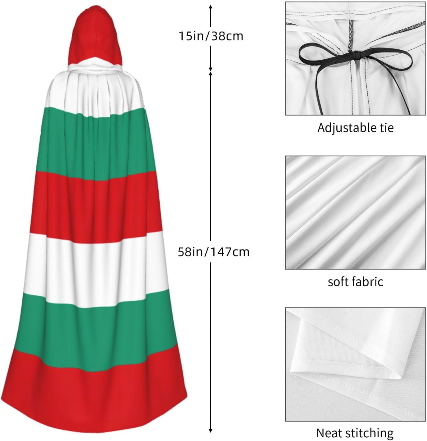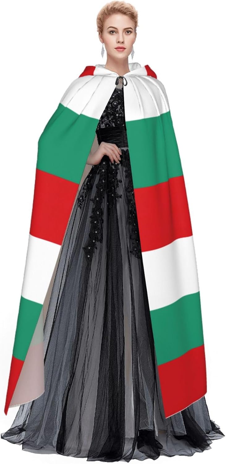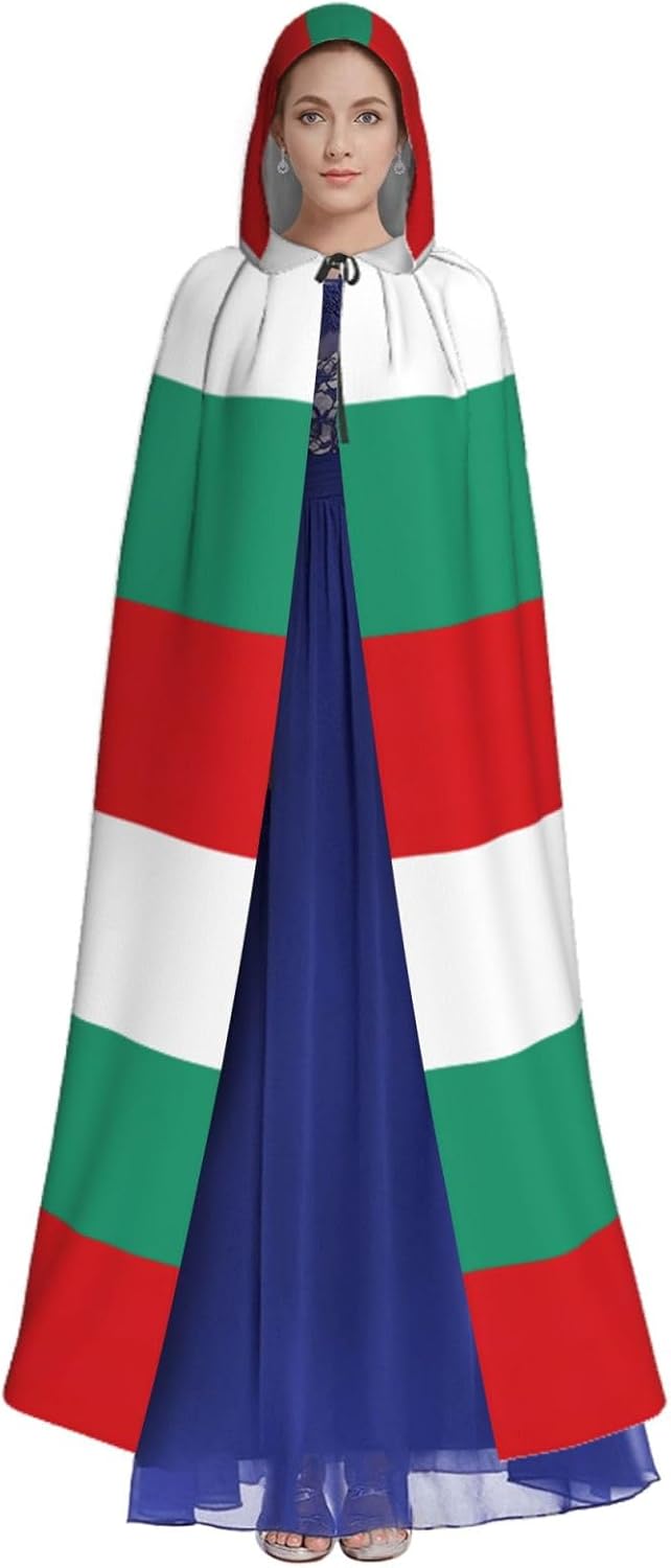 Realizzato in poliestere, questo mantello con stampa bandiera bulgara con cappuccio garantisce longevità e comfort. Le sue dimensioni ottimali assicurano una copertura completa per tutte le età, facendoti risaltare in qualsiasi evento. Che tu sia diretto per Halloween, un evento cosplay, un costume da palcoscenico, una festa in maschera, una festa a tema, un ballo o una convention di fumetti, questo mantello è una scelta ideale. Il suo design unico, completo di un grande cappuccio e cravatte collare. Inoltre, puoi dire addio ai metodi di pulizia complicati. Questo mantello con cappuccio con stampa bandiera bulgara è lavabile in lavatrice e a mano, offrendo una cura senza sforzo. Esci con stile e comfort con il nostro mantello con cappuccio, il tuo compagno per tutti gli eventi e le occasioni.