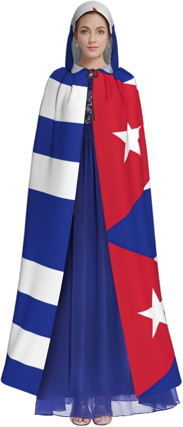Realizzato in poliestere, questo mantello con stampa bandiera cubana con cappuccio garantisce longevità e comfort. Le sue dimensioni ottimali assicurano una copertura completa per tutte le età, facendoti risaltare in qualsiasi evento. Che tu sia diretto per Halloween, un evento cosplay, un costume da palcoscenico, una festa in maschera, una festa a tema, un ballo o una convention di fumetti, questo mantello è una scelta ideale. Il suo design unico, completo di un grande cappuccio e cravatte collare. Inoltre, puoi dire addio ai metodi di pulizia complicati. Questo mantello con cappuccio con stampa bandiera cubana è lavabile in lavatrice e a mano, offrendo una cura senza sforzo. Esci con stile e comfort con il nostro mantello con cappuccio, il tuo compagno per tutti gli eventi e le occasioni.