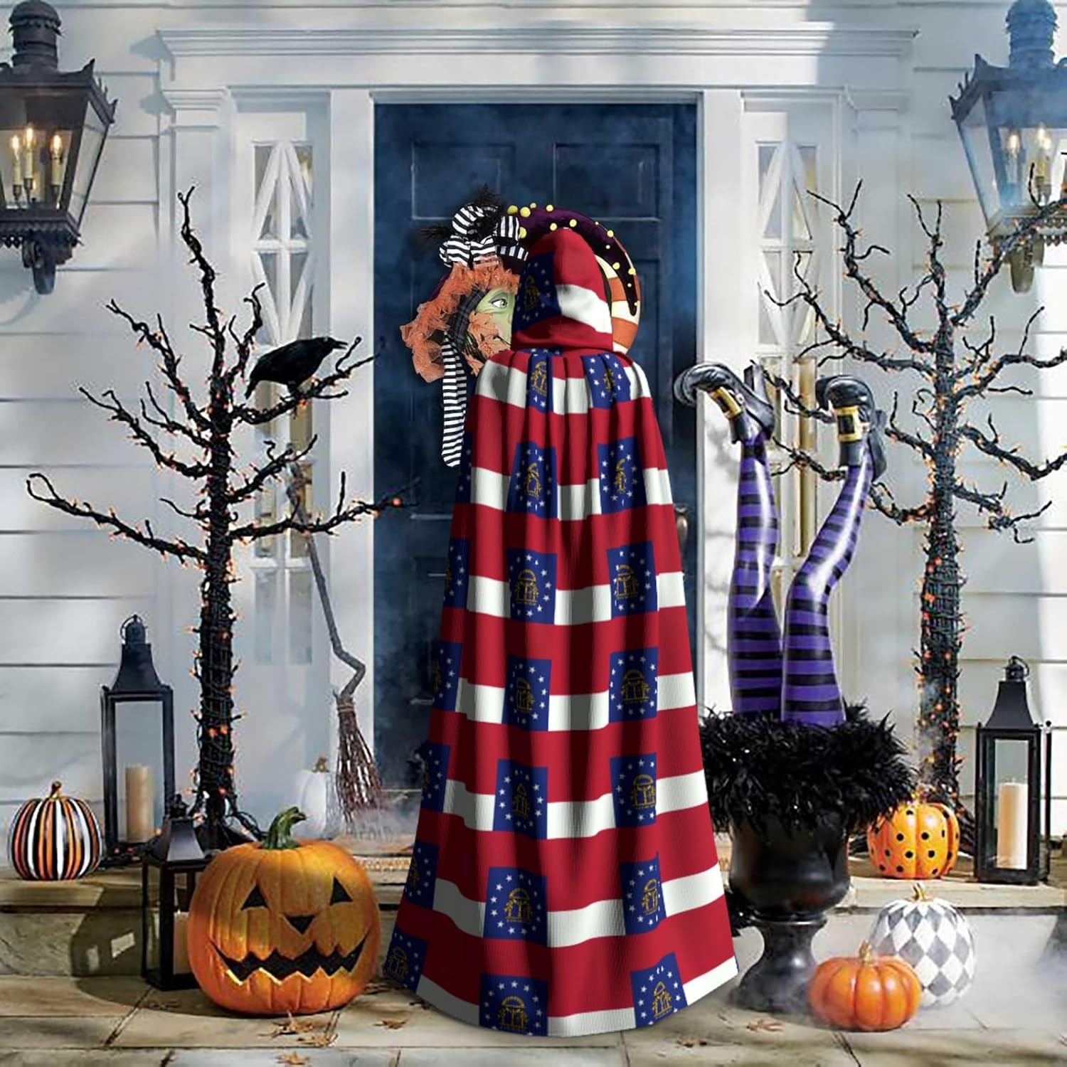 Realizzato in poliestere, questo mantello con stampa bandiera della Georgia con cappuccio garantisce longevità e comfort. Le sue dimensioni ottimali assicurano una copertura completa per tutte le età, facendoti risaltare in qualsiasi evento. Che tu sia diretto per Halloween, un evento cosplay, un costume da palcoscenico, una festa in maschera, una festa a tema, un ballo o una convention di fumetti, questo mantello è una scelta ideale. Il suo design unico, completo di un grande cappuccio e cravatte collare. Inoltre, puoi dire addio ai metodi di pulizia complicati. Questo mantello con cappuccio con stampa bandiera della Georgia è lavabile in lavatrice e a mano, offrendo una cura senza sforzo. Esci con stile e comfort con il nostro mantello con cappuccio, il tuo compagno per tutti gli eventi e le occasioni.