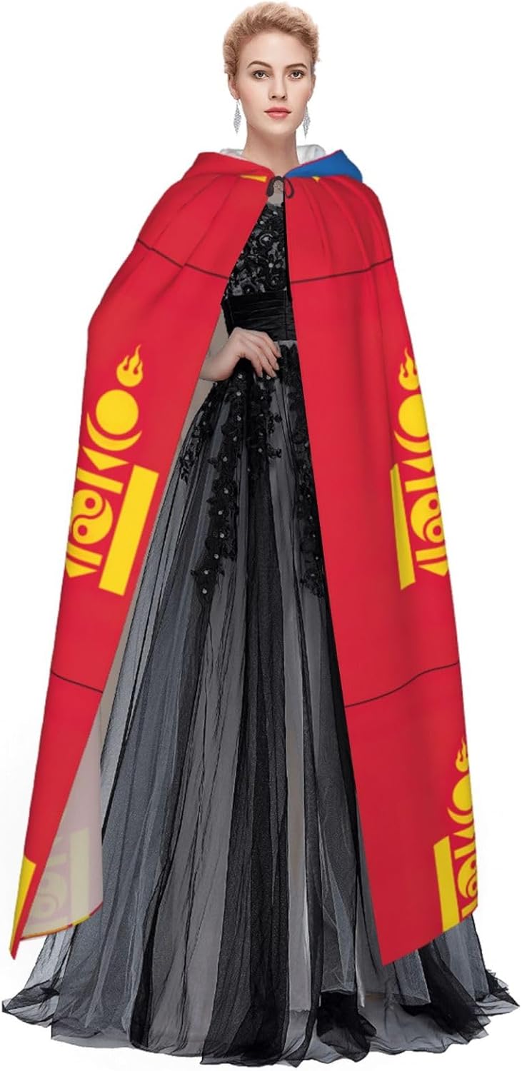 Realizzato in poliestere, questo mantello con stampa bandiera mongola con cappuccio garantisce longevità e comfort. Le sue dimensioni ottimali assicurano una copertura completa per tutte le età, facendoti risaltare in qualsiasi evento. Che tu sia diretto per Halloween, un evento cosplay, un costume da palcoscenico, una festa in maschera, una festa a tema, un ballo o una convention di fumetti, questo mantello è una scelta ideale. Il suo design unico, completo di un grande cappuccio e cravatte collare. Inoltre, puoi dire addio ai metodi di pulizia complicati. Questo mantello con cappuccio con stampa bandiera mongola è lavabile in lavatrice e a mano, offrendo una cura senza sforzo. Esci con stile e comfort con il nostro mantello con cappuccio, il tuo compagno per tutti gli eventi e le occasioni.