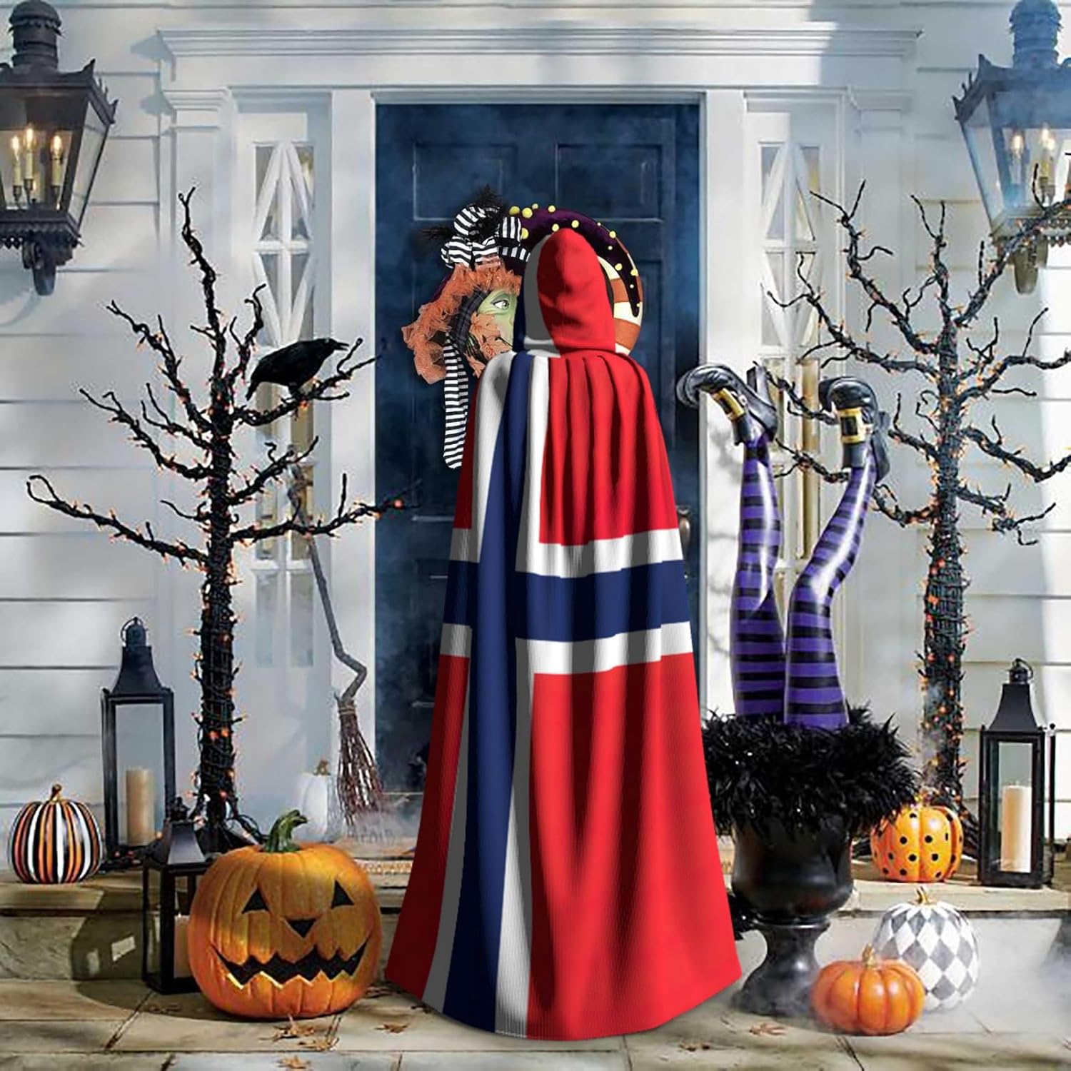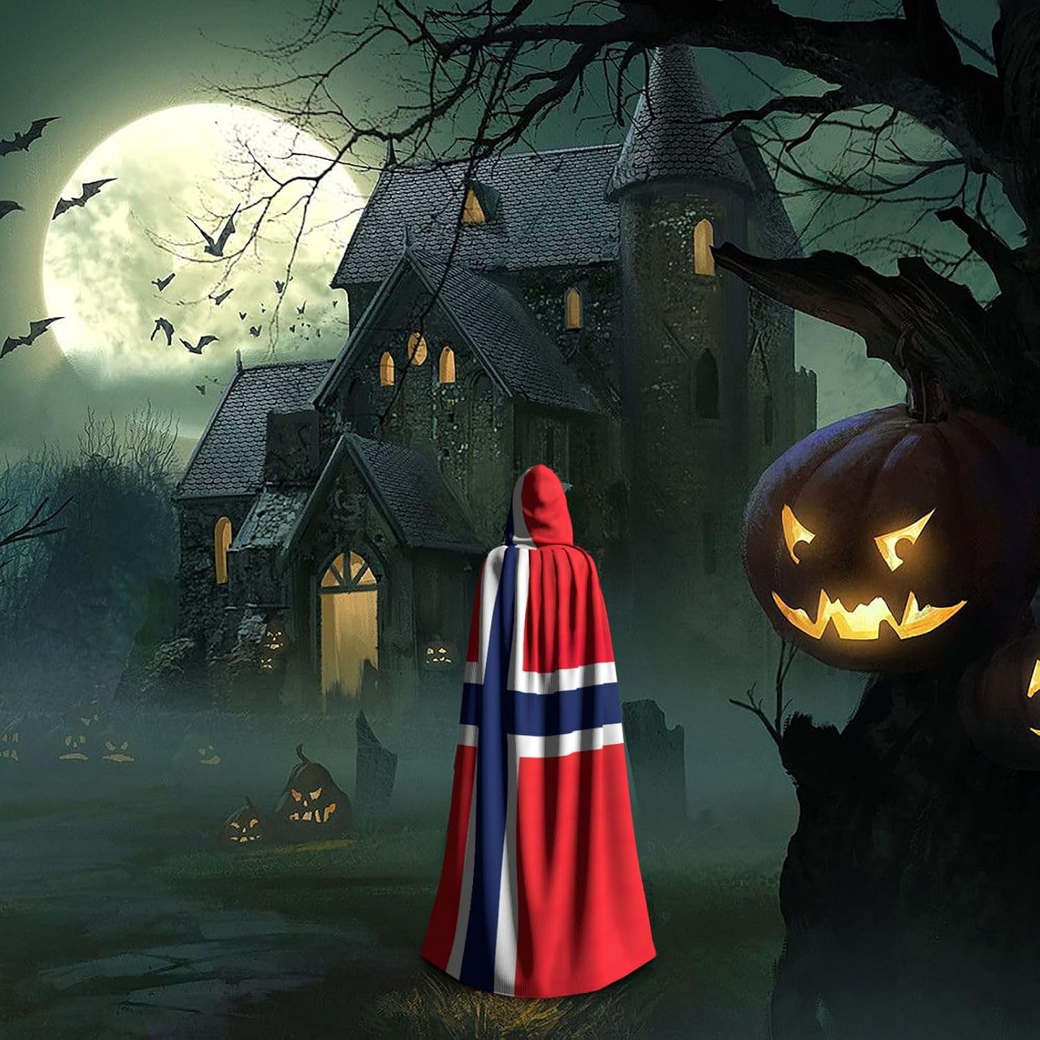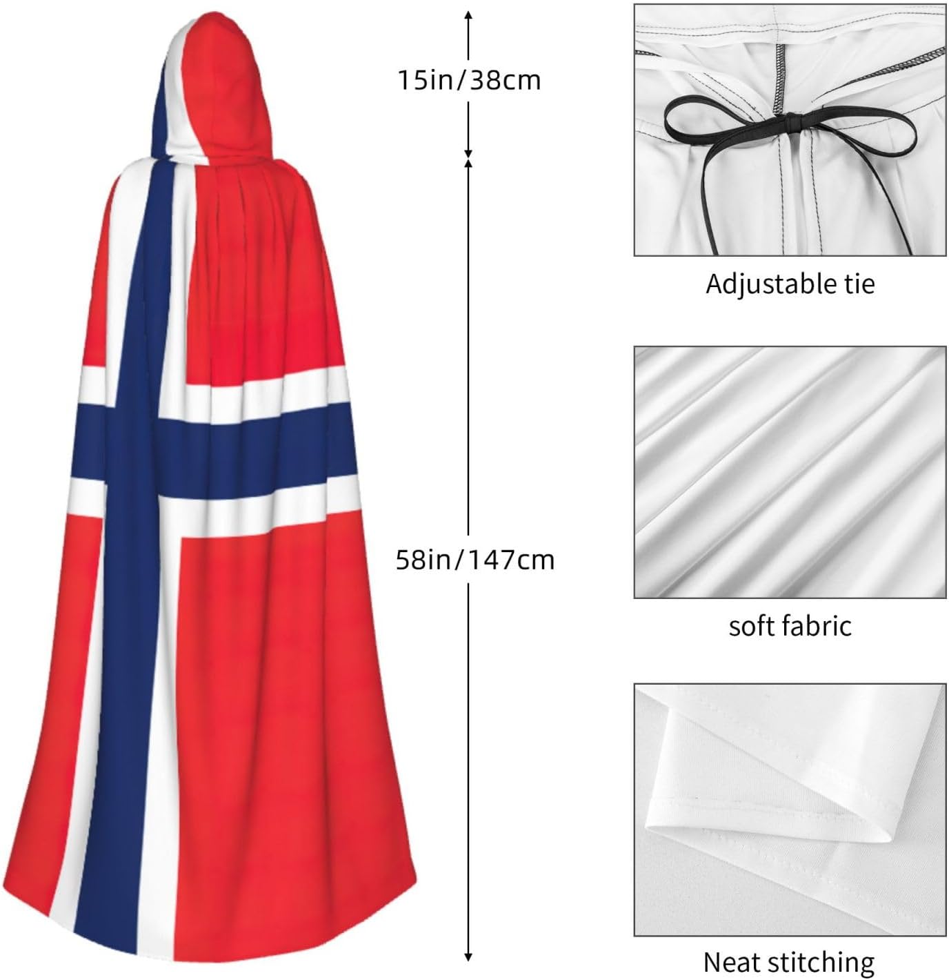 Realizzato in poliestere, questo mantello con stampa bandiera norvegese con cappuccio garantisce longevità e comfort. Le sue dimensioni ottimali assicurano una copertura completa per tutte le età, facendoti risaltare in qualsiasi evento. Che tu sia diretto per Halloween, un evento cosplay, un costume da palcoscenico, una festa in maschera, una festa a tema, un ballo o una convention di fumetti, questo mantello è una scelta ideale. Il suo design unico, completo di un grande cappuccio e cravatte collare. Inoltre, puoi dire addio ai metodi di pulizia complicati. Questo mantello con cappuccio con stampa bandiera norvegese è lavabile in lavatrice e a mano, offrendo una cura senza sforzo. Esci con stile e comfort con il nostro mantello con cappuccio, il tuo compagno per tutti gli eventi e le occasioni.