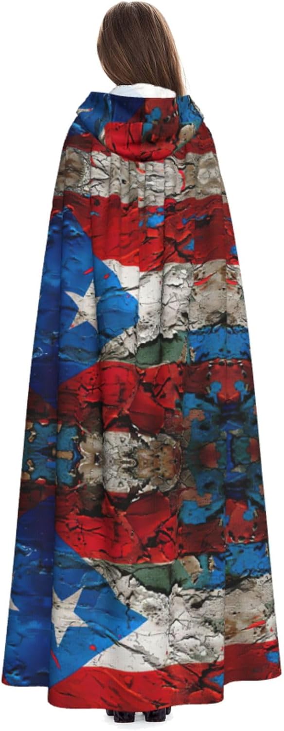 Realizzato in poliestere, questo mantello con stampa bandiera di Porto Rico con cappuccio garantisce longevità e comfort. Le sue dimensioni ottimali assicurano una copertura completa per tutte le età, facendoti risaltare in qualsiasi evento. Che tu sia diretto per Halloween, un evento cosplay, un costume da palcoscenico, una festa in maschera, una festa a tema, un ballo o una convention di fumetti, questo mantello è una scelta ideale. Il suo design unico, completo di un grande cappuccio e cravatte collare. Inoltre, puoi dire addio ai metodi di pulizia complicati. Questo mantello con cappuccio con stampa bandiera di Porto Rico è lavabile in lavatrice e a mano, offrendo una cura senza sforzo. Esci con stile e comfort con il nostro mantello con cappuccio, il tuo compagno per tutti gli eventi e le occasioni.