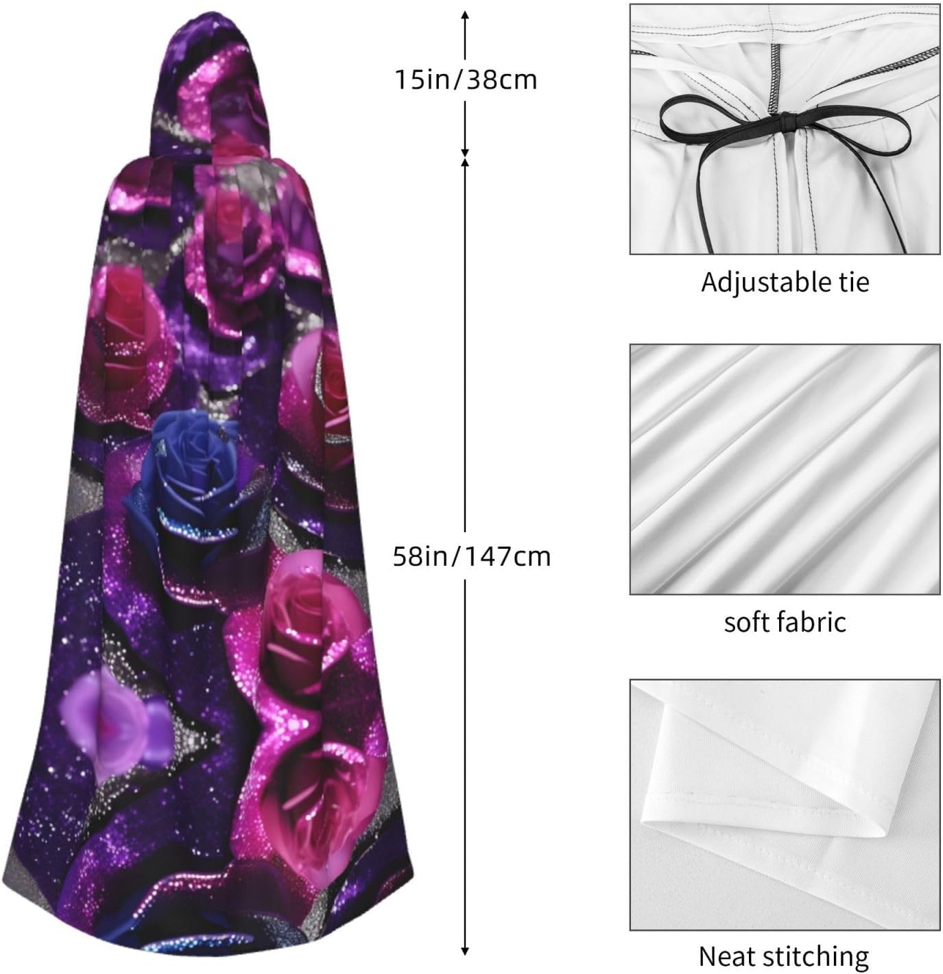 Realizzato in poliestere, questo mantello con paillettes glitterate con stampa di rose con cappuccio garantisce longevità e comfort. Le sue dimensioni ottimali assicurano una copertura completa per tutte le età, facendoti risaltare in qualsiasi evento. Che tu sia diretto per Halloween, un evento cosplay, un costume da palcoscenico, una festa in maschera, una festa a tema, un ballo o una convention di fumetti, questo mantello è una scelta ideale. Il suo design unico, completo di un grande cappuccio e cravatte collare. Inoltre, puoi dire addio ai metodi di pulizia complicati. Questo mantello con cappuccio con stampa di rose glitterate è lavabile in lavatrice e a mano, offrendo una cura senza sforzo. Esci con stile e comfort con il nostro mantello con cappuccio, il tuo compagno per tutti gli eventi e le occasioni.