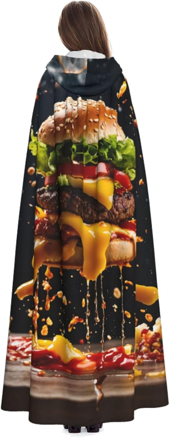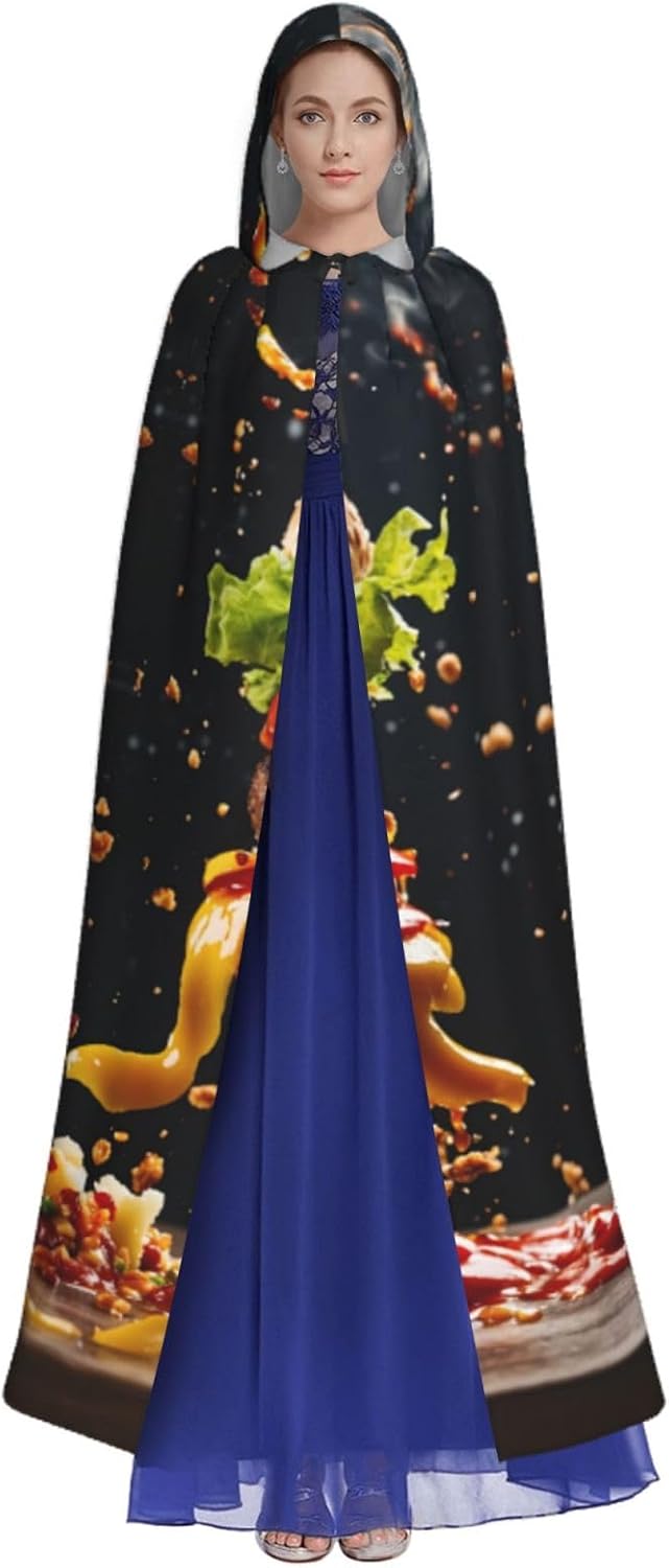 Realizzato in poliestere, questo mantello con stampa fast food con cappuccio garantisce longevità e comfort. Le sue dimensioni ottimali assicurano una copertura completa per tutte le età, facendoti risaltare in qualsiasi evento. Che tu sia diretto per Halloween, un evento cosplay, un costume da palcoscenico, una festa in maschera, una festa a tema, un ballo o una convention di fumetti, questo mantello è una scelta ideale. Il suo design unico, completo di un grande cappuccio e cravatte collare. Inoltre, puoi dire addio ai metodi di pulizia complicati. Questo mantello con cappuccio con stampa fast food è lavabile in lavatrice e a mano, offrendo una cura senza sforzo. Esci con stile e comfort con il nostro mantello con cappuccio, il tuo compagno per tutti gli eventi e le occasioni.