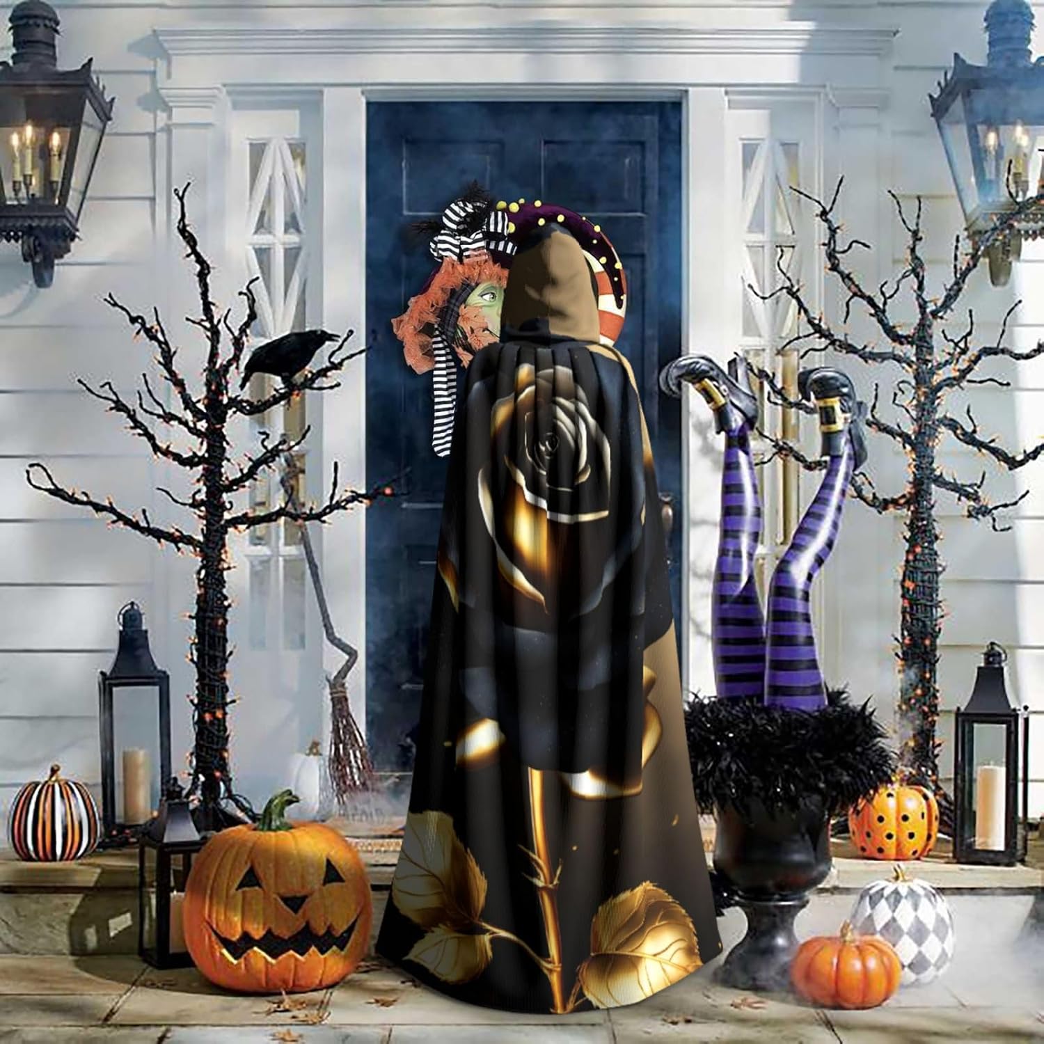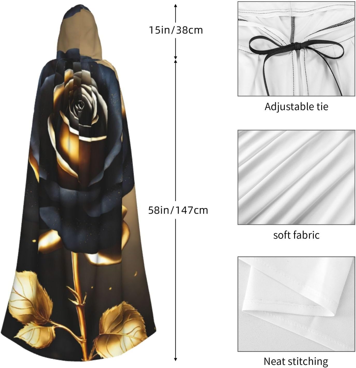 Realizzato in poliestere, questo mantello con stampa a fiori neri e oro con cappuccio garantisce longevità e comfort. Le sue dimensioni ottimali assicurano una copertura completa per tutte le età, facendoti risaltare in qualsiasi evento. Che tu sia diretto per Halloween, un evento cosplay, un costume da palcoscenico, una festa in maschera, una festa a tema, un ballo o una convention di fumetti, questo mantello è una scelta ideale. Il suo design unico, completo di un grande cappuccio e cravatte collare. Inoltre, puoi dire addio ai metodi di pulizia complicati. Questo mantello con cappuccio con stampa floreale nero e oro è lavabile in lavatrice e a mano, offrendo una cura senza sforzo. Esci con stile e comfort con il nostro mantello con cappuccio, il tuo compagno per tutti gli eventi e le occasioni.