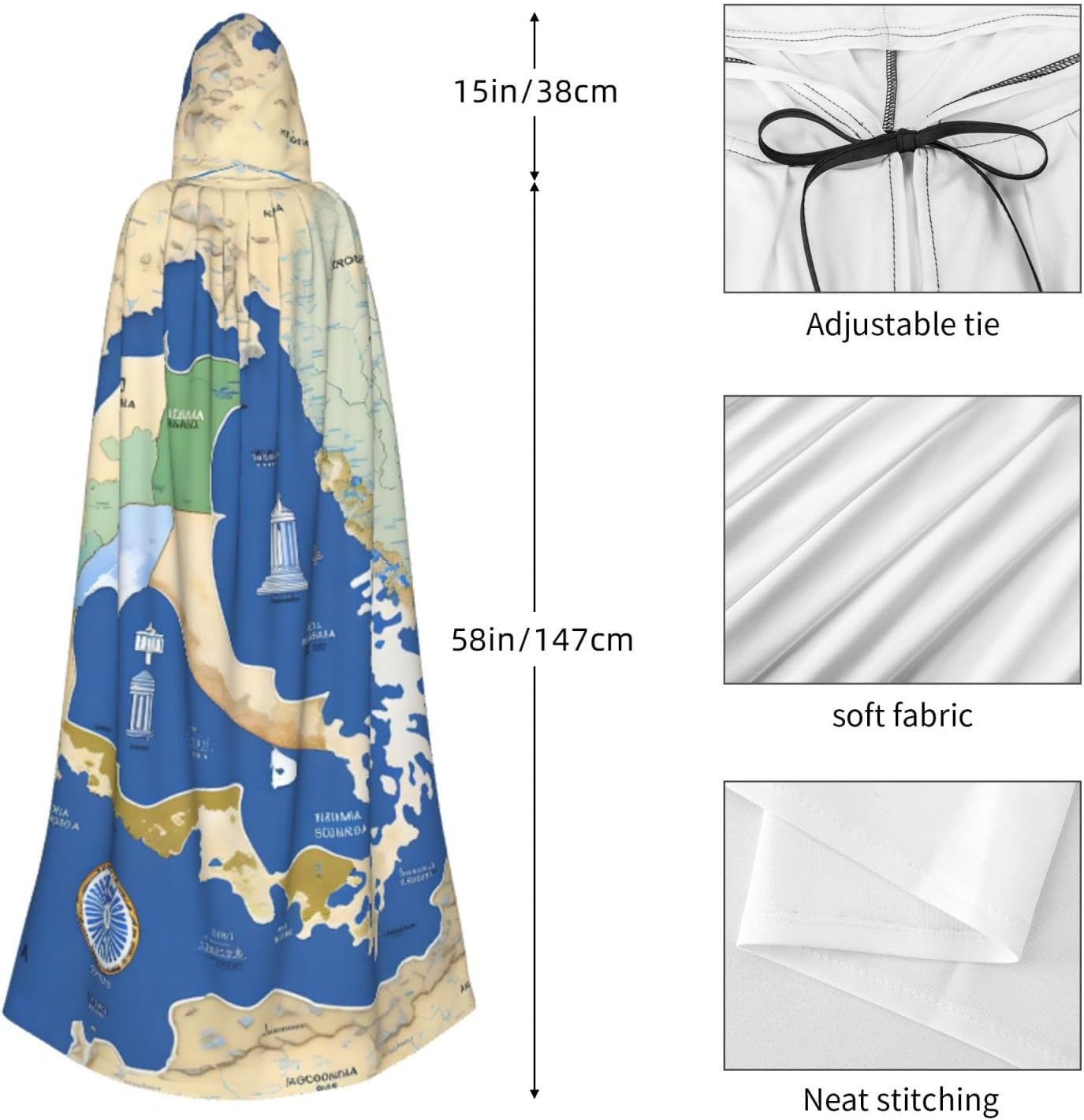 Realizzato in poliestere, questo mantello con stampa della mappa della Grecia con cappuccio garantisce longevità e comfort. Le sue dimensioni ottimali assicurano una copertura completa per tutte le età, facendoti risaltare in qualsiasi evento. Che tu sia diretto per Halloween, un evento cosplay, un costume da palcoscenico, una festa in maschera, una festa a tema, un ballo o una convention di fumetti, questo mantello è una scelta ideale. Il suo design unico, completo di un grande cappuccio e cravatte collare. Inoltre, puoi dire addio ai metodi di pulizia complicati. Questo mantello con cappuccio con stampa della mappa della Grecia è lavabile in lavatrice e a mano, offrendo una cura senza sforzo. Esci con stile e comfort con il nostro mantello con cappuccio, il tuo compagno per tutti gli eventi e le occasioni.