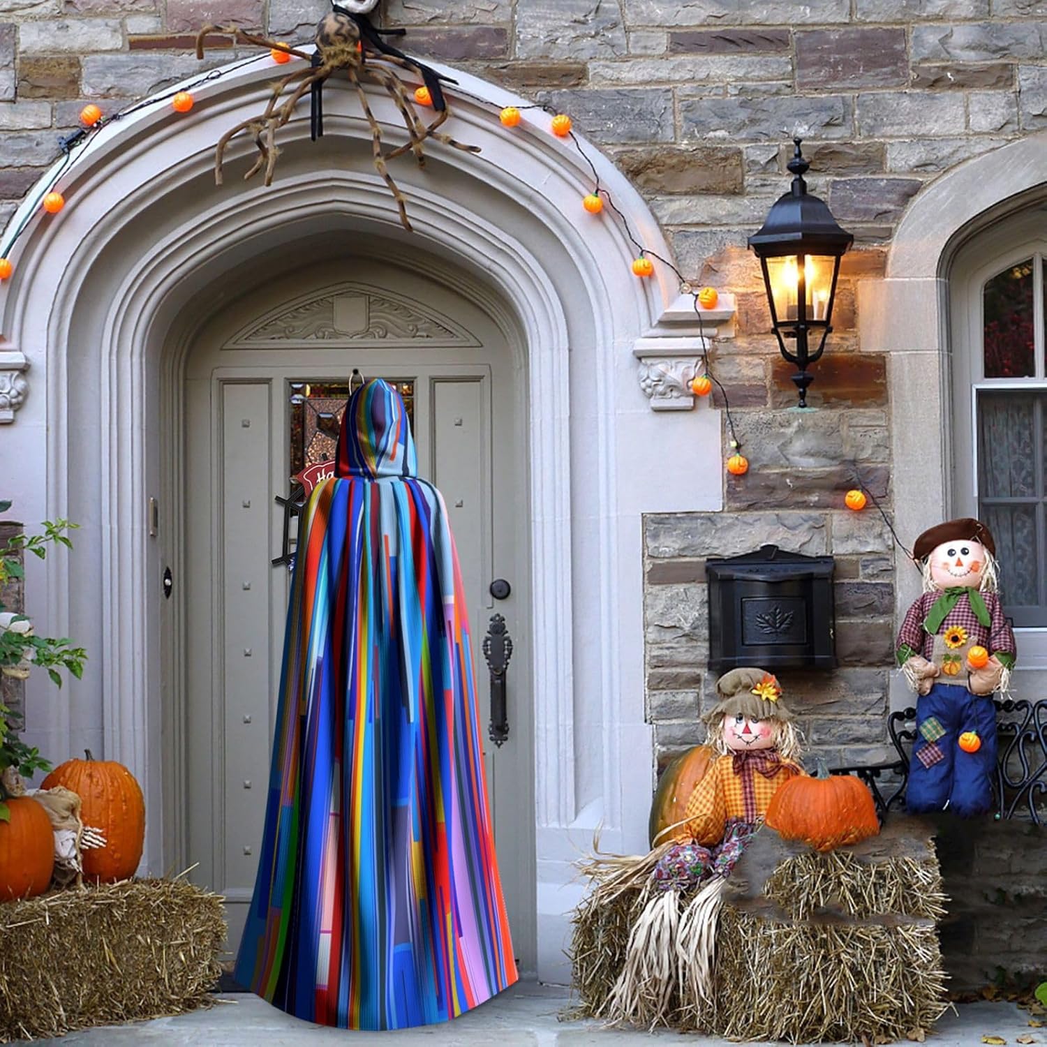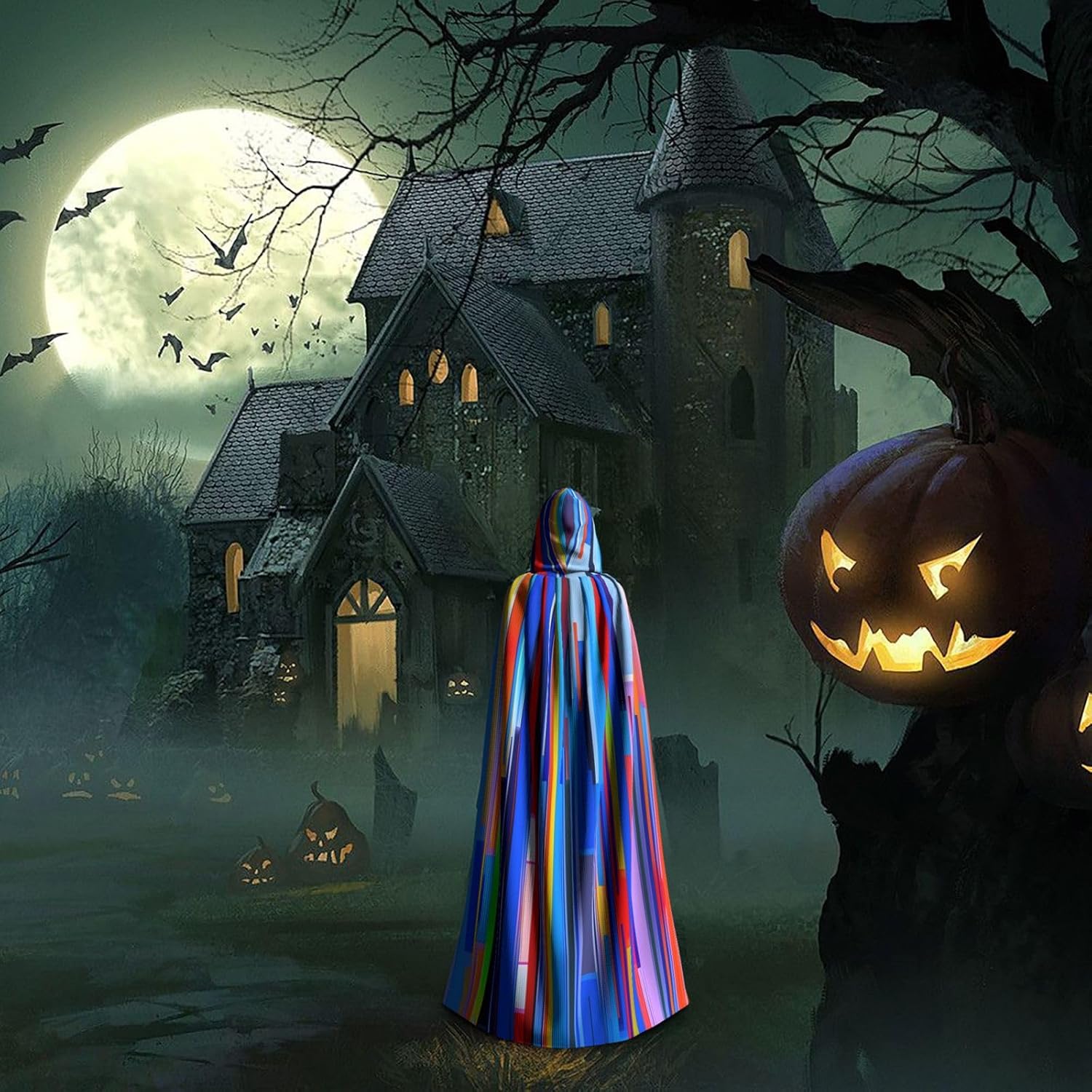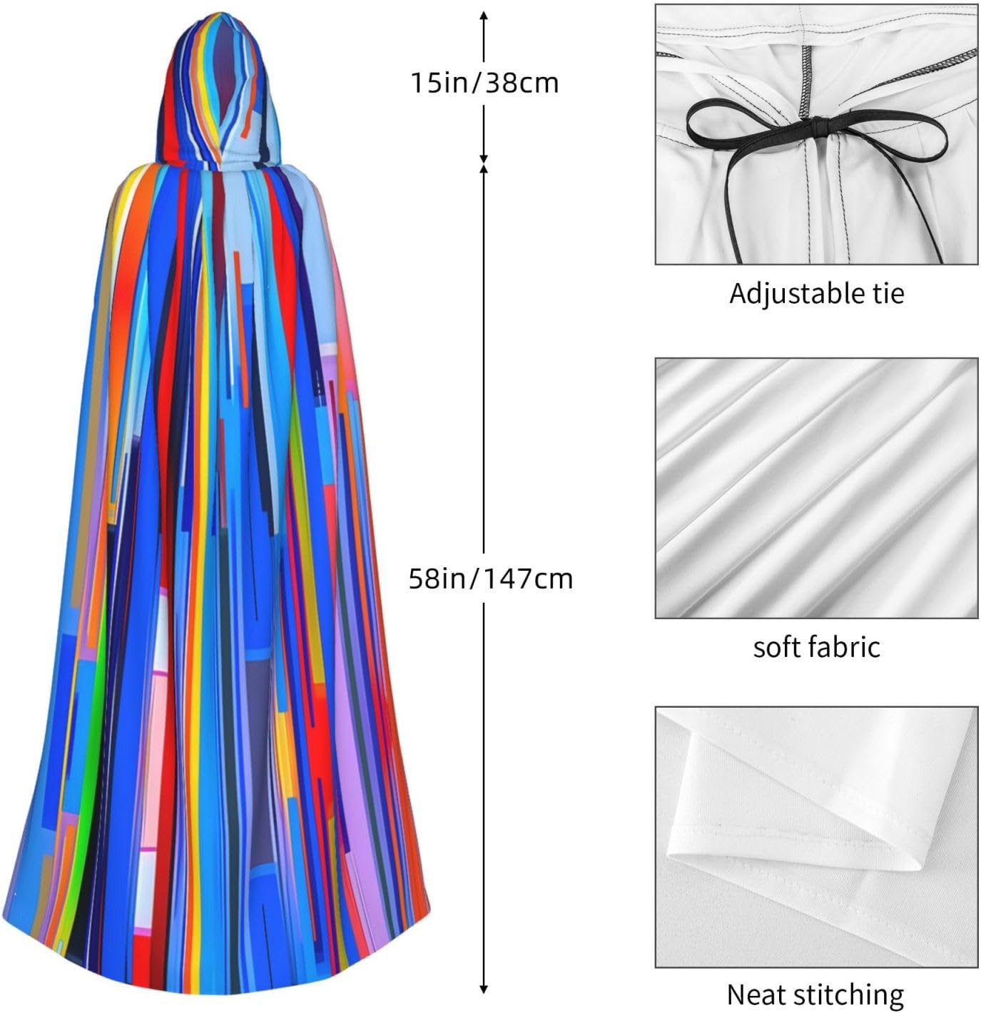 Mantello con cappuccio verticale per Halloween per adulti con mantello con cappuccio oversize, è con papillon, senza cerniera, adatto per Halloween, costumi cosplay, costumi da palco, mascherata, feste a tema, balli, fumetti, ecc. Può essere utilizzato per feste, martedì grasso, Halloween, feste in costume e molto altro ancora.