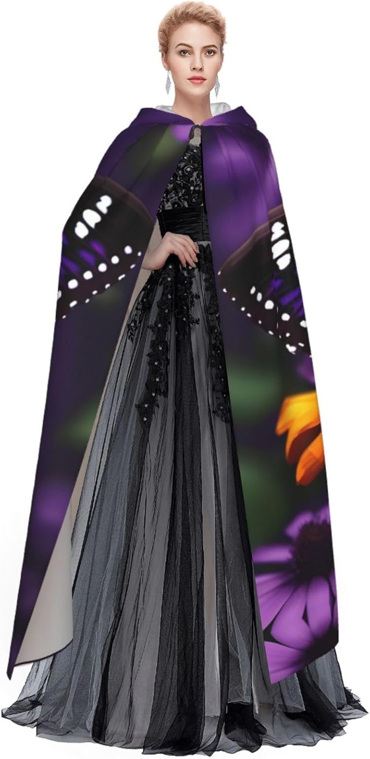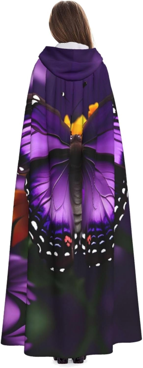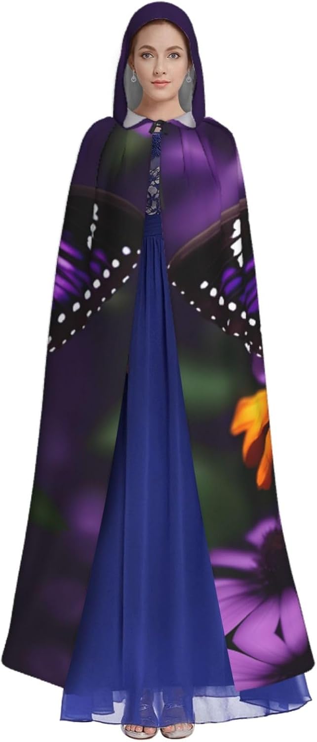 Mantello con cappuccio viola farfalla e fiore unisex Halloween Natale mantello vampiro mago vestaglia costume cosplay