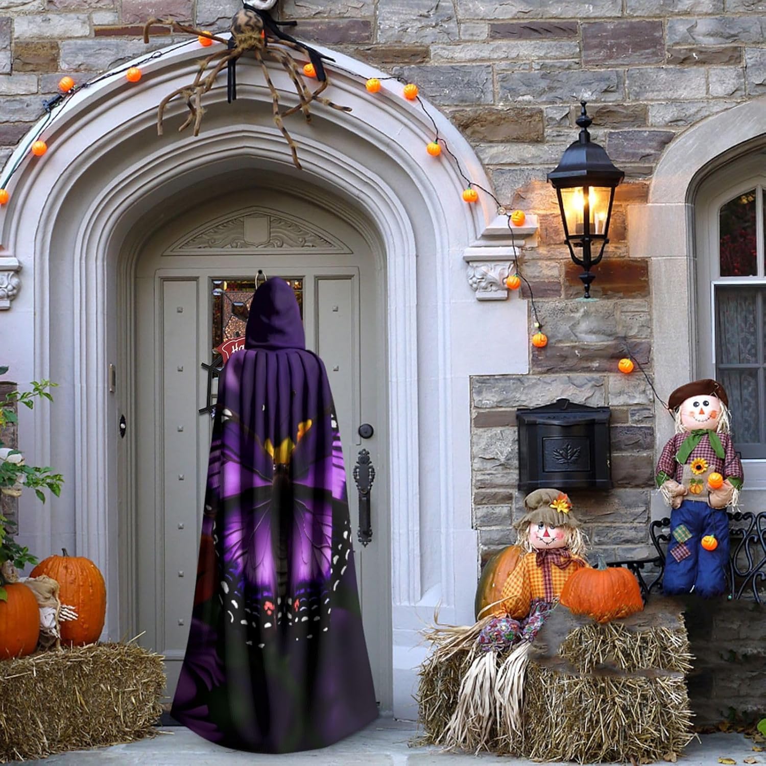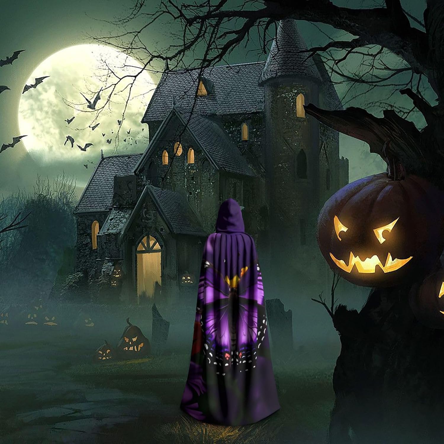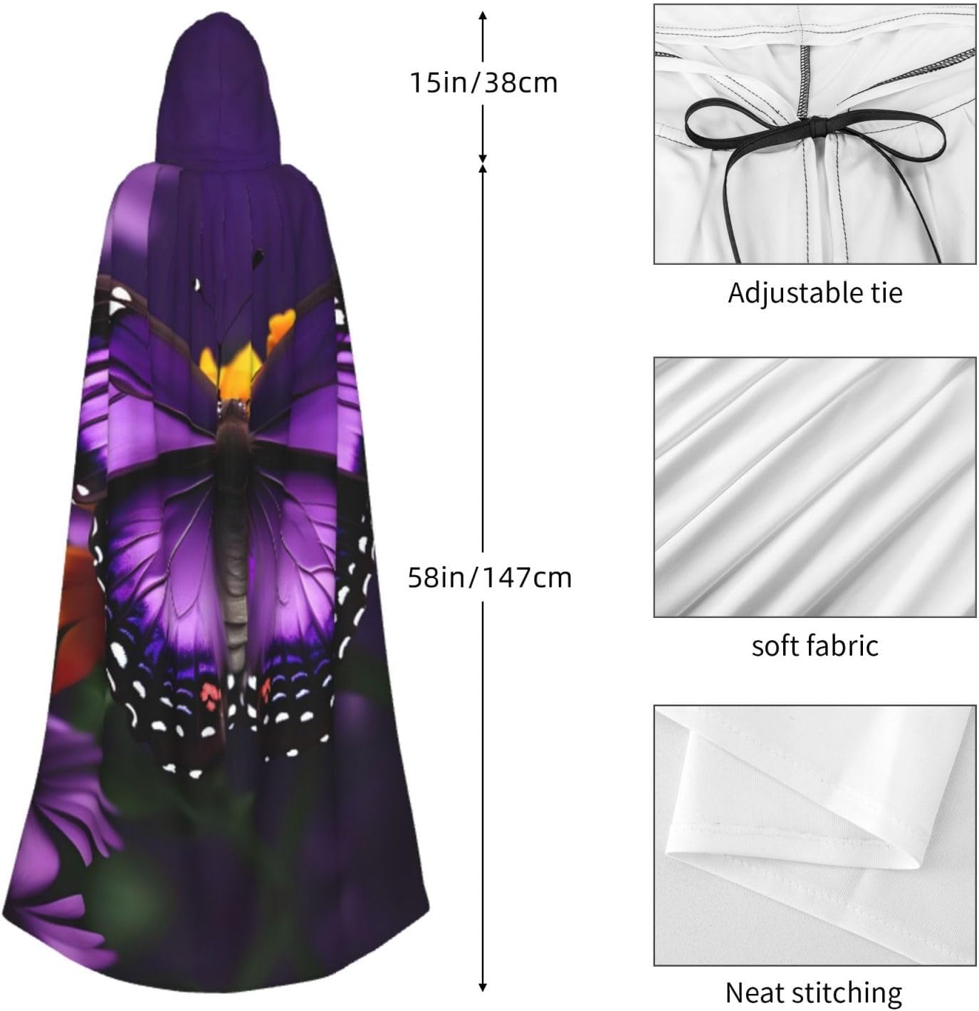 Mantello con cappuccio viola farfalla e fiore unisex Halloween Natale mantello vampiro mago vestaglia costume cosplay