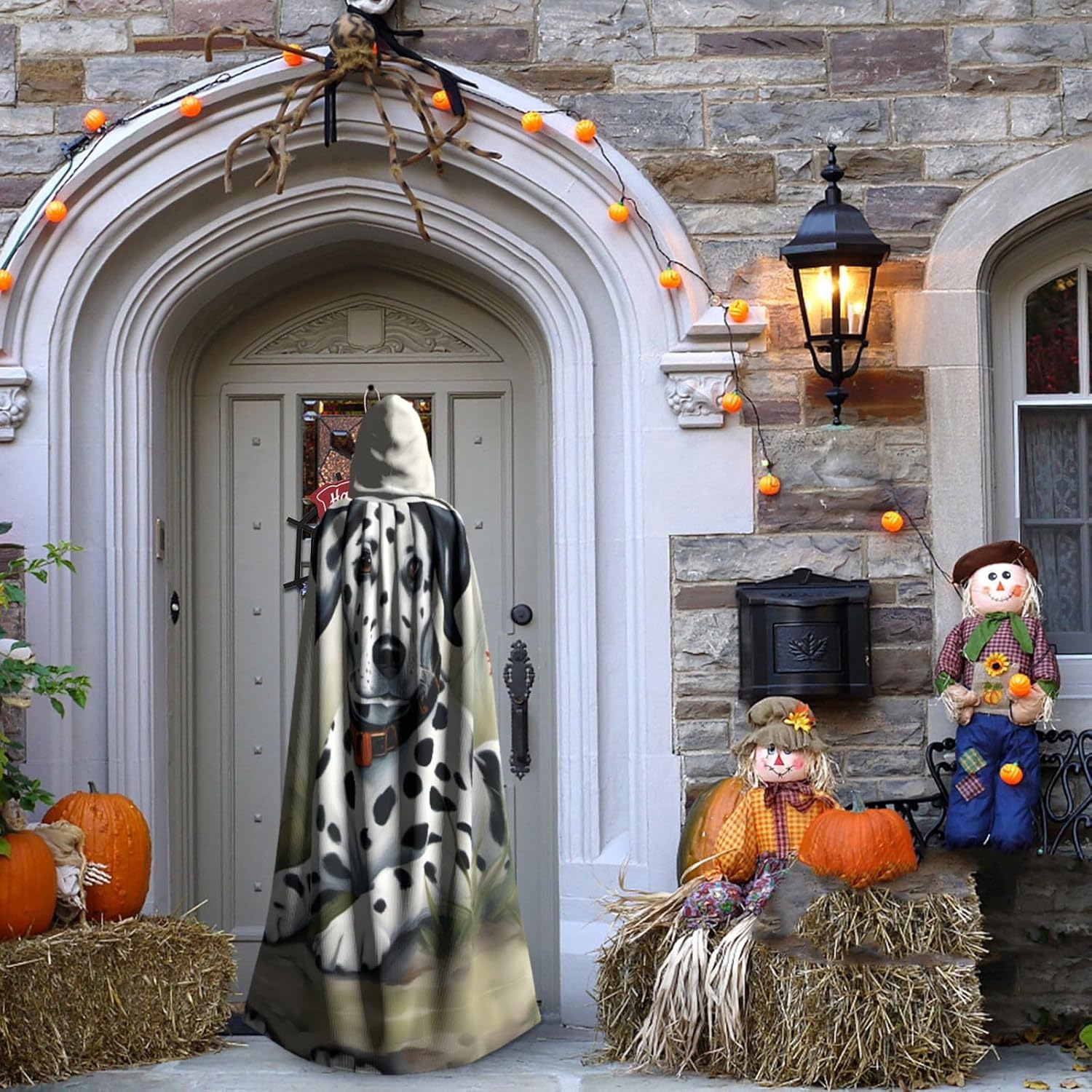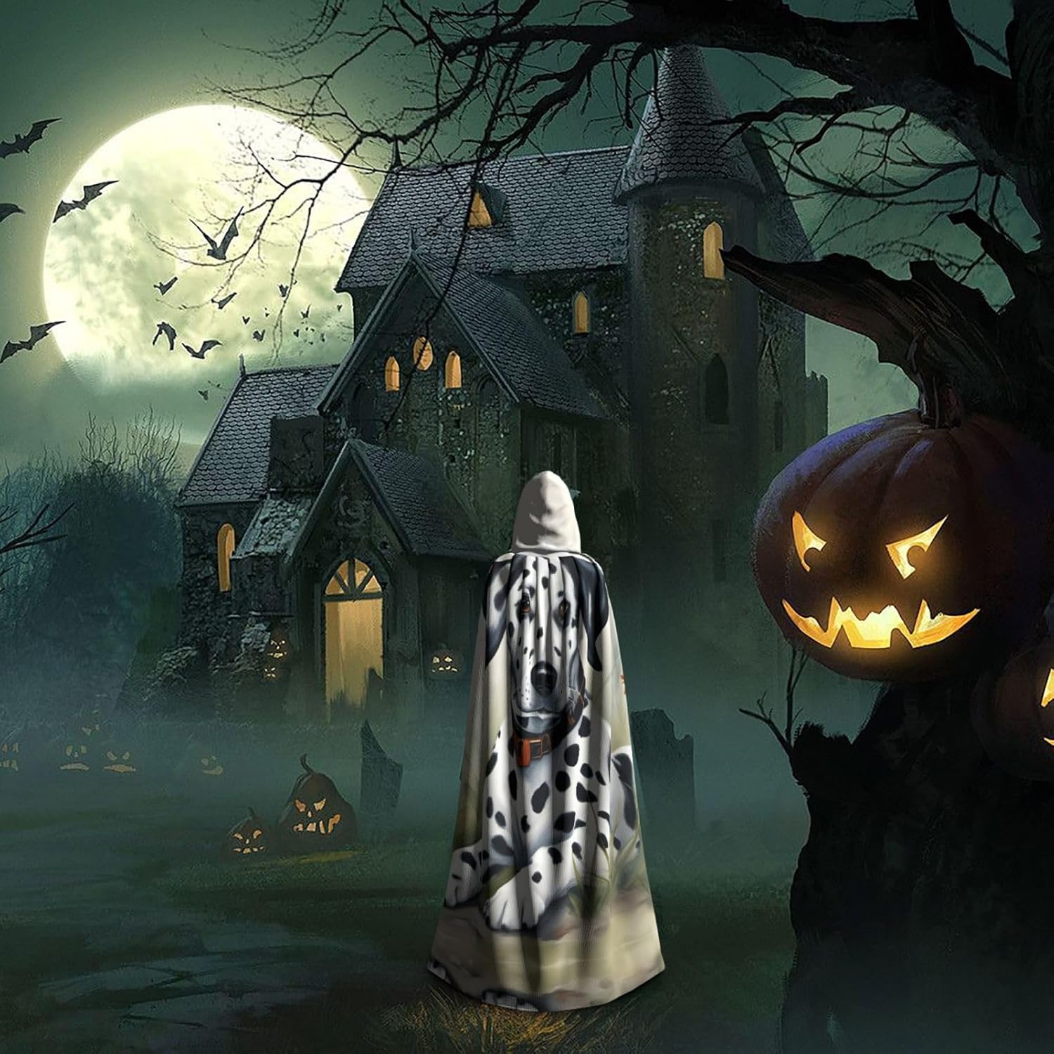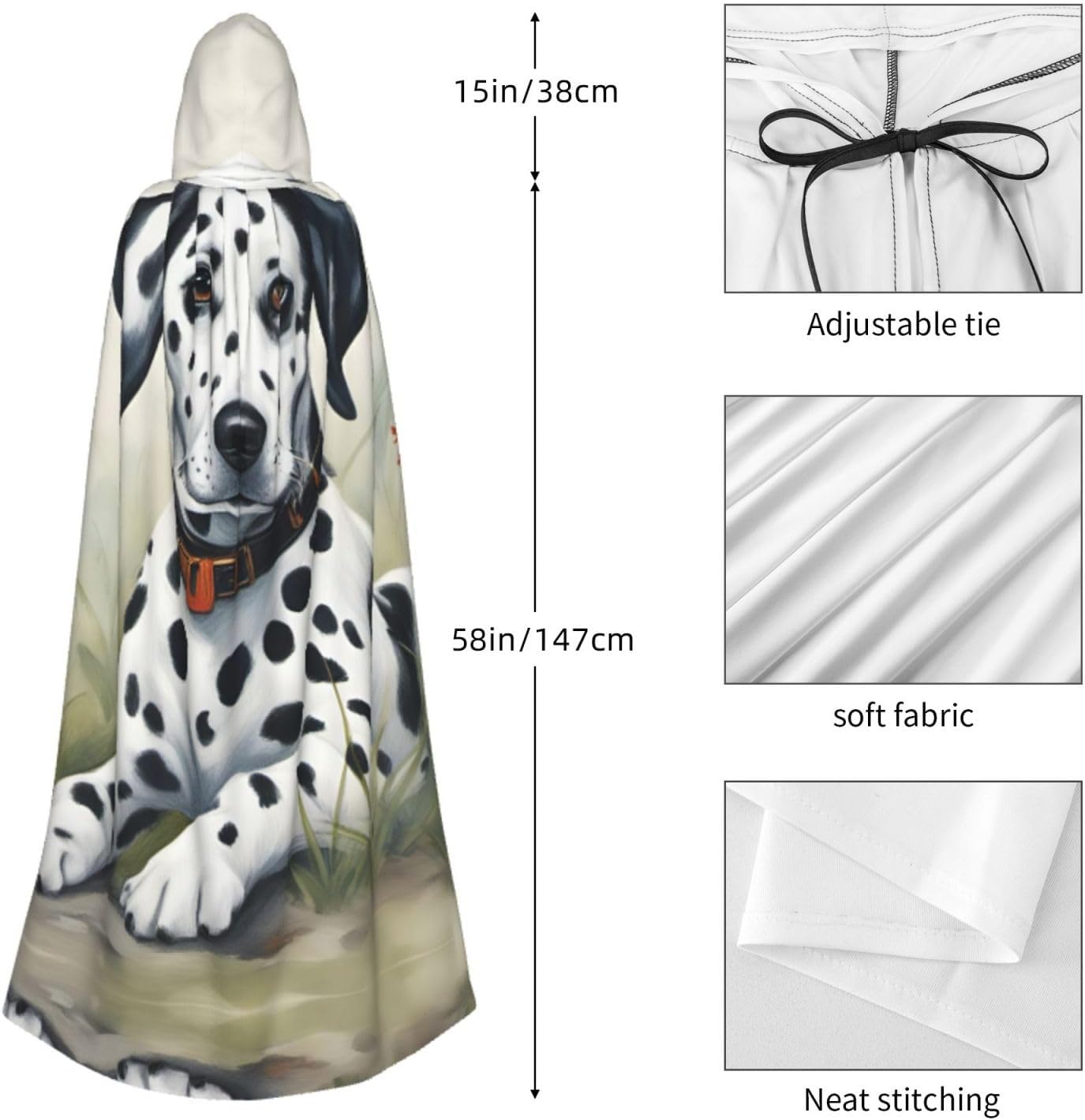 Mantello da dalmata con cappuccio, unisex, per Halloween, Natale, vampiro, stregone, costume cosplay