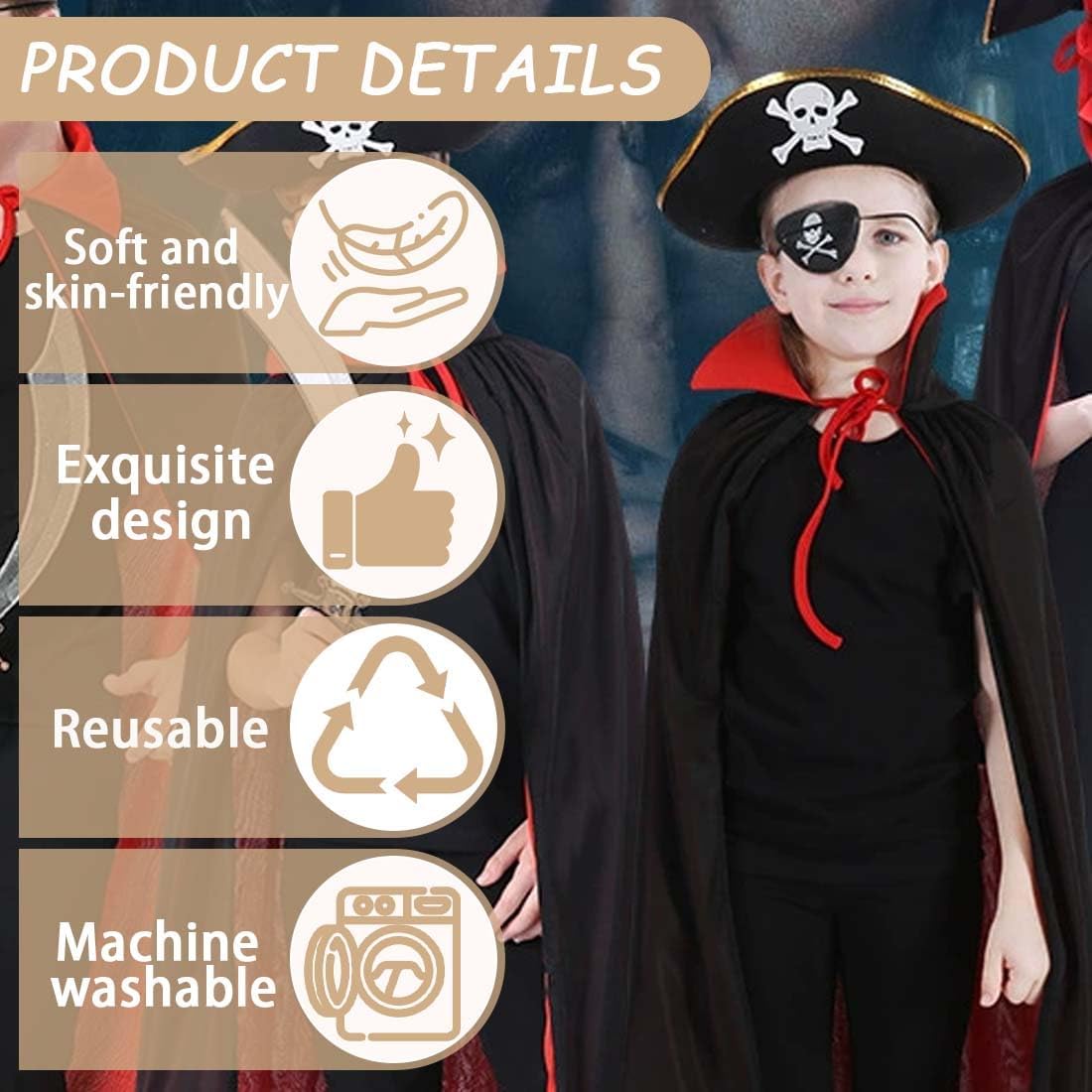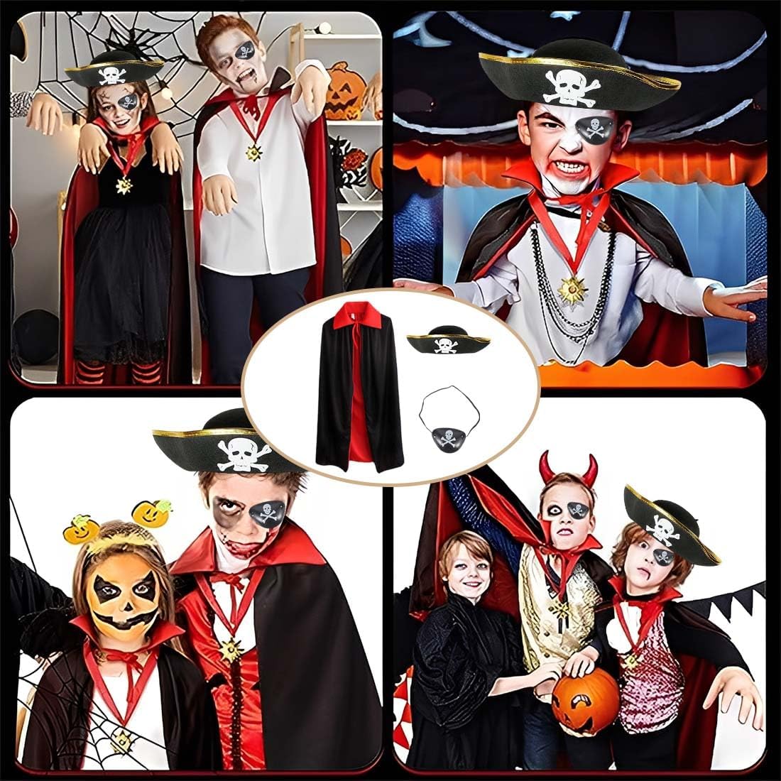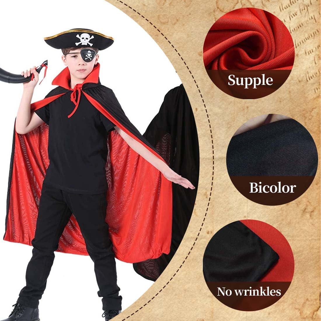 [Tessuto di alta qualità] Questo mantello di Halloween è realizzato in tessuto a maglia di alta qualità, morbido, traspirante e confortevole. [Contenuto del set] Questo set di mantelli da diavolo include un mantello da diavolo da 90 cm, un cappello e una maschera per gli occhi, adatti a persone di altezza compresa tra 90 cm e 140 cm. [Design unico] Questo mantello presenta un design double-face con colletto rialzato e laccio per una maggiore resistenza. Lo strato esterno è nero e quello interno è rosso, rendendolo reversibile per una varietà di look. [Occasioni adatte] Questo set di mantelli di Halloween è perfetto per Halloween, feste in maschera, spettacoli teatrali, feste di compleanno, cosplay e altre occasioni. Ti distinguerà dalla massa e ti metterà al centro dell'attenzione. [Regalo perfetto] Regala questo mantello alla tua migliore amica. Indossarlo con le tue amiche ti renderà la ragazza più bella o il ragazzo più bello del mondo.