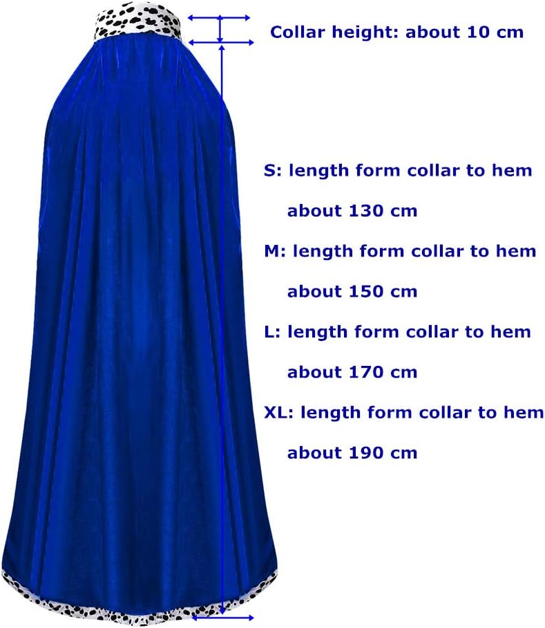 VELLUTO DI ALTA QUALITÀ: il mantello è realizzato in un tessuto di velluto molto bello e morbido. Il velluto è sottile e un po 'trasparente quando lo guardi alla luce, ma quando indossato è completamente opaco e ti tiene caldo. LUNGHEZZA CADUTA AL TERRENO: vedere le dimensioni nelle immagini per riferimento. Se preferisci un mantello che cade sul pavimento, scegli la dimensione consigliata nella tabella delle taglie. Se preferisci un mantello al ginocchio, puoi scegliere la taglia più piccola consigliata. ADATTO AL GIOCO PIÙ DI RUOLO: il miglior costume per re, principe, regina e altro ancora. Ideale per la Giornata mondiale del libro, il Carnevale, Halloween, Natale, un ballo in maschera, le vacanze e così via. LAVABILE SENZA DIFORMA: il lavaggio a mano e il mantello sembrano sempre uguali e si sentono meglio. IMBALLAGGIO DEL MARCHIO "Proumhang": Si prega di notare che tutti i nostri capi saranno sempre consegnati nella confezione del marchio "Proumhang".