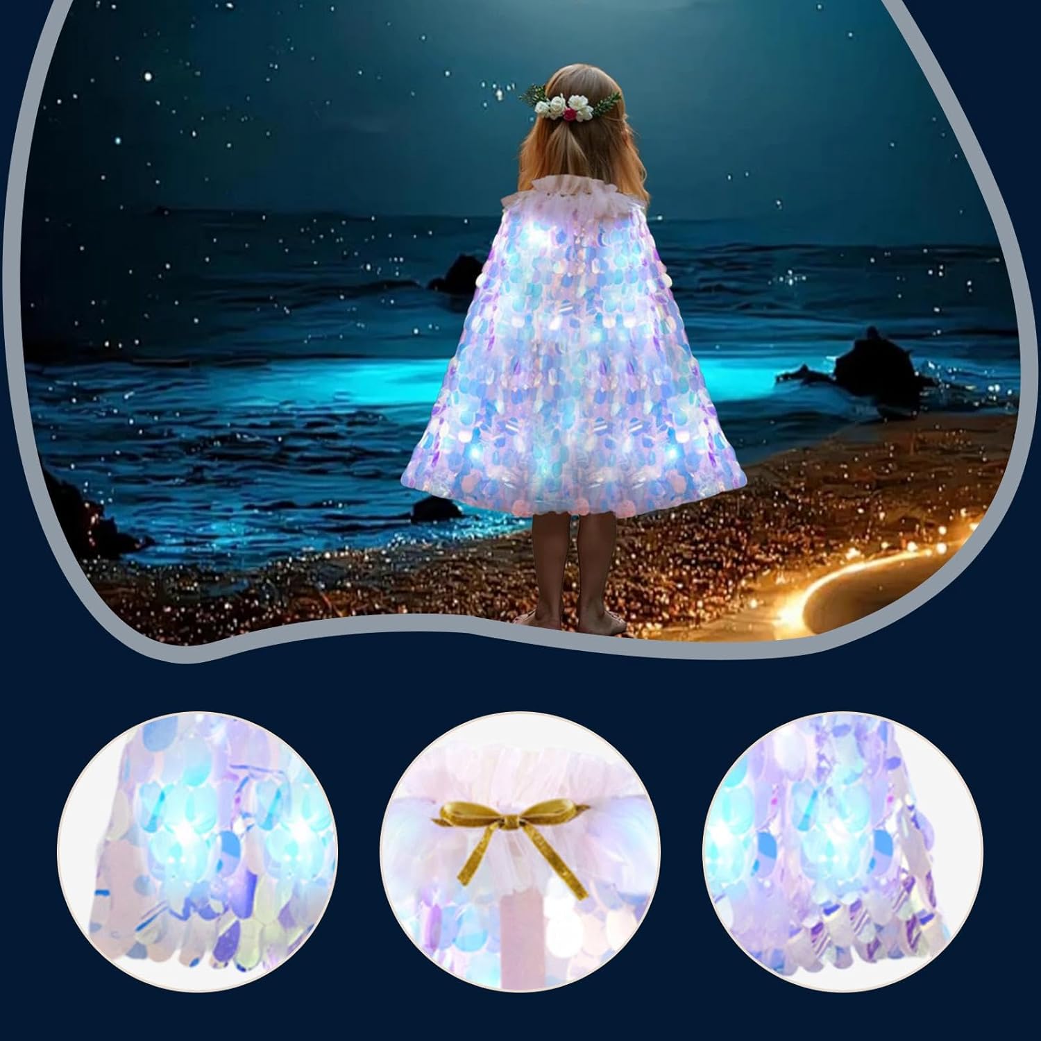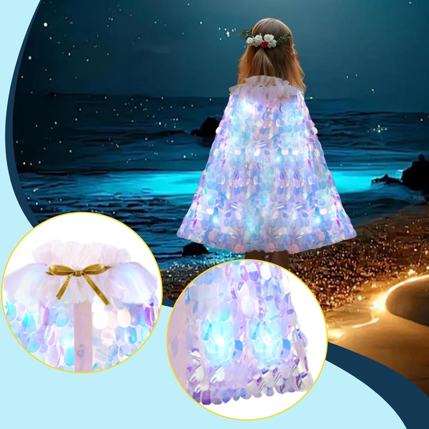 【Adatto alla maggior parte dei bambini】: il mantello in tulle presenta un design regolabile con una lunghezza di 70 cm/27,56 pollici, rendendolo adatto a bambini dai 3 ai 10 anni e versatile 【Costume con luci a LED】: il mantello da principessa presenta un motivo a scaglie scintillanti e luci a LED scintillanti, creando un bagliore accattivante per feste ed eventi 【Materiale morbido e confortevole】: il costume da cosplay è realizzato in rete morbida, confortevole e leggera, che consente un comodo utilizzo per tutto il giorno 【Facilmente abbinabile】: accessori per costumi si sovrappongono facilmente a vestiti o abiti per una trasformazione immediata 【Ideale per le vacanze】: il mantello da principessa per ragazze è perfetto per Halloween, Natale, feste di compleanno o come principessa sirena, aggiungendo un tocco di fantasia a qualsiasi occasione
