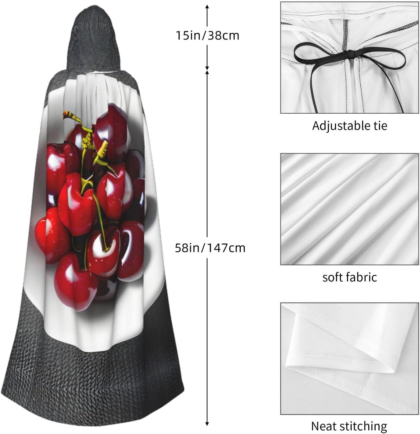 Entra nel mondo della fantasia e dell'avventura con il nostro elegante mantello da donna. Realizzato in fibra di poliestere di alta qualità, questo mantello offre una vestibilità leggera e confortevole, permettendoti di abbracciare i tuoi personaggi preferiti o personaggi per feste in costume, Halloween, fumetti e molto altro ancora. Dotato di un cappuccio oversize e una chiusura con cravatta, questo mantello non solo aggiunge un elemento di mistero, ma completa anche una vasta gamma di scelte di outfit La costruzione garantisce una lunga durata. Uso duraturo senza alcun fastidio o prurito. Che tu stia partecipando a una festa a tema, una danza o un evento cosplay, questo versatile mantello è sicuro di fare una dichiarazione. È perfetto per feste di Halloween, convegni di fumetti, spettacoli teatrali, feste in maschera e altre occasioni festive. Lascia che la tua creatività risplenda e immergiti nel mondo della fantasia. Pulire questo mantello è un gioco da ragazzi, Lavabile in lavatrice. Facile da pulire. Il suo design ti consente di godertelo per gli anni a venire, rendendolo una scelta affidabile ed elegante per tutte le tue esigenze di abbigliamento. Sperimenta l'incanto e il fascino del nostro elegante mantello da donna e diventa al centro dell'attenzione in ogni evento. Migliora il tuo gioco di costumi e crea ricordi indimenticabili con questo accessorio indispensabile. Abbraccia la tua immaginazione e intraprendi un viaggio straordinario oggi!