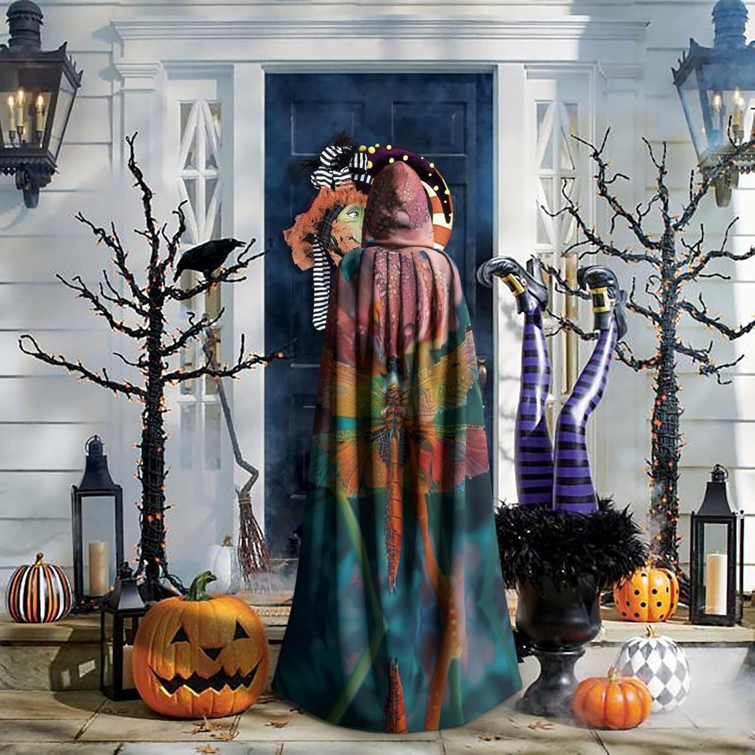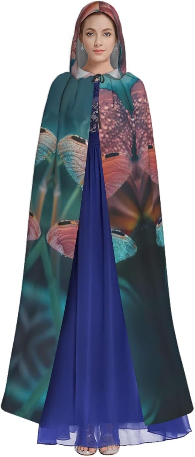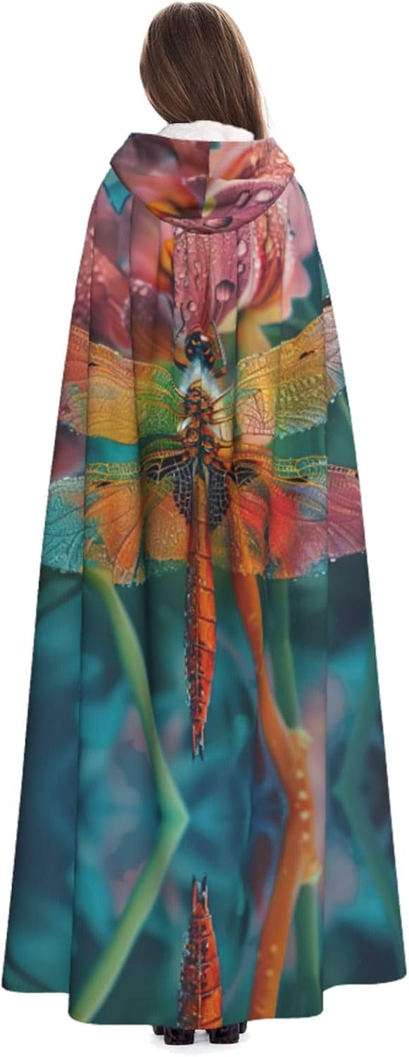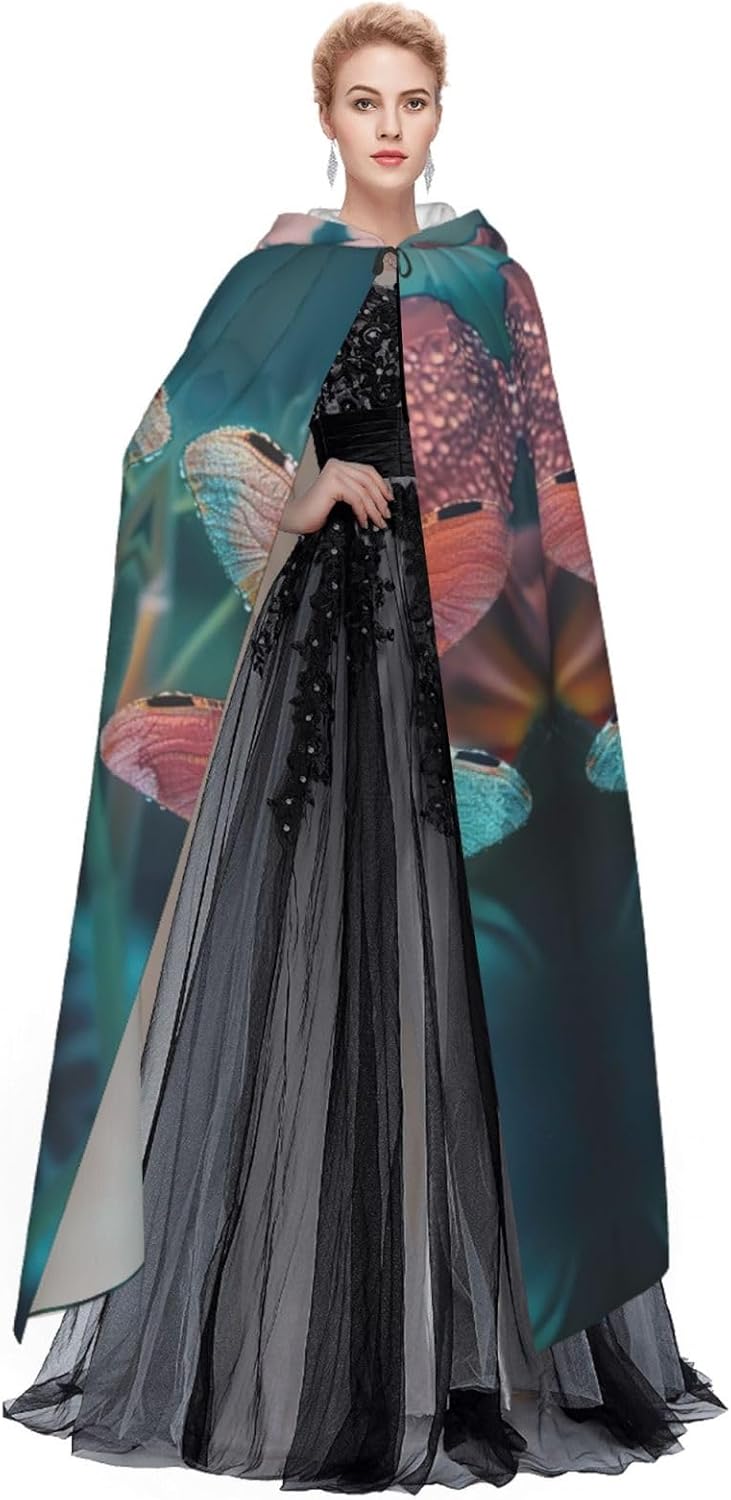 Mantello da strega con libellula e fiore con cappuccio mantello medievale per Halloween mantello da mago mantello nero per adulti