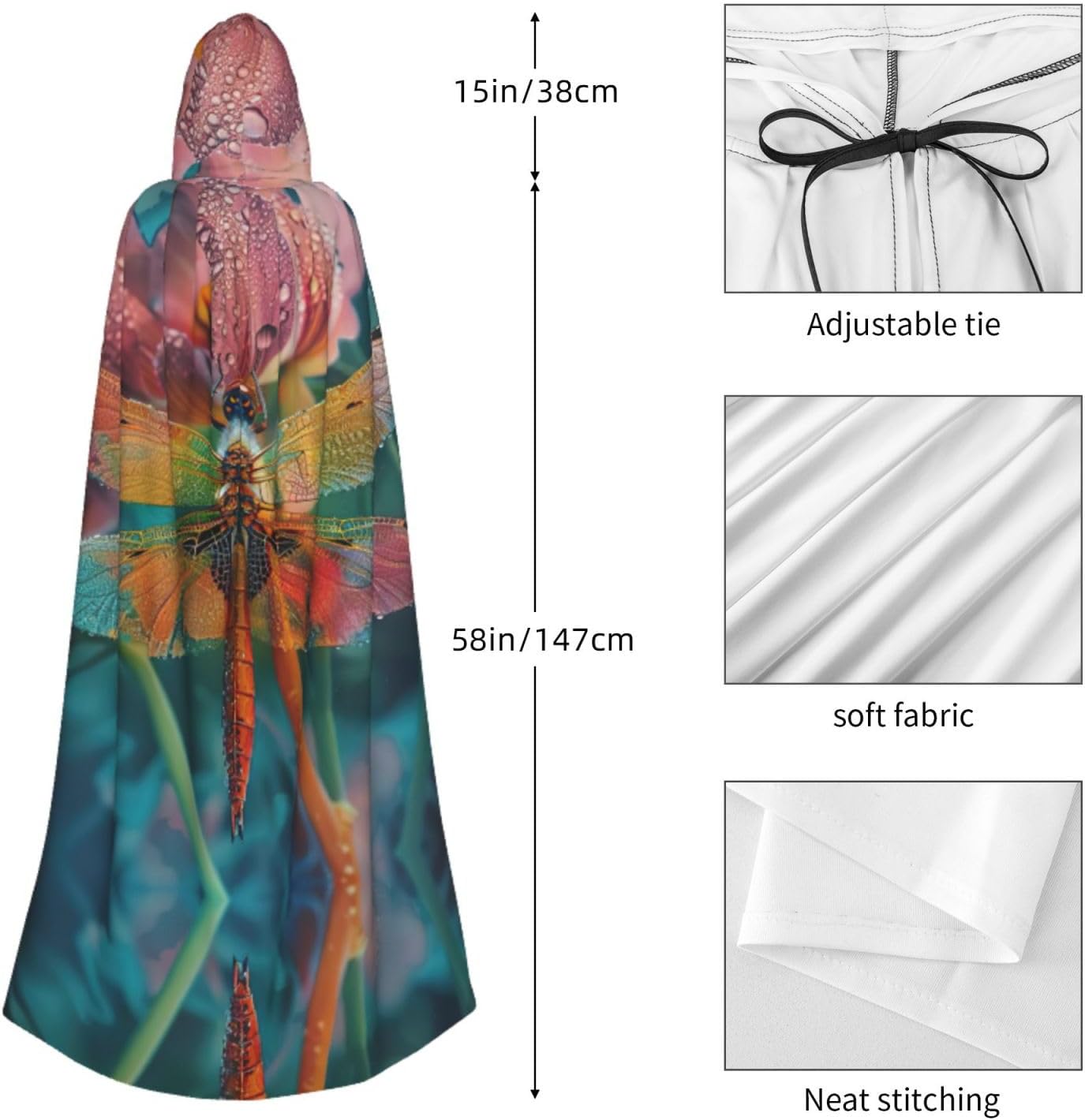 Entra nel mondo della fantasia e dell'avventura con il nostro elegante mantello da donna. Realizzato in fibra di poliestere di alta qualità, questo mantello offre una vestibilità leggera e confortevole, permettendoti di abbracciare i tuoi personaggi preferiti o personaggi per feste in costume, Halloween, fumetti e molto altro ancora. Dotato di un cappuccio oversize e una chiusura con cravatta, questo mantello non solo aggiunge un elemento di mistero, ma completa anche una vasta gamma di scelte di outfit La costruzione garantisce una lunga durata. Uso duraturo senza alcun fastidio o prurito. Che tu stia partecipando a una festa a tema, una danza o un evento cosplay, questo versatile mantello è sicuro di fare una dichiarazione. È perfetto per feste di Halloween, convegni di fumetti, spettacoli teatrali, feste in maschera e altre occasioni festive. Lascia che la tua creatività risplenda e immergiti nel mondo della fantasia. Pulire questo mantello è un gioco da ragazzi, Lavabile in lavatrice. Facile da pulire. Il suo design ti consente di godertelo per gli anni a venire, rendendolo una scelta affidabile ed elegante per tutte le tue esigenze di abbigliamento. Sperimenta l'incanto e il fascino del nostro elegante mantello da donna e diventa al centro dell'attenzione in ogni evento. Migliora il tuo gioco di costumi e crea ricordi indimenticabili con questo accessorio indispensabile. Abbraccia la tua immaginazione e intraprendi un viaggio straordinario oggi!