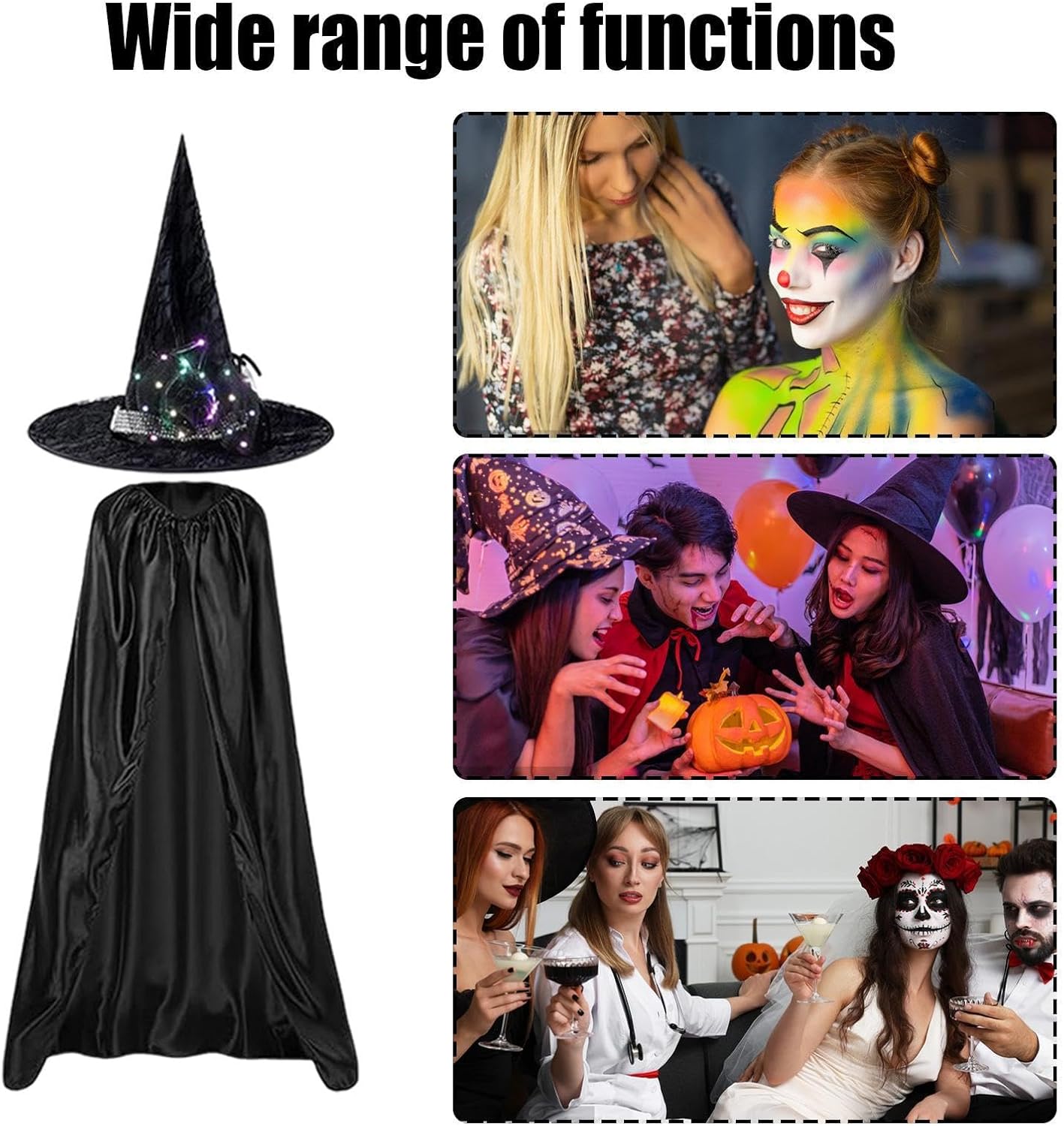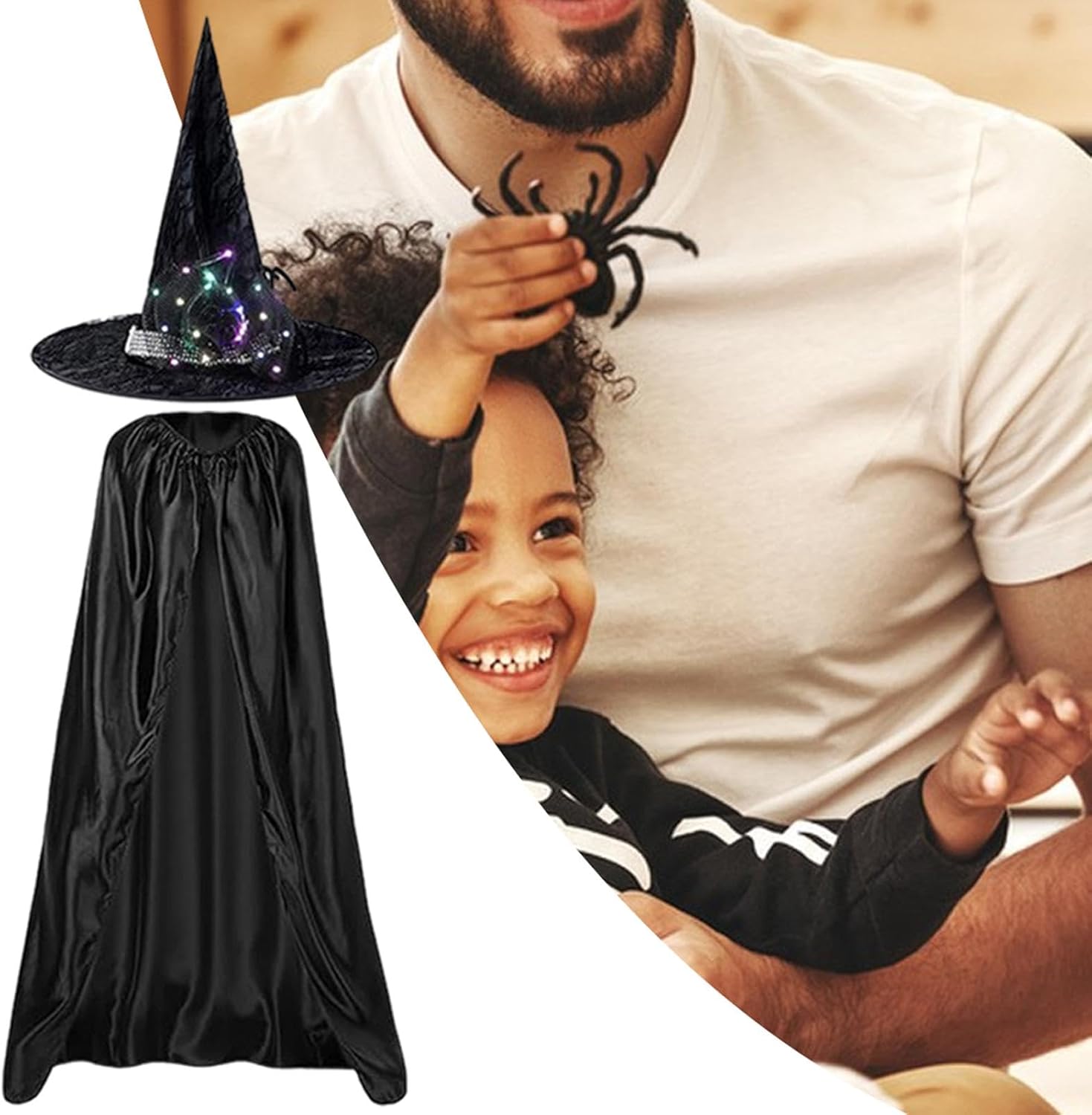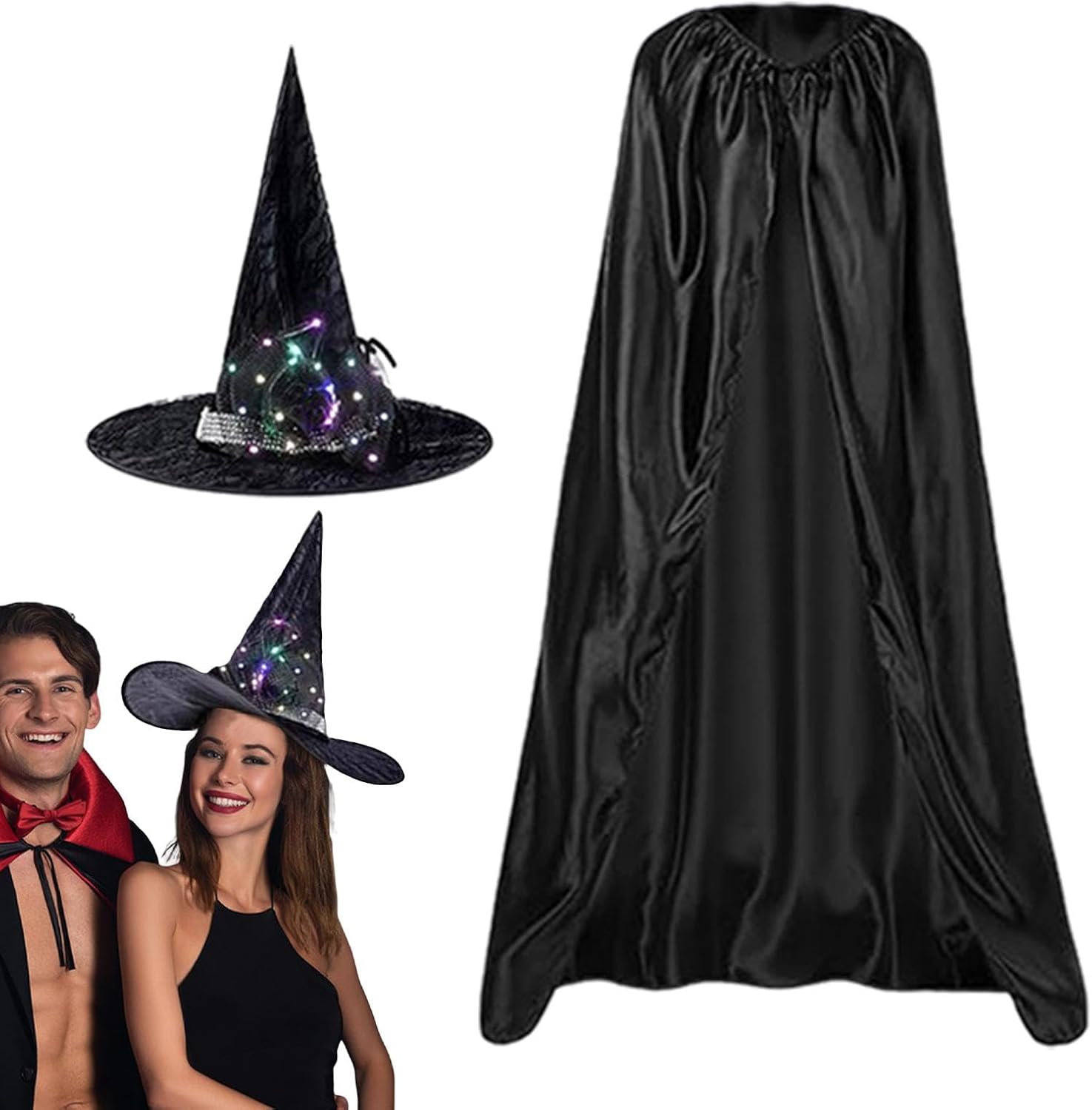Descrizione prodotto Scatena la tua spettrale immaginazione con il nostro Mantello di Halloween! Il tessuto liscio e morbido è comodo da indossare. Il mantello nero si adatta perfettamente a qualsiasi costume per un palcoscenico in maschera. La confezione include un cappello con batteria a bottone per un look ancora più inquietante. Preparatevi a rendere Halloween indimenticabile! Specifica: Materiale: poliestere Dimensioni del mantello: 140 cm/55 pollici Peso: circa 220 g : Mantello del mantello di Halloween *1 Cappello da strega *1 Avviso di sicurezza Non applicabile