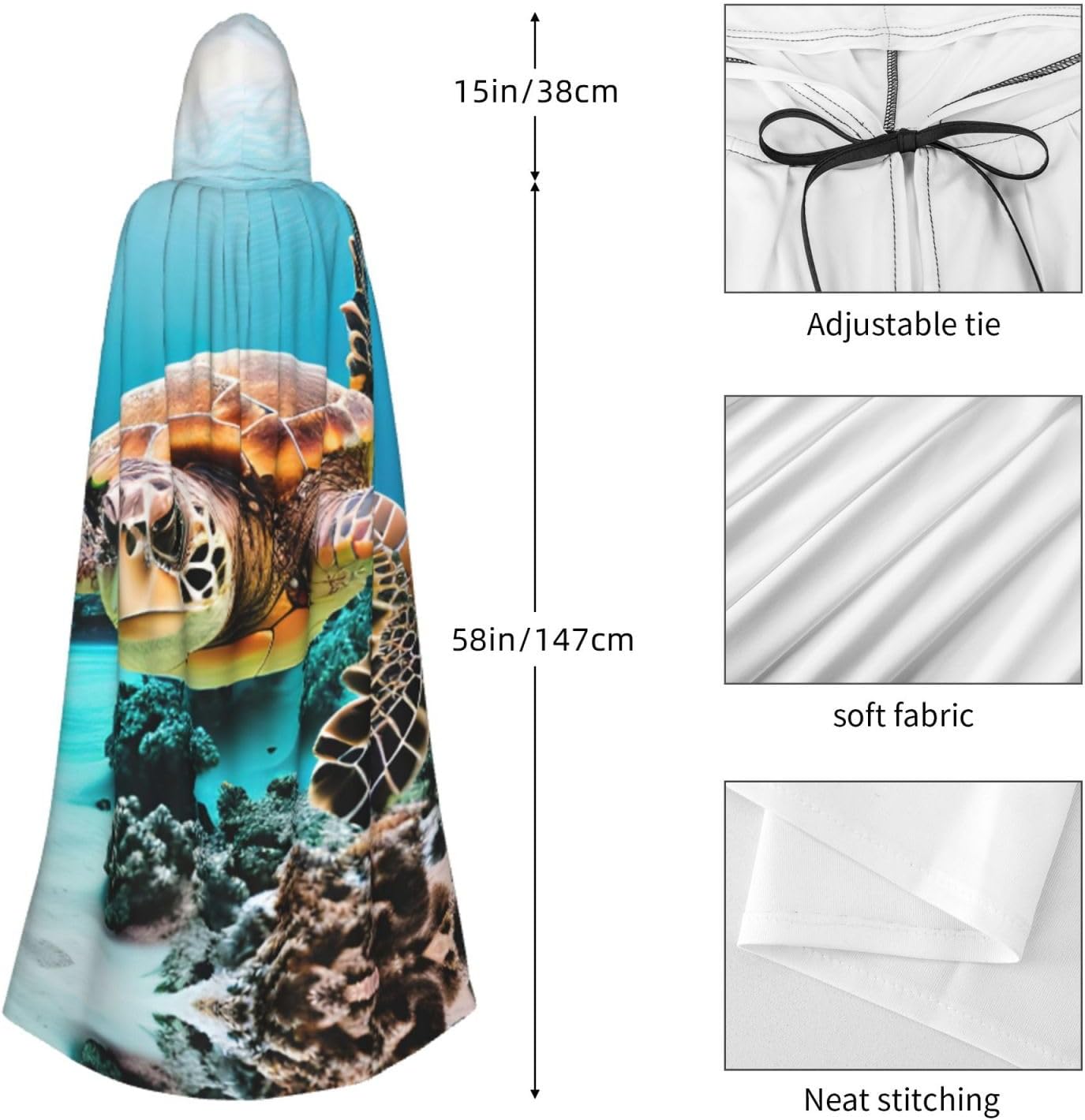 Entra nel mondo della fantasia e dell'avventura con il nostro elegante mantello da donna. Realizzato in fibra di poliestere di alta qualità, questo mantello offre una vestibilità leggera e confortevole, permettendoti di abbracciare i tuoi personaggi preferiti o personaggi per feste in costume, Halloween, fumetti e molto altro ancora. Dotato di un cappuccio oversize e una chiusura con cravatta, questo mantello non solo aggiunge un elemento di mistero, ma completa anche una vasta gamma di scelte di outfit La costruzione garantisce una lunga durata. Uso duraturo senza alcun fastidio o prurito. Che tu stia partecipando a una festa a tema, una danza o un evento cosplay, questo versatile mantello è sicuro di fare una dichiarazione. È perfetto per feste di Halloween, convegni di fumetti, spettacoli teatrali, feste in maschera e altre occasioni festive. Lascia che la tua creatività risplenda e immergiti nel mondo della fantasia. Pulire questo mantello è un gioco da ragazzi, Lavabile in lavatrice. Facile da pulire. Il suo design ti consente di godertelo per gli anni a venire, rendendolo una scelta affidabile ed elegante per tutte le tue esigenze di abbigliamento. Sperimenta l'incanto e il fascino del nostro elegante mantello da donna e diventa al centro dell'attenzione in ogni evento. Migliora il tuo gioco di costumi e crea ricordi indimenticabili con questo accessorio indispensabile. Abbraccia la tua immaginazione e intraprendi un viaggio straordinario oggi!