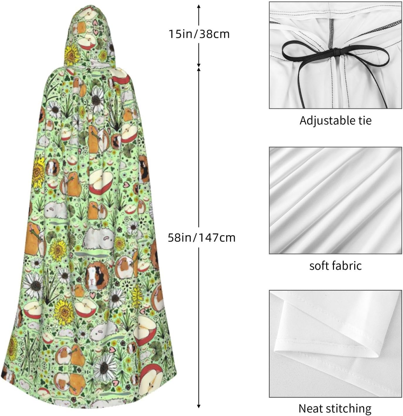 Entra nel mondo della fantasia e dell'avventura con il nostro elegante mantello da donna. Realizzato in fibra di poliestere di alta qualità, questo mantello offre una vestibilità leggera e confortevole, permettendoti di abbracciare i tuoi personaggi preferiti o personaggi per feste in costume, Halloween, fumetti e molto altro ancora. Dotato di un cappuccio oversize e una chiusura con cravatta, questo mantello non solo aggiunge un elemento di mistero, ma completa anche una vasta gamma di scelte di outfit La costruzione garantisce una lunga durata. Uso duraturo senza alcun fastidio o prurito. Che tu stia partecipando a una festa a tema, una danza o un evento cosplay, questo versatile mantello è sicuro di fare una dichiarazione. È perfetto per feste di Halloween, convegni di fumetti, spettacoli teatrali, feste in maschera e altre occasioni festive. Lascia che la tua creatività risplenda e immergiti nel mondo della fantasia. Pulire questo mantello è un gioco da ragazzi, Lavabile in lavatrice. Facile da pulire. Il suo design ti consente di godertelo per gli anni a venire, rendendolo una scelta affidabile ed elegante per tutte le tue esigenze di abbigliamento. Sperimenta l'incanto e il fascino del nostro elegante mantello da donna e diventa al centro dell'attenzione in ogni evento. Migliora il tuo gioco di costumi e crea ricordi indimenticabili con questo accessorio indispensabile. Abbraccia la tua immaginazione e intraprendi un viaggio straordinario oggi!