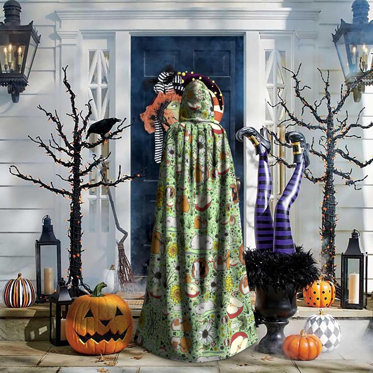 Mantello da strega medievale per Halloween, mantello da strega, mantello nero per porcellini d'India con cappuccio