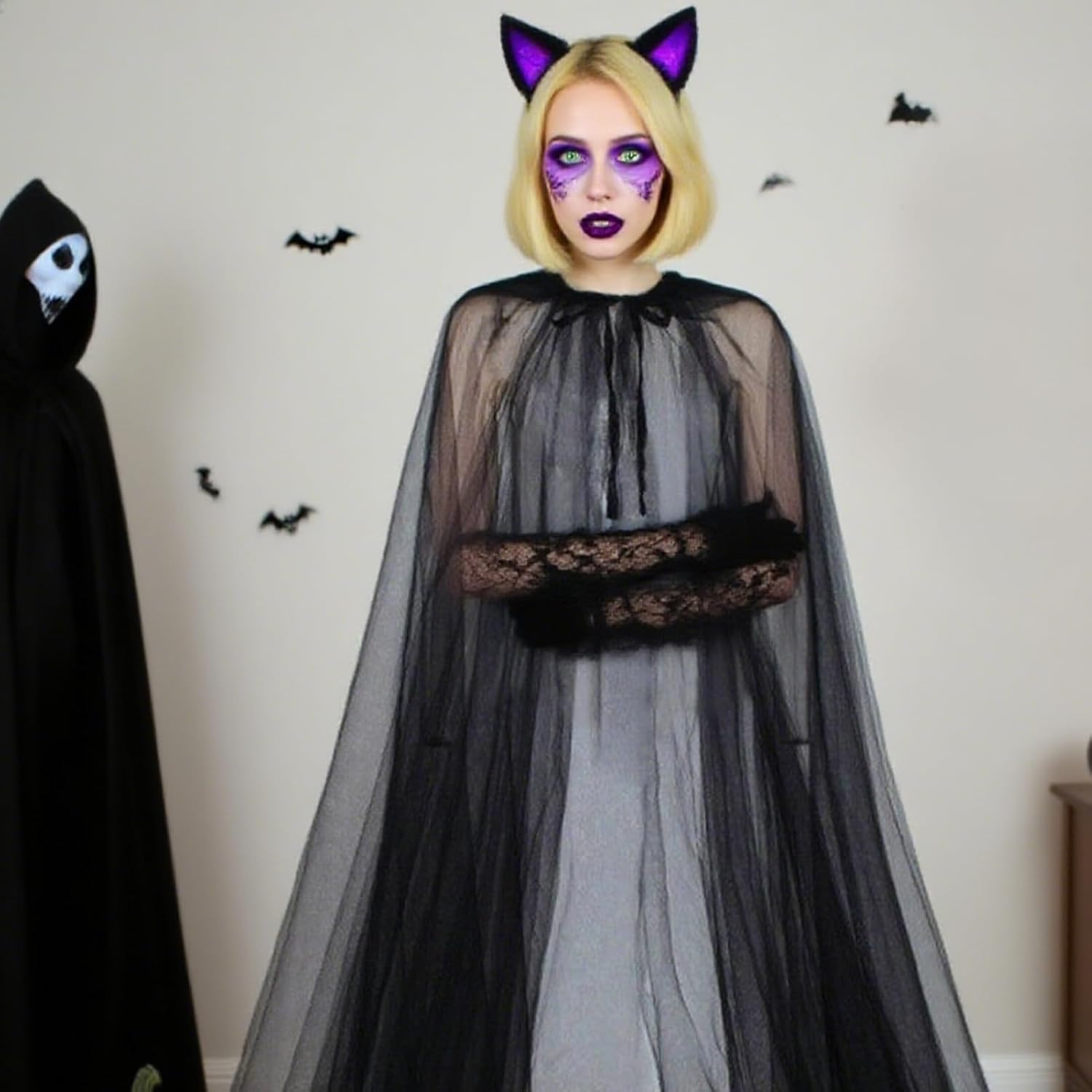 Regalo originale: espresso amore e cura con questa mantella con cappuccio come regalo significativo per la famiglia, partner o amici, ideale per Halloween, festività, Natale e feste di anno, arricchisce ogni occasione festiva con gioia Elegantemente pratico: realizzato per donne, ragazze e ragazzi con taglio ampio ed eccellente elasticità: questo mantello con cappuccio di Halloween garantisce adattabilità alle forme del corpo, comfort e moda come scelta perfetta per i costumi Regolazione aspetto a strati: tulle leggero consente eleganza o layering creativo lungo il pavimento. Ideale per esibizioni personalizzate di Halloween con aspetto modificabile e design accattivante. Trasformazione versatile: crea diversi ruoli attraverso combinazioni di trucco, ideale per temi cosplay scuri e spettacoli indimenticabili alle feste di Halloween Design horror in bianco e nero: lo stile accattivante del mantello in bianco e nero, abbinato al grande cappuccio, garantisce un aspetto spettrale. Attira l'attenzione e rafforza l'aura spaventosa perfetta per feste ed eventi di Halloween.